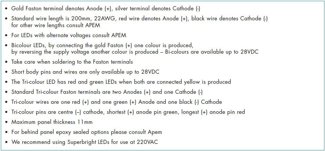 Múltiples modelos de indicadores LED de montaje en panel empotrado de APEM Francia en stock