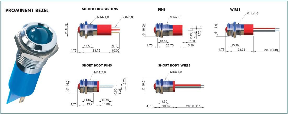 ♦ Los bloques de terminales están disponibles en dos tipos: soldadura y cable conductor, 12 mm (2,8x0,8 mm) o cable conductor, longitud estándar del cable conductor 200 mm;