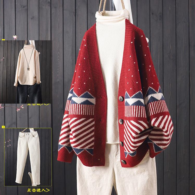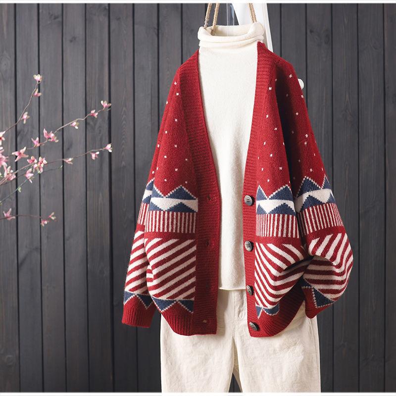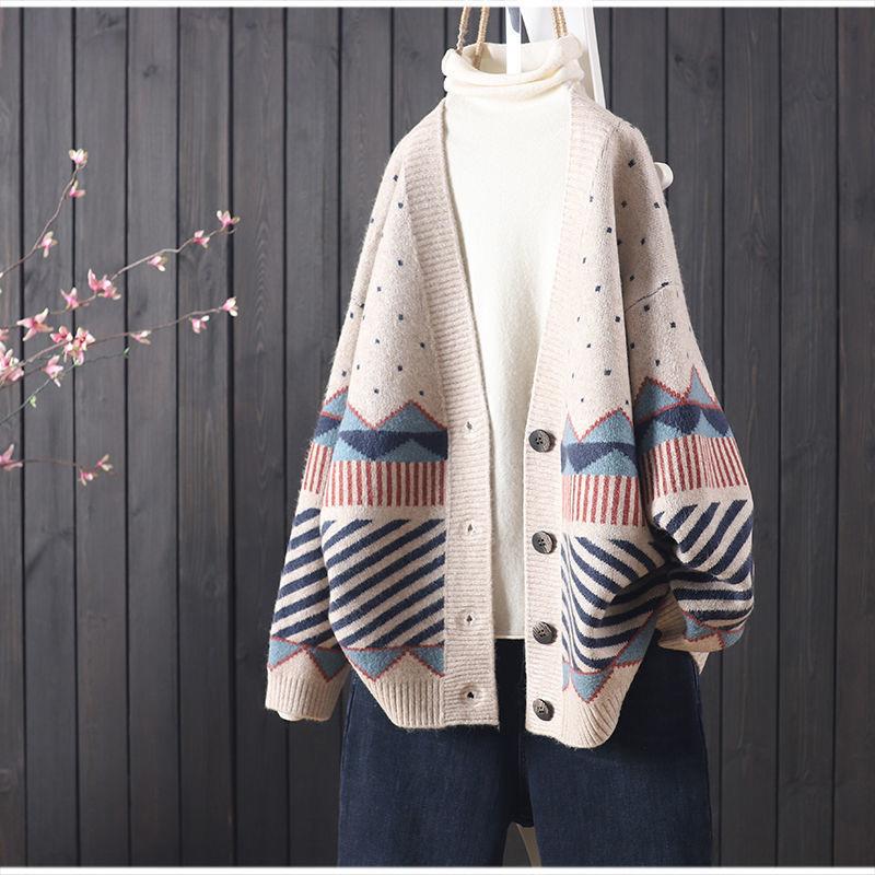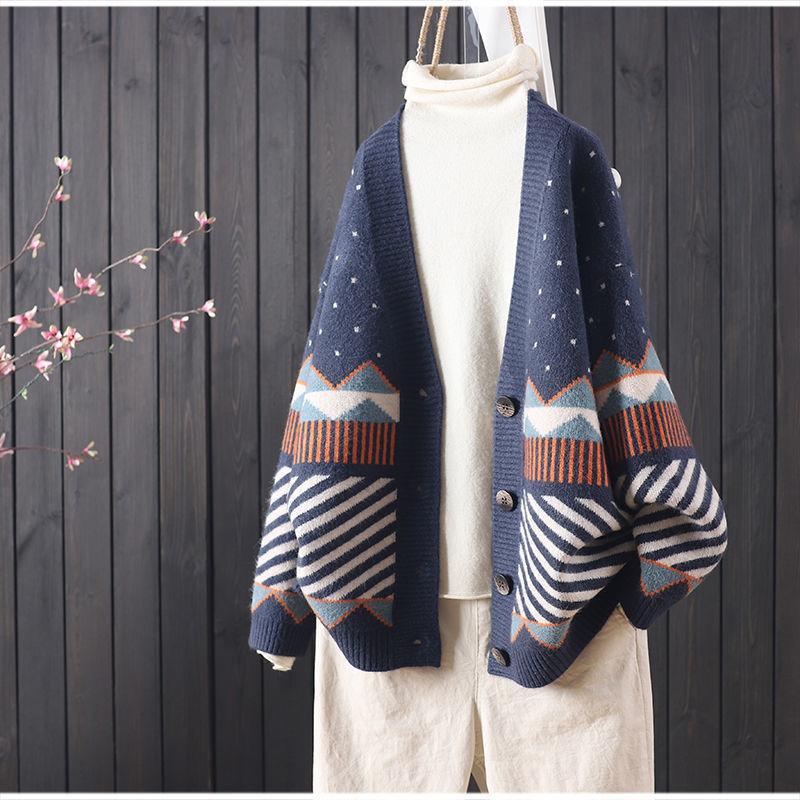 Las exportaciones de comercio exterior no se desvanecen Estilo nacional cárdigan de punto suelto suéter jacquard combinable estilo retro perezoso abrigo mujeres