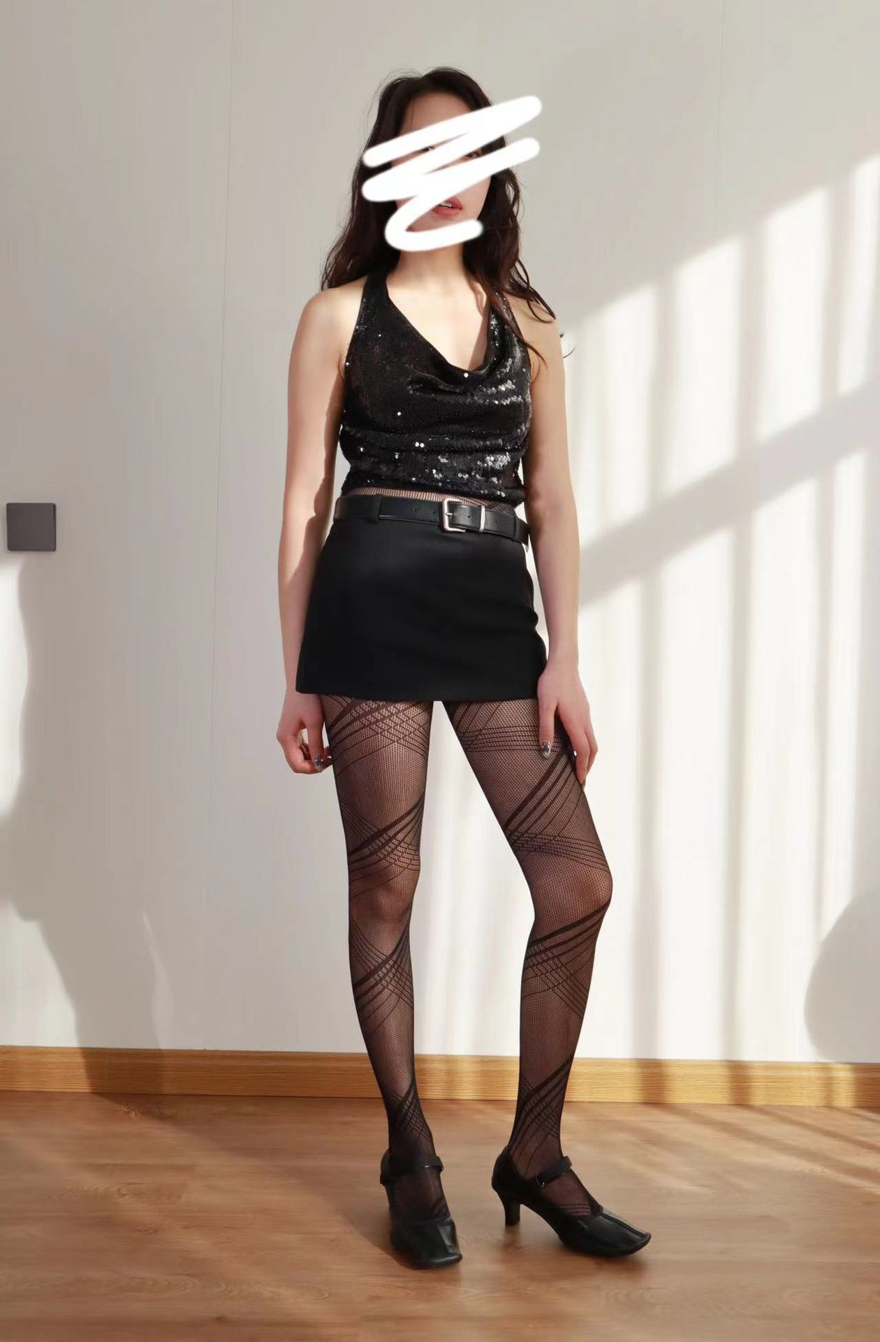 Medias de Red Finas de Primavera/Verano Base de Seda Negra Pura Sexy Medias Versátiles Malla Grande de Diamante Patrón Oscuro Mallas Versátiles