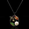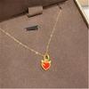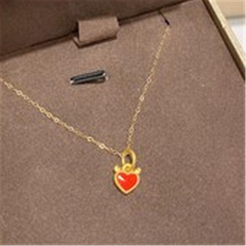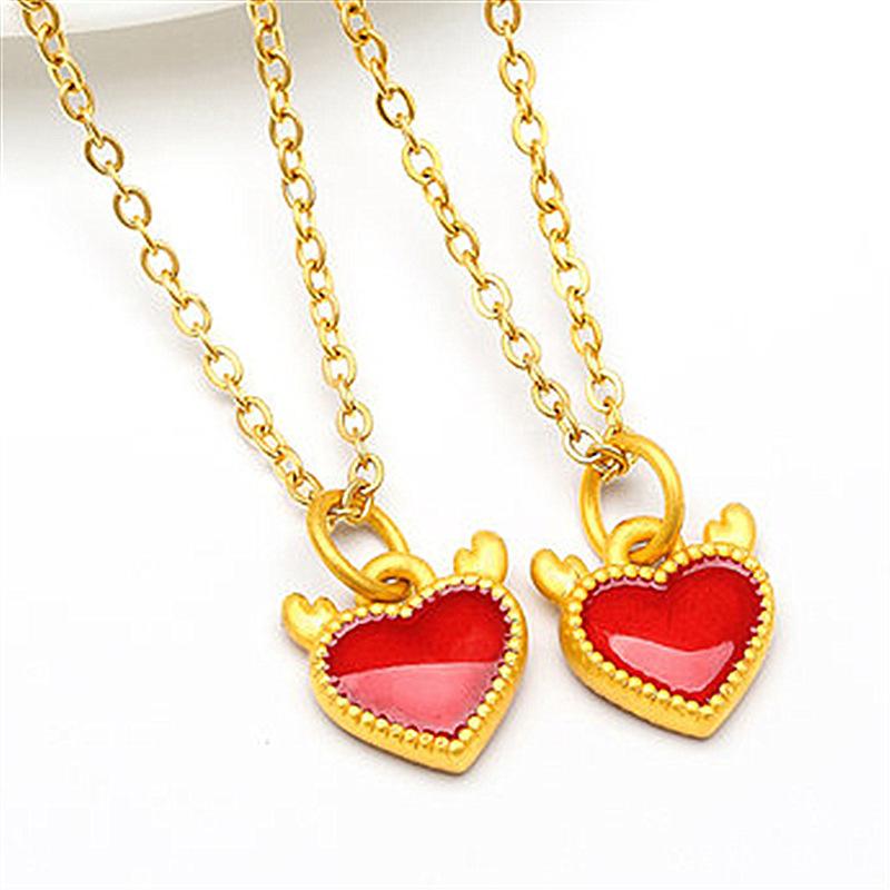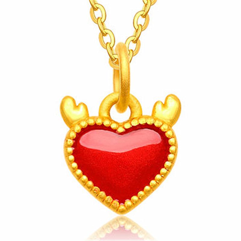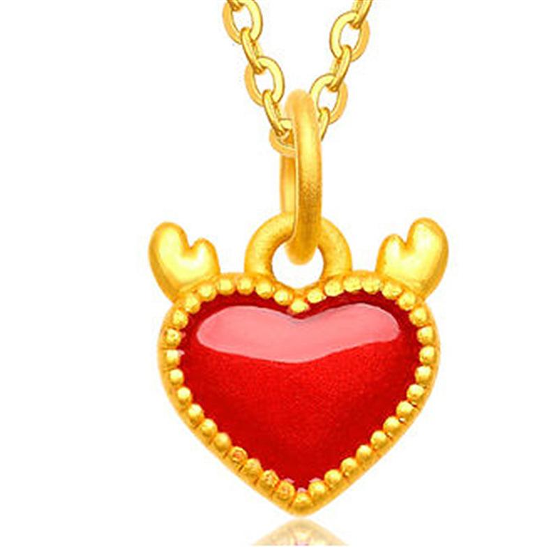 Collar con colgante de esmalte encantador de amor con pintura de asta navideña, amor, fideos de arena chapado en oro, pegamento rojo