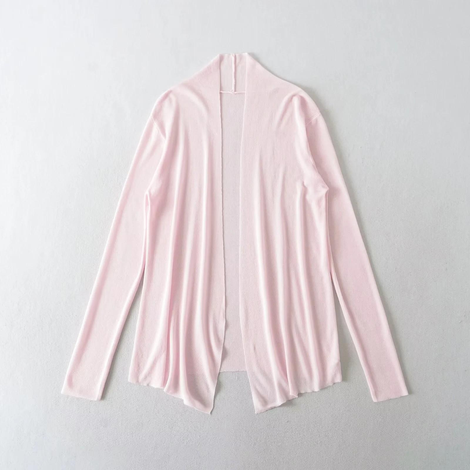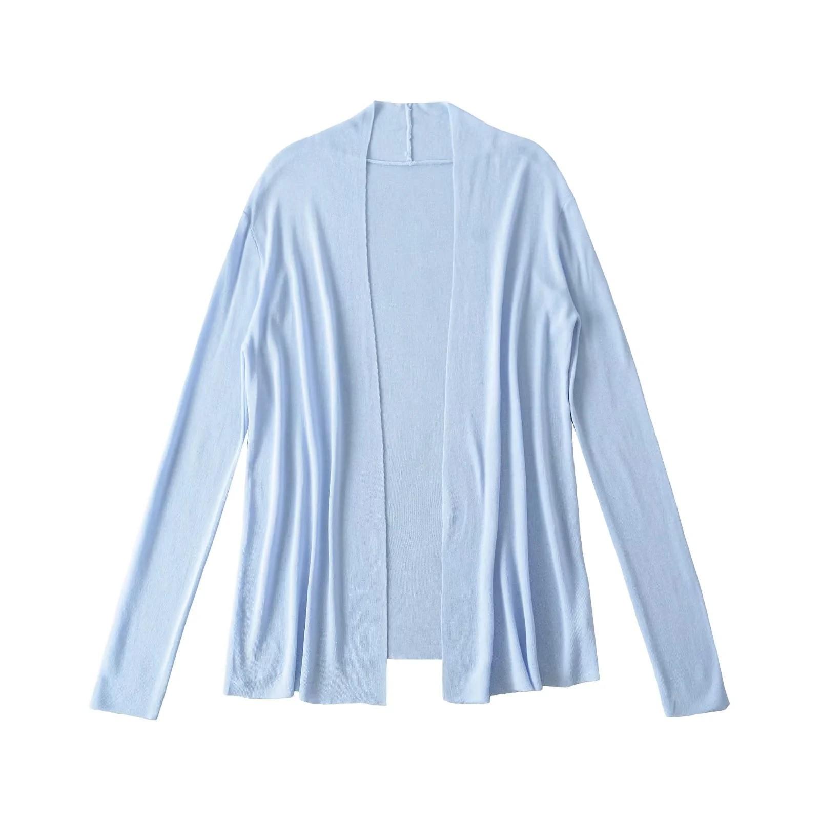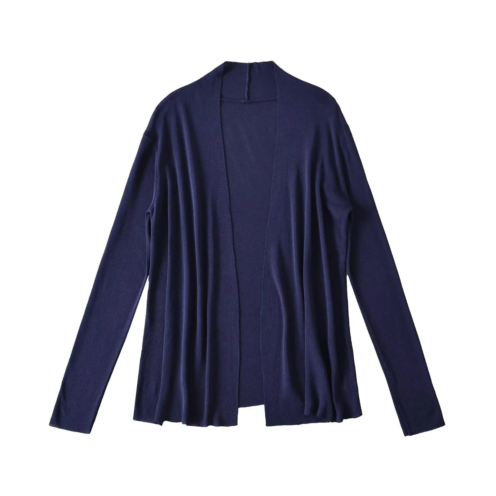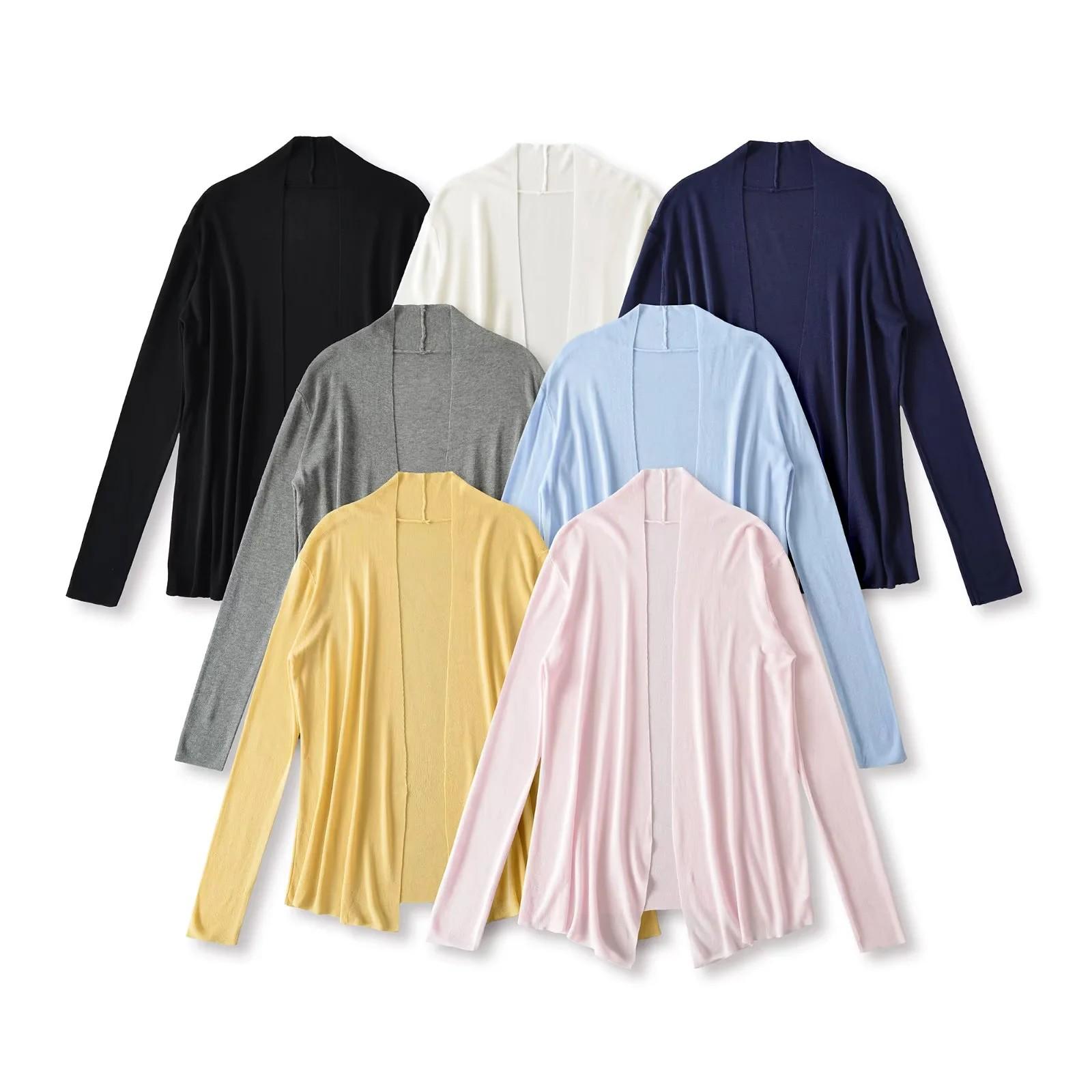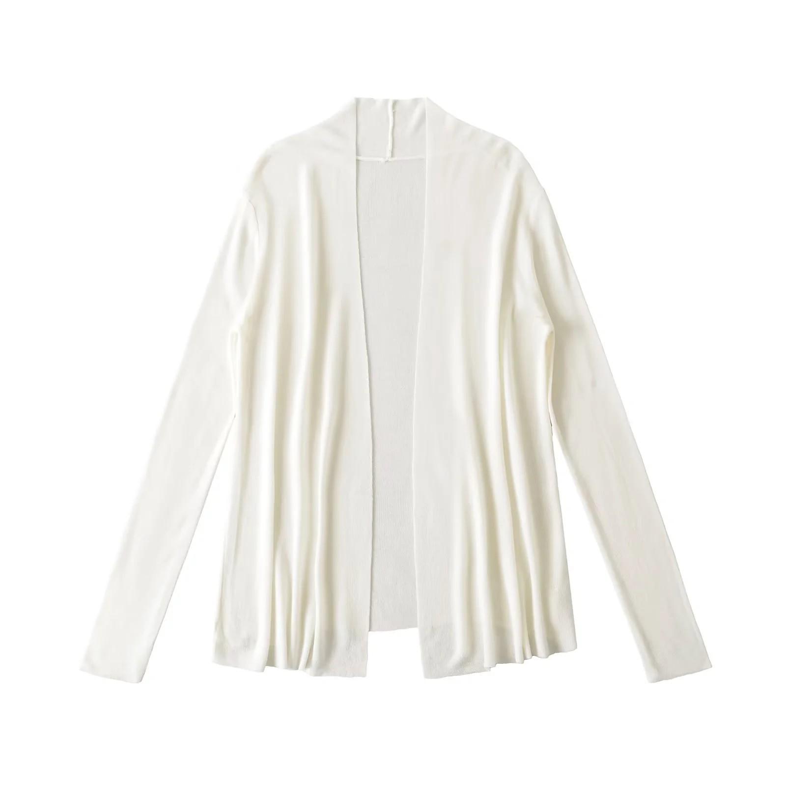 Otoño Nuevo Estilo Europeo y Americano Holgado Versátil Casual Cárdigan para Mujer Protección Solar Irregular Manga Larga Chal Abrigo