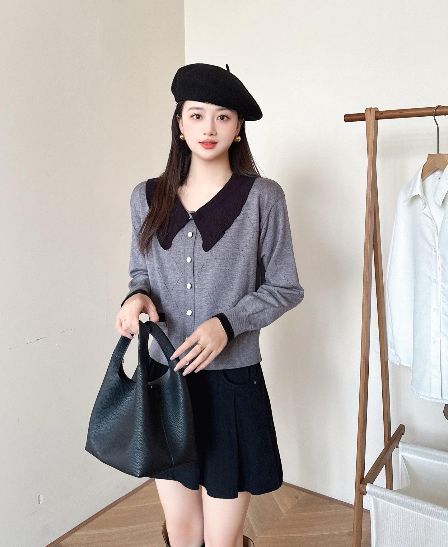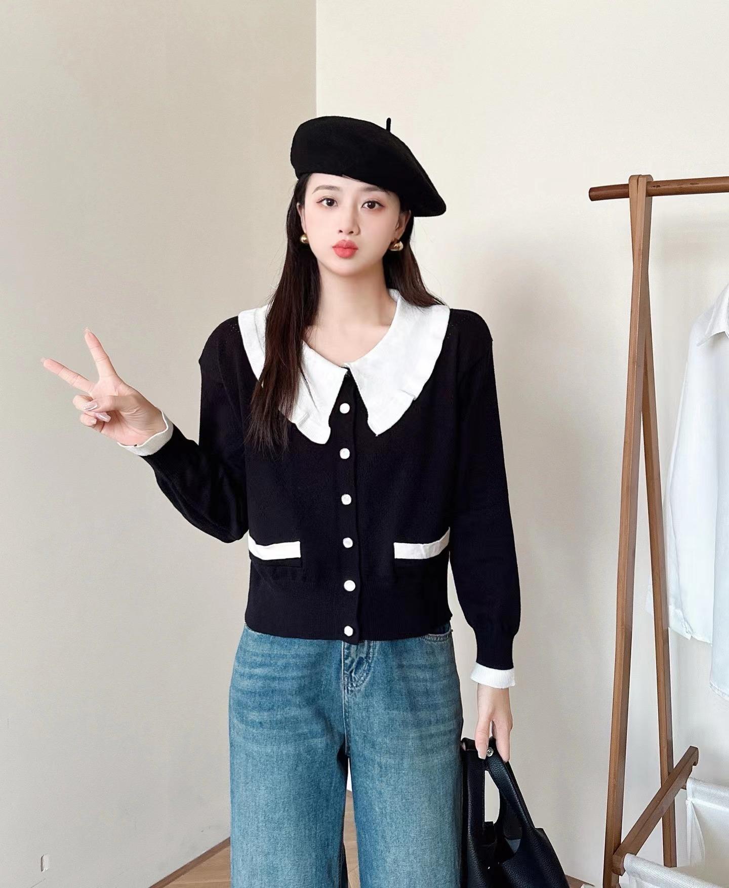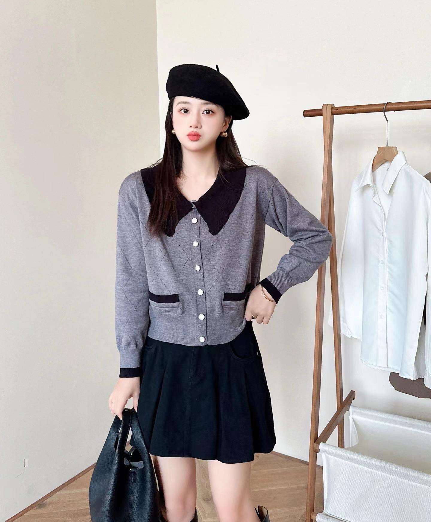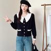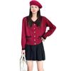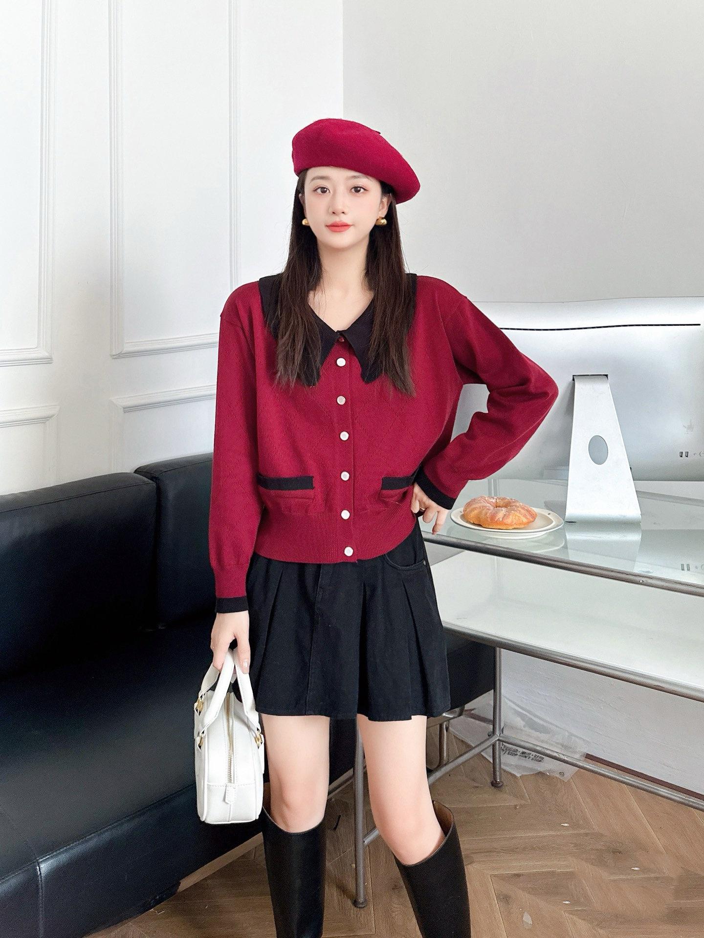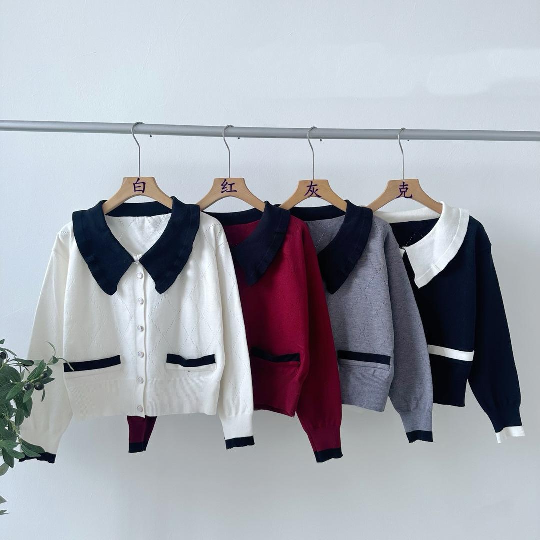 Ropa de mujer 2024 primavera, otoño e invierno Nuevo cárdigan de punto de manga larga raglán a contraste abrigo casual holgado suéter corto
