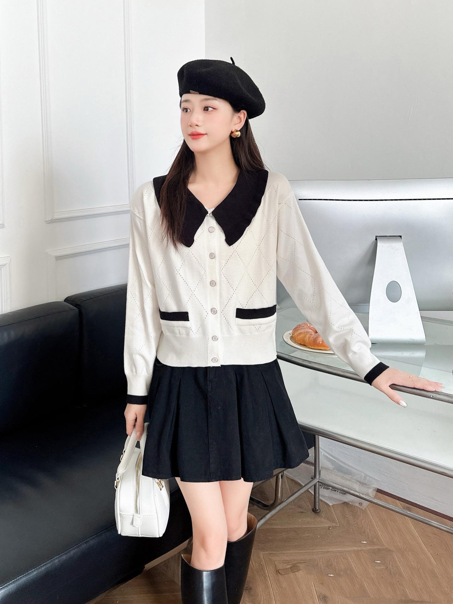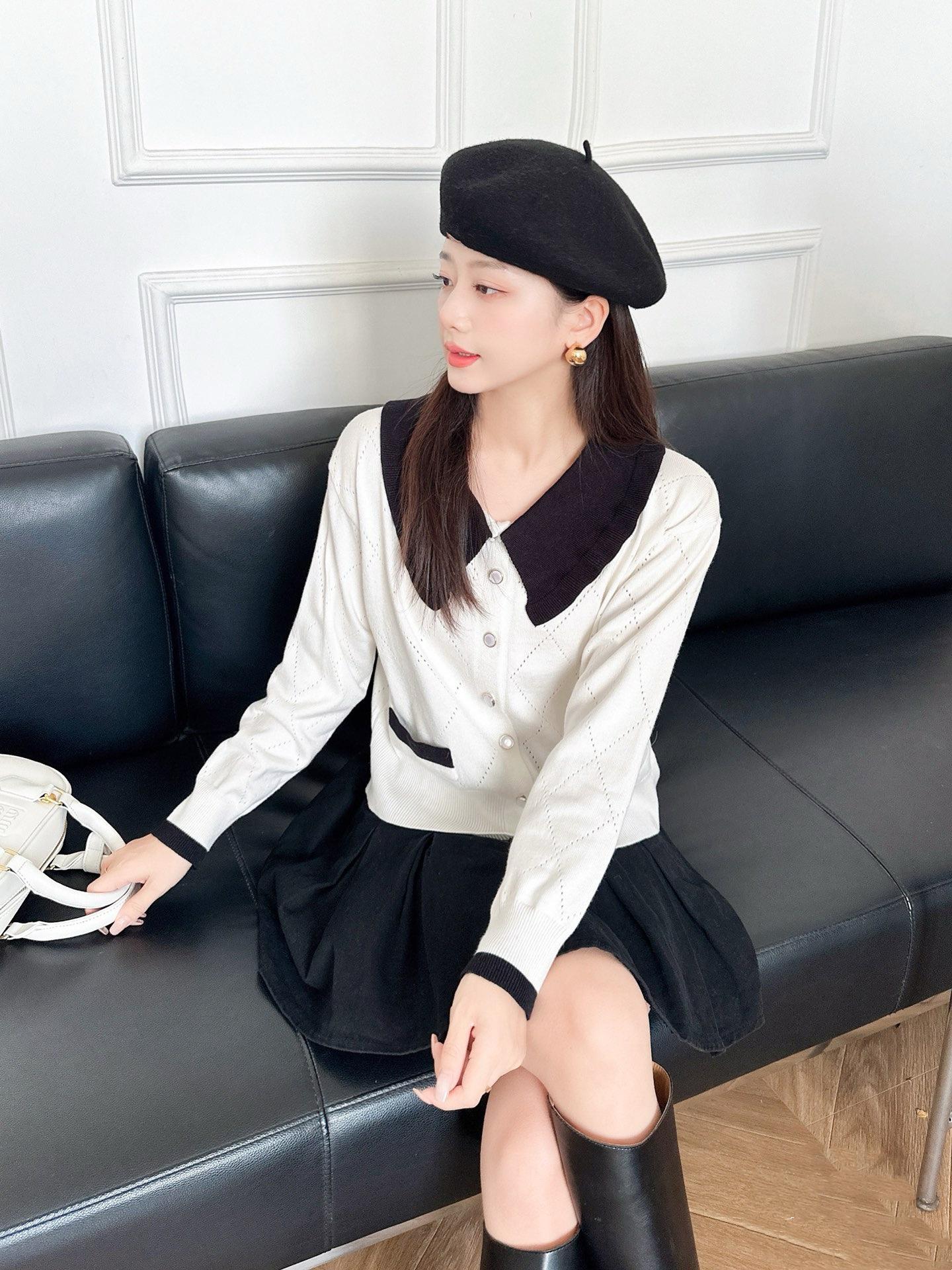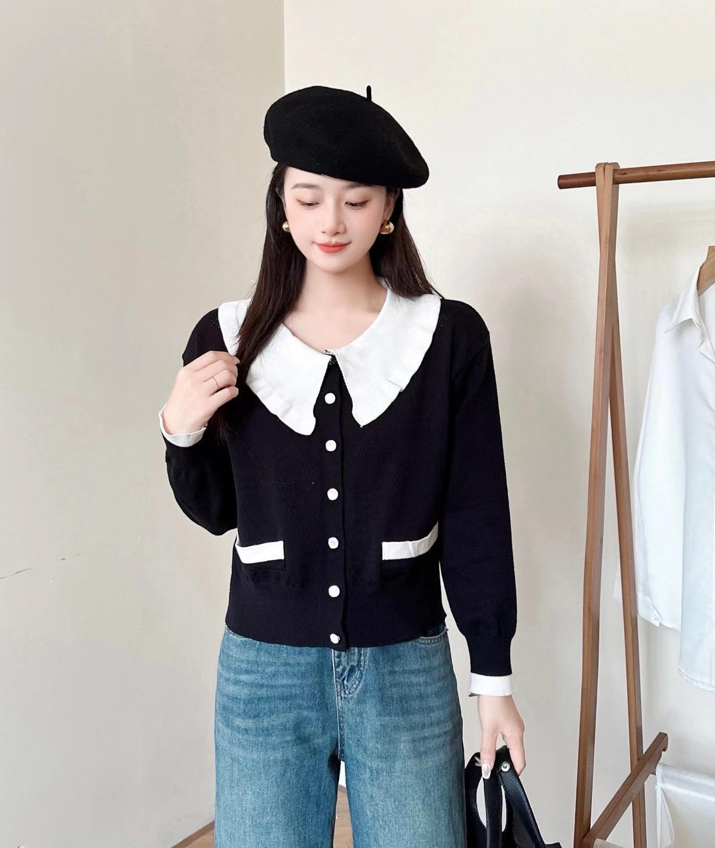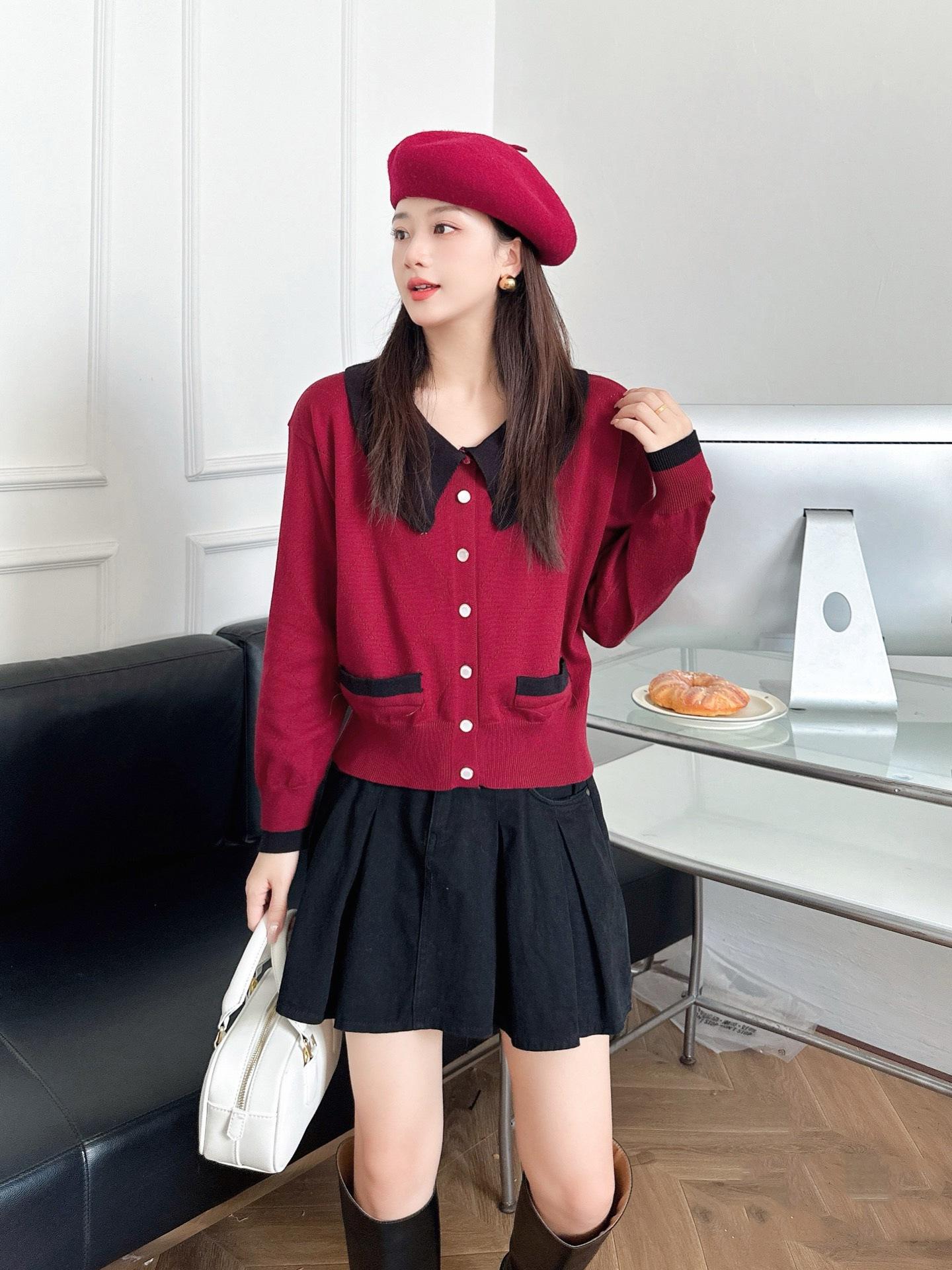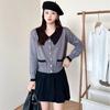 Ropa de mujer 2024 primavera, otoño e invierno Nuevo cárdigan de punto de manga larga raglán a contraste abrigo casual holgado suéter corto