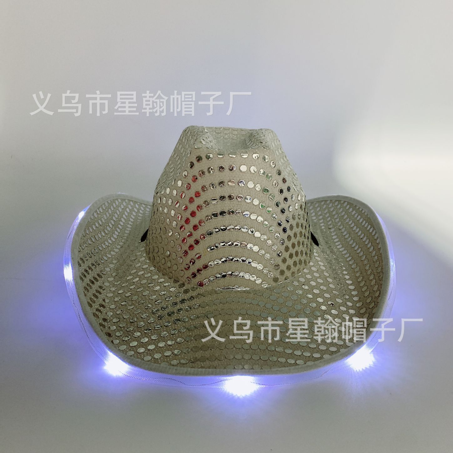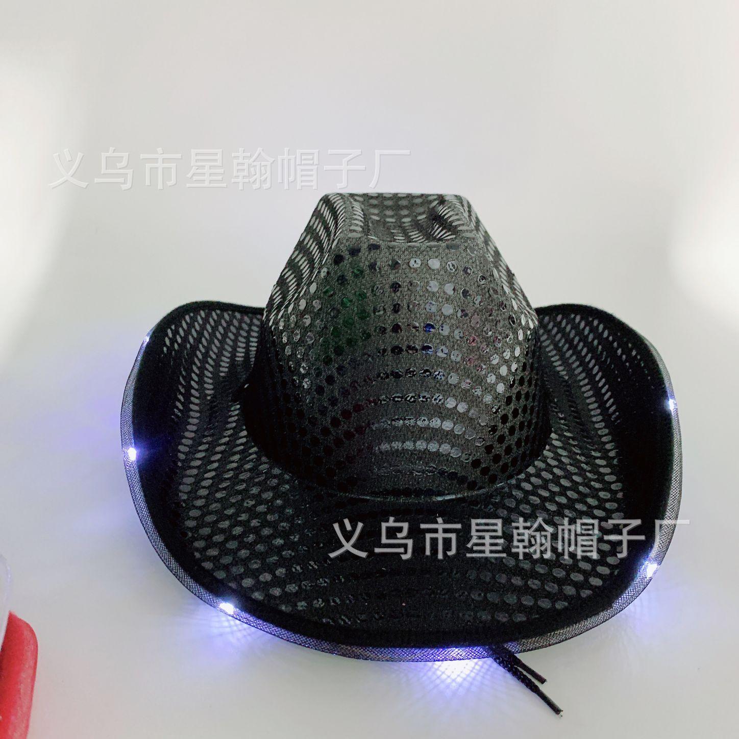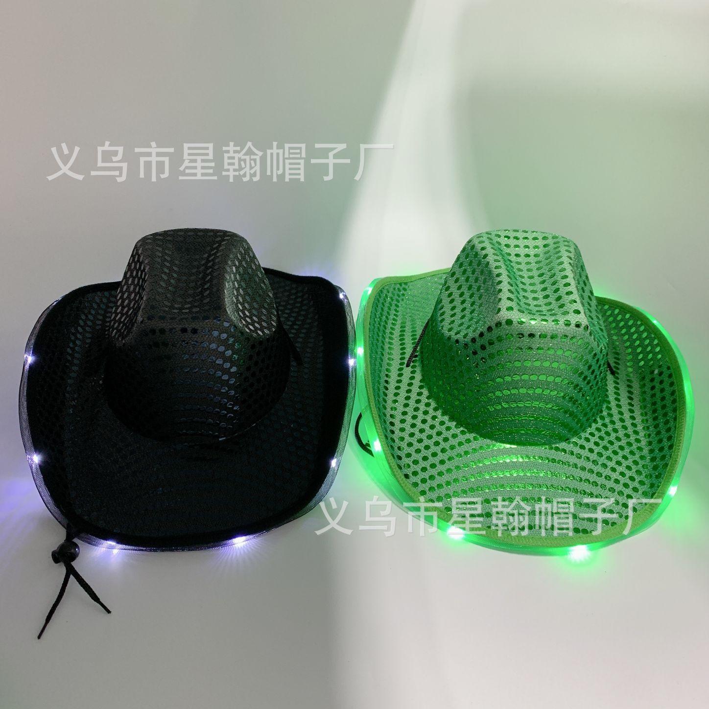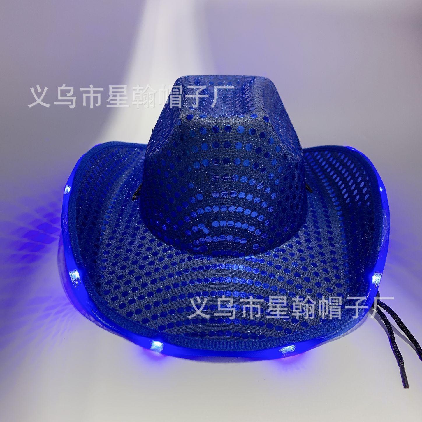 Fabricante Venta al por Mayor Carnaval LED Sombrero de Luz Occidental Iluminado Sombrero de Mezclilla de Color Comercio Exterior Sombrero de Mezclilla con Lentejuelas con Luces