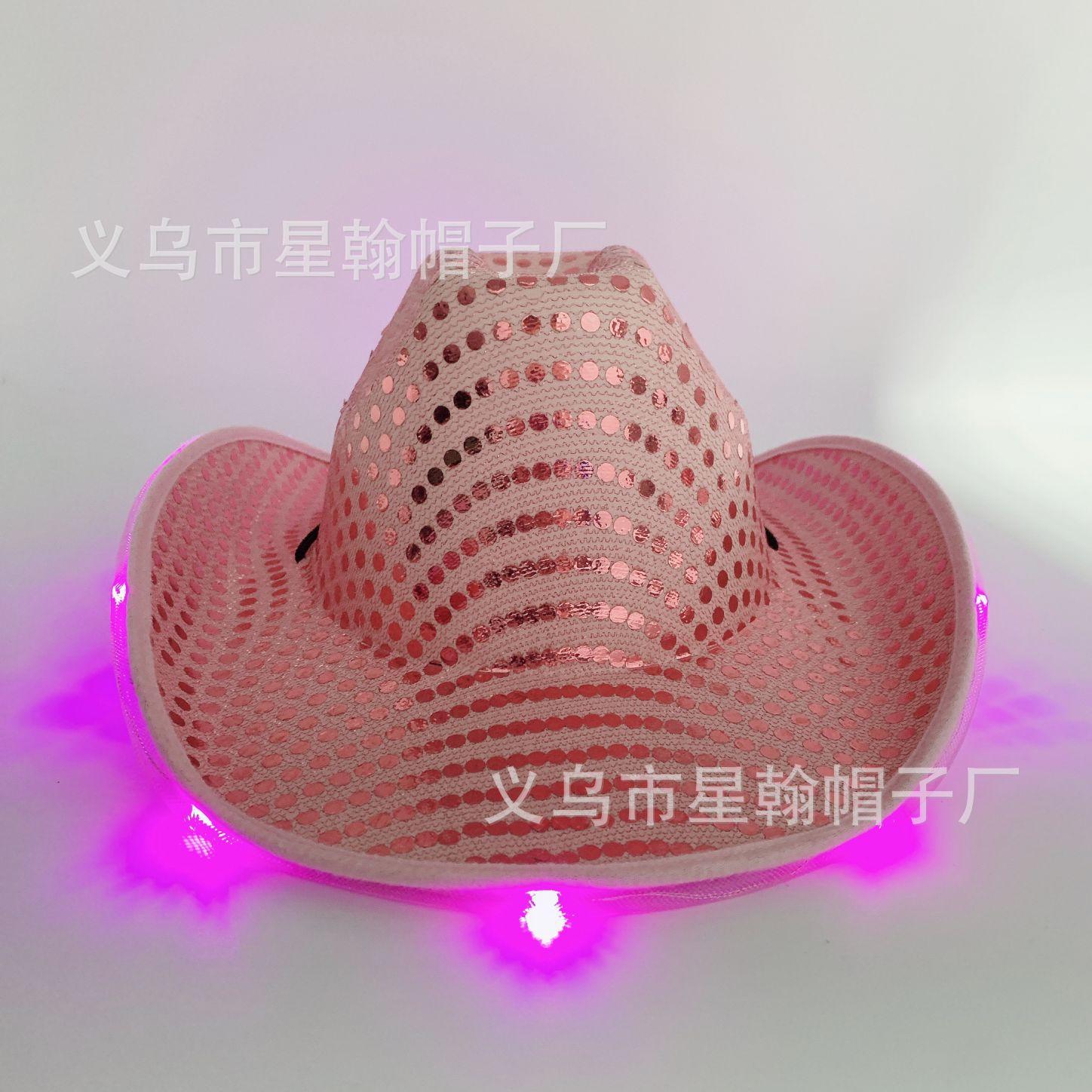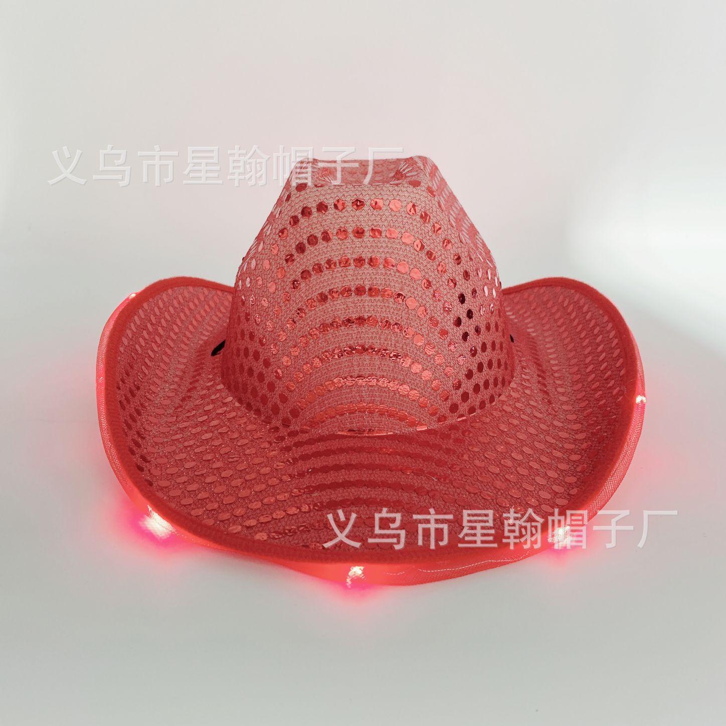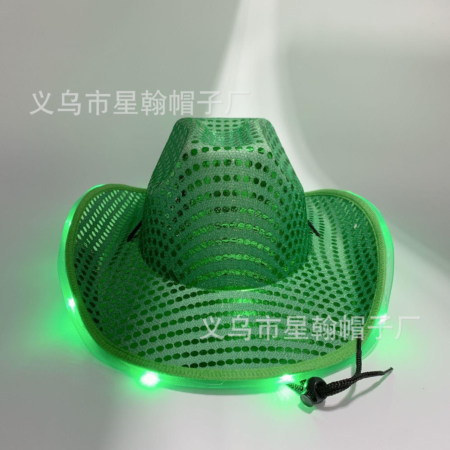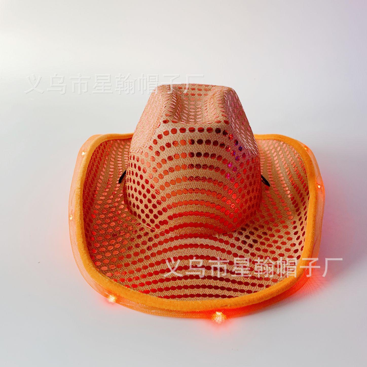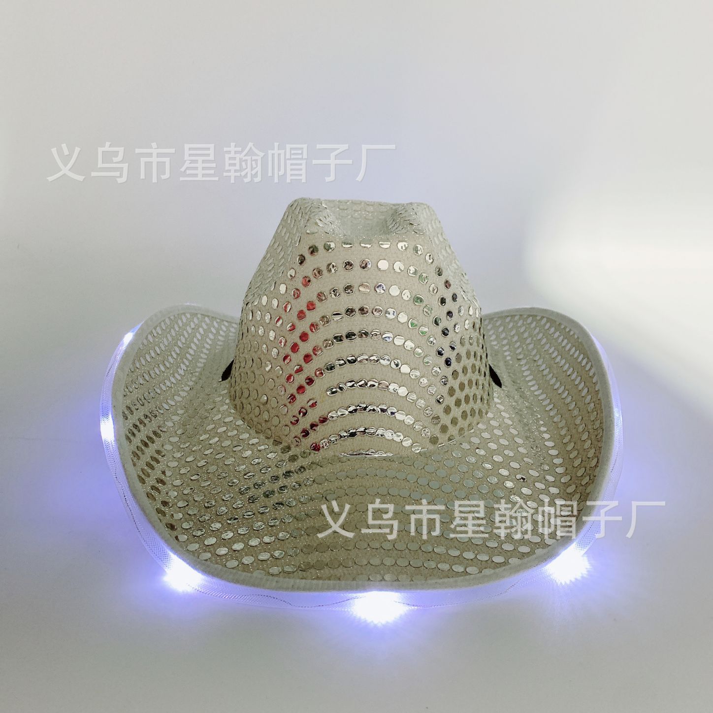 Fabricante Venta al por Mayor Carnaval LED Sombrero de Luz Occidental Iluminado Sombrero de Mezclilla de Color Comercio Exterior Sombrero de Mezclilla con Lentejuelas con Luces