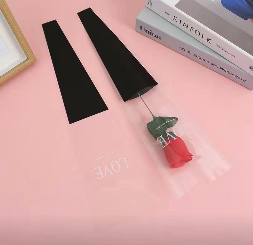 Bolsa de regalo de flores personalizada del fabricante, bolso con ventana transparente, bolsa de regalo para el Día de San Valentín, bolsa de regalo de flores para el Día del Maestro