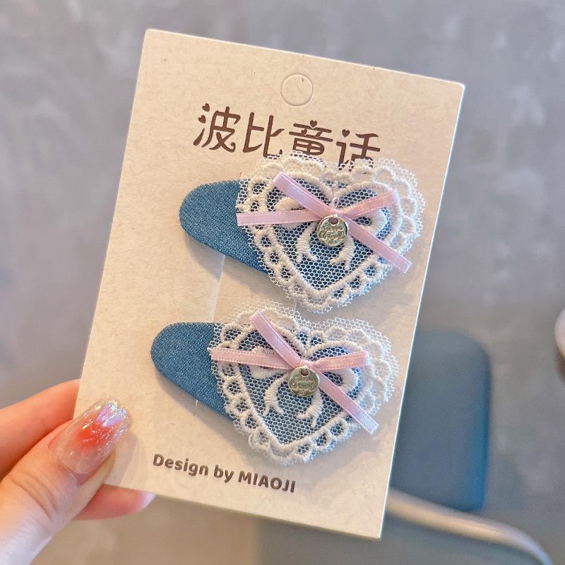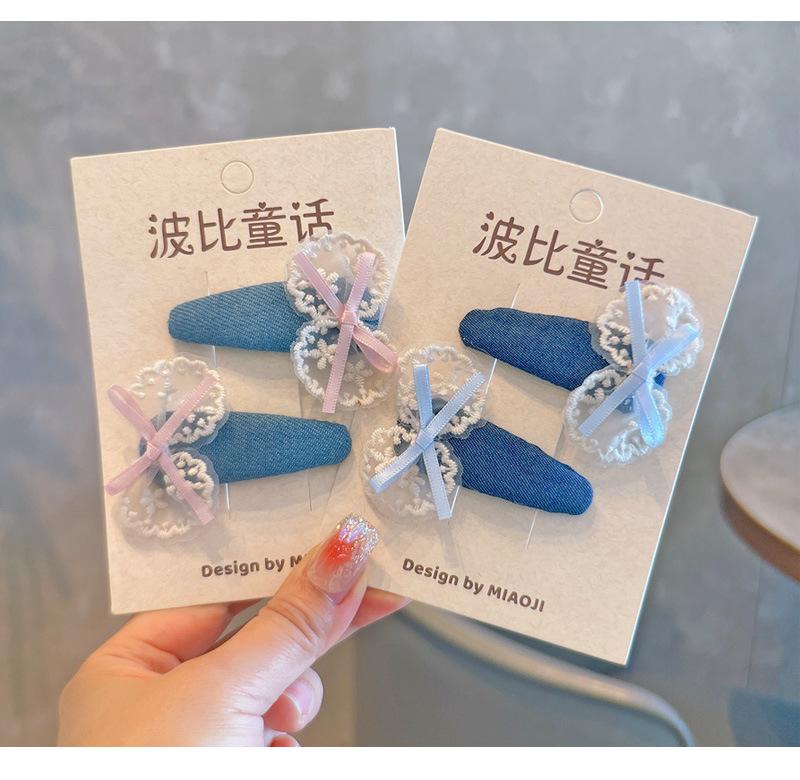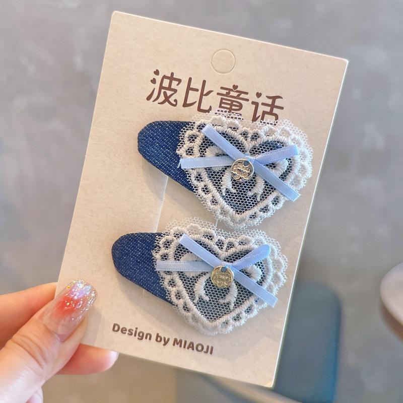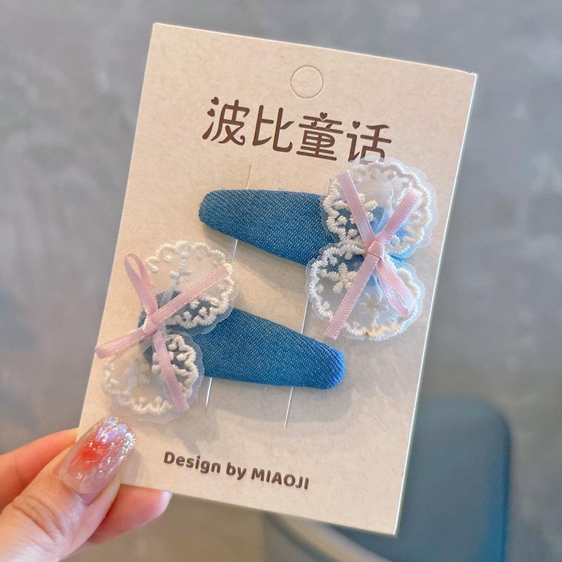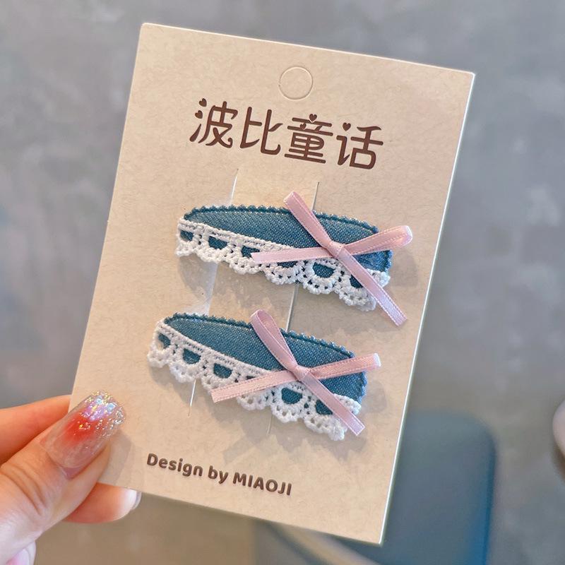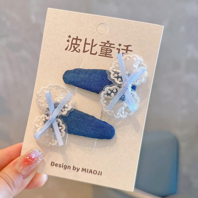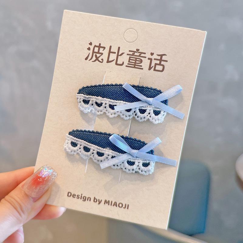 Nuevo Dulce Tela Mezclilla Encaje Lazo Pinza para el Cabello de Niña Linda Combinable Accesorios para el Cabello de Niños Pasador Clip