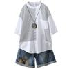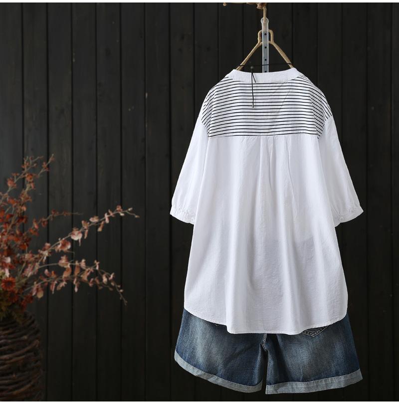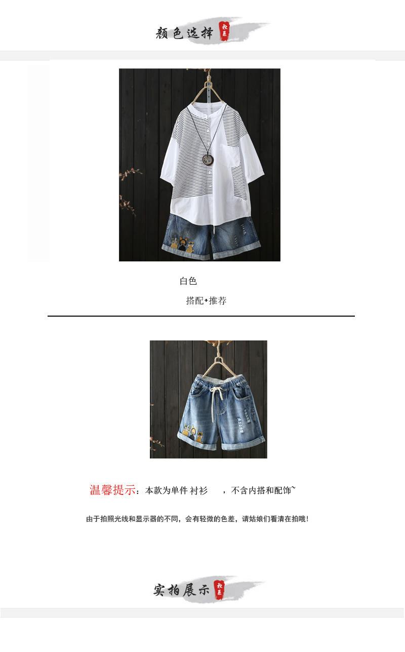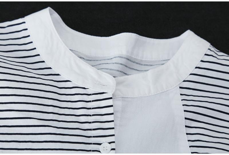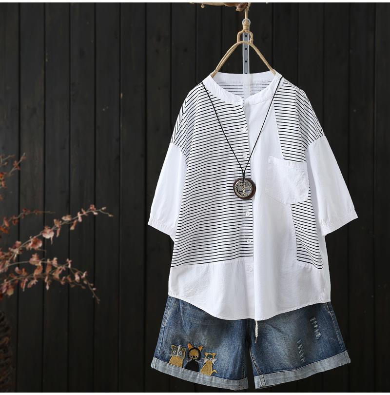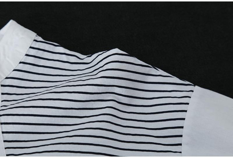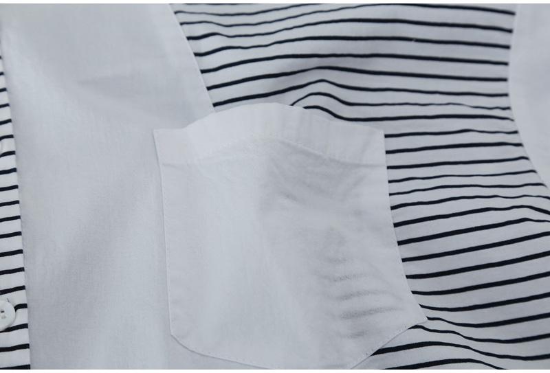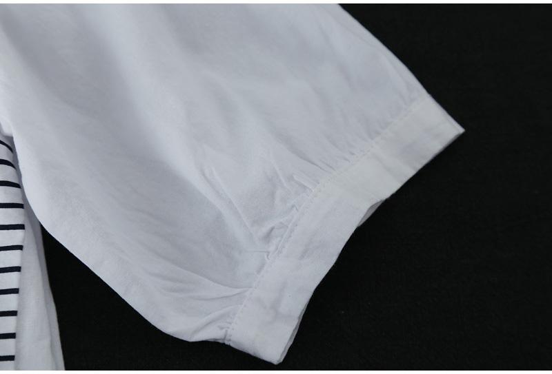 Verano 2025 Nueva Camisa de Manga Corta con Empalme a Rayas para Mujer, Camisa Casual Holgada Recta de Moda para Mujer