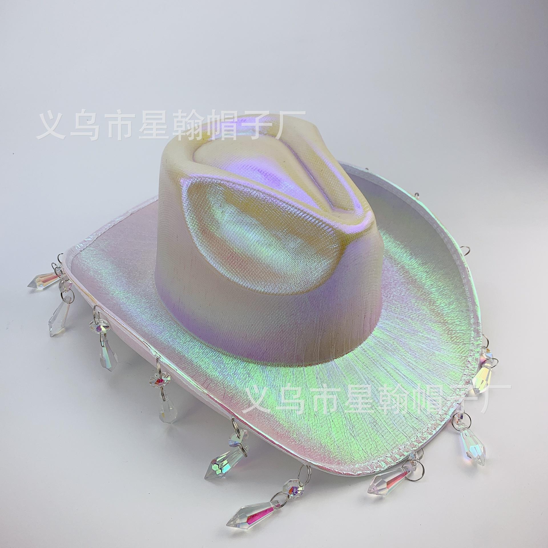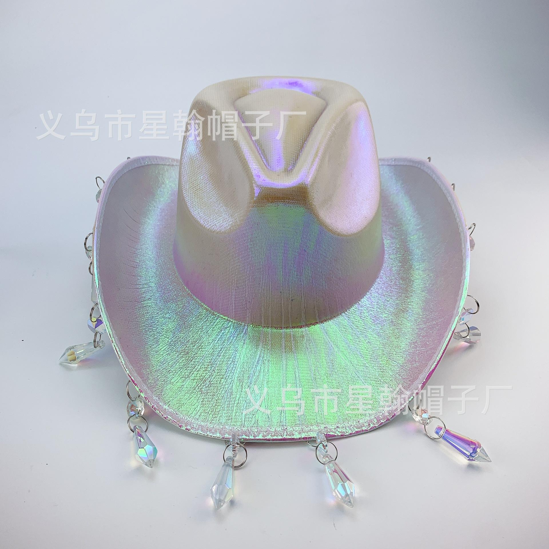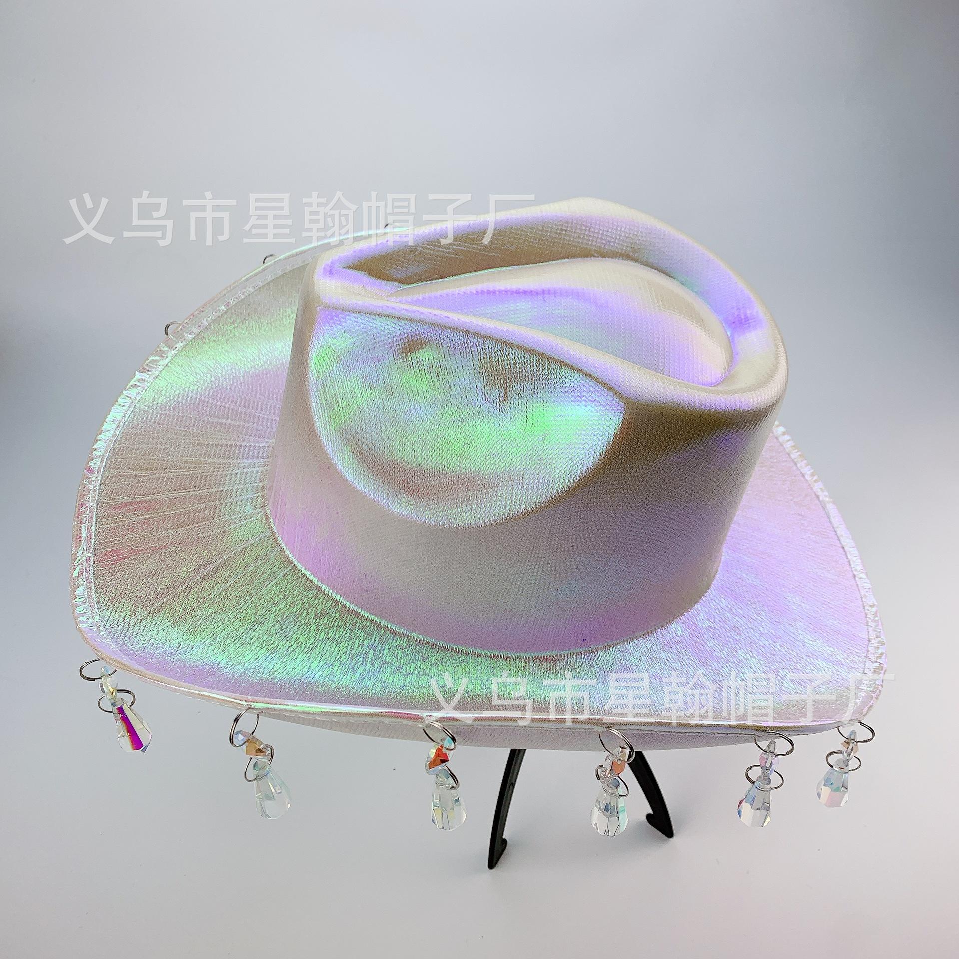 Sombrero de Vaquero Occidental Color Mágico Comercio Exterior Explosiones EVA Compuesto Halloween Carnaval Fiesta Cuentas de Cristal Borla Colorido