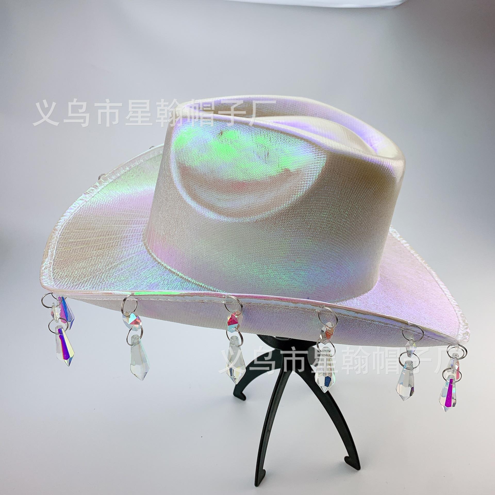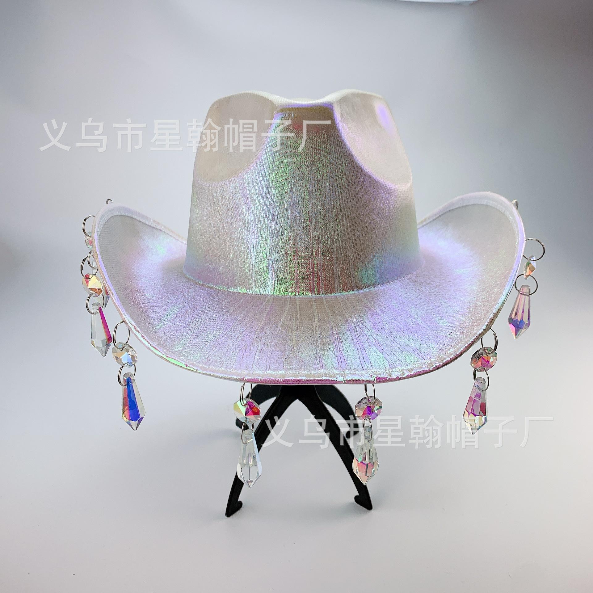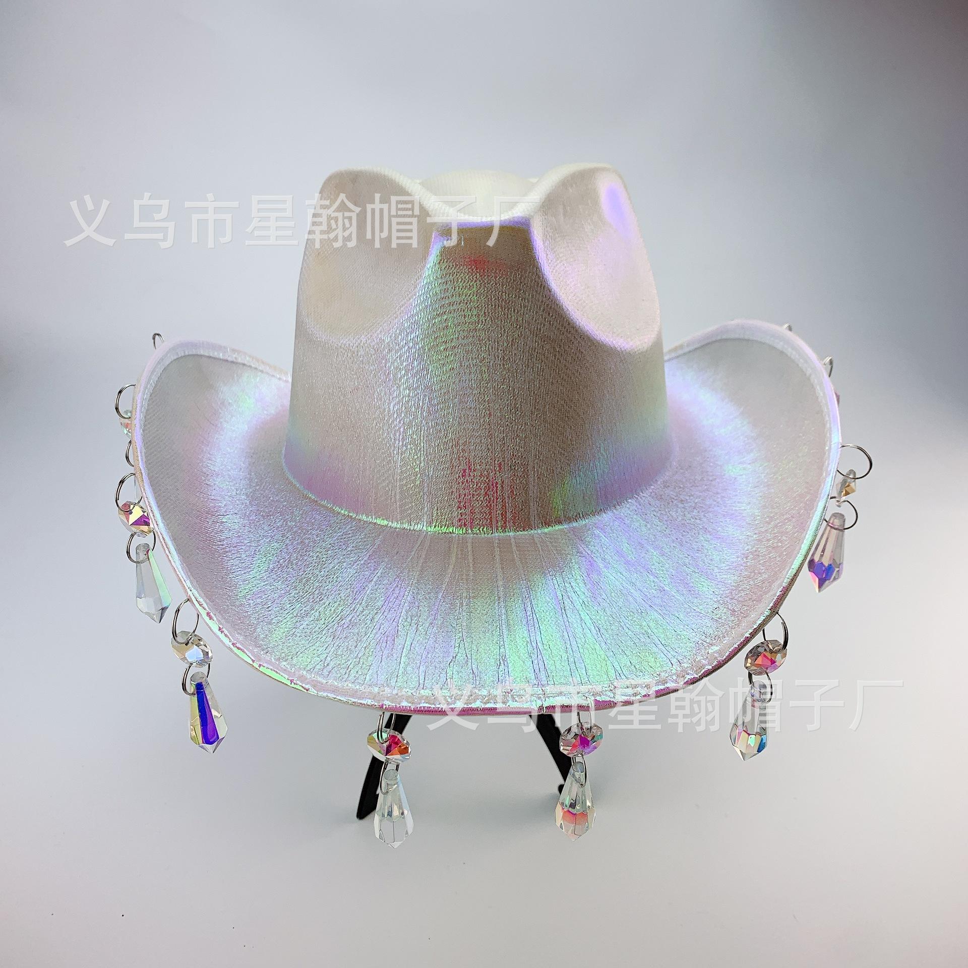 Sombrero de Vaquero Occidental Color Mágico Comercio Exterior Explosiones EVA Compuesto Halloween Carnaval Fiesta Cuentas de Cristal Borla Colorido