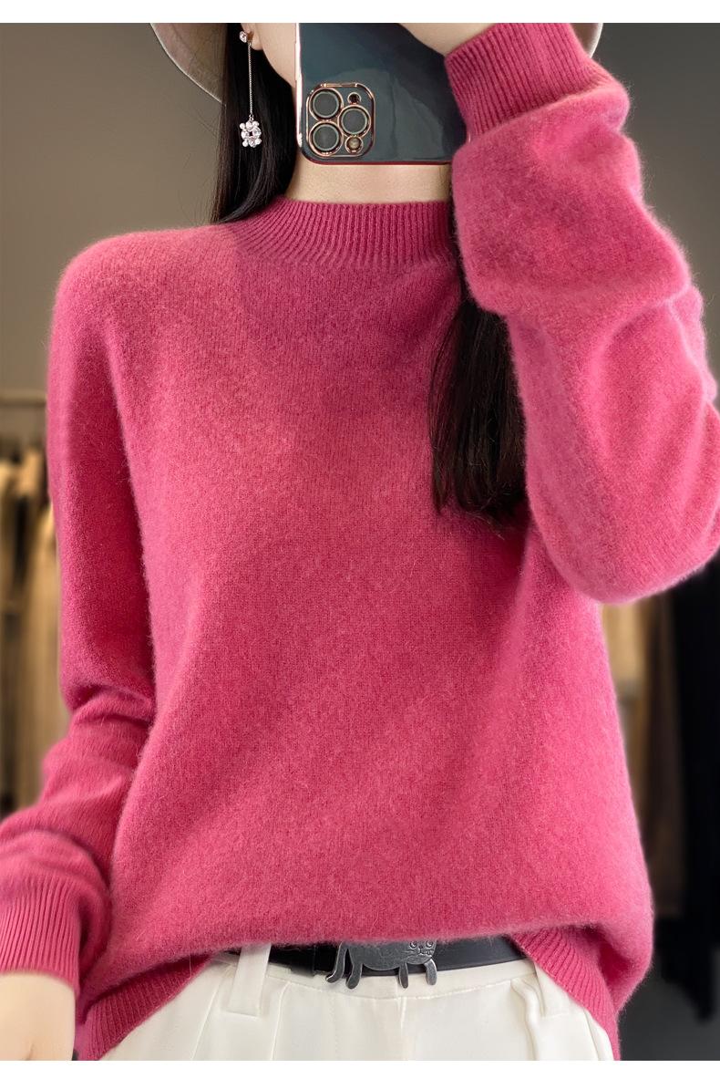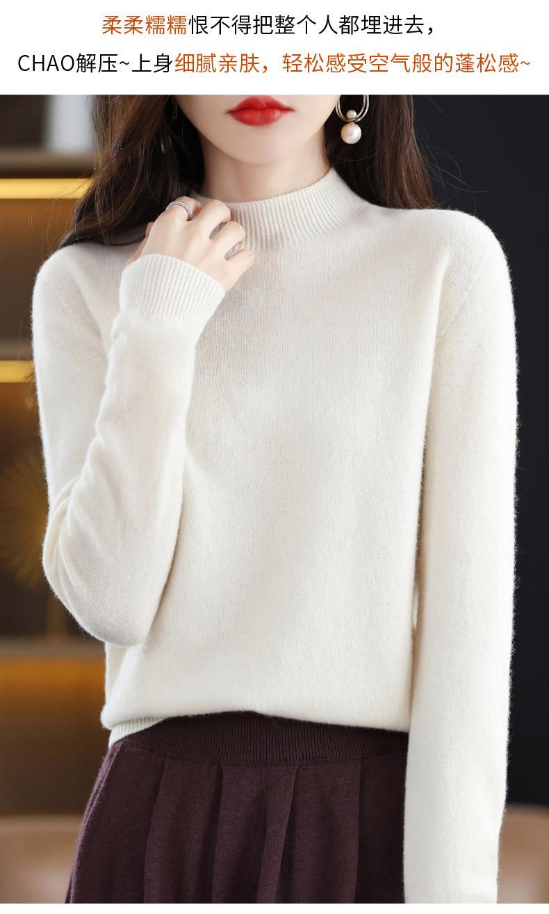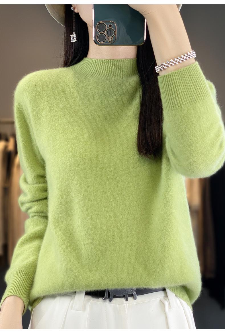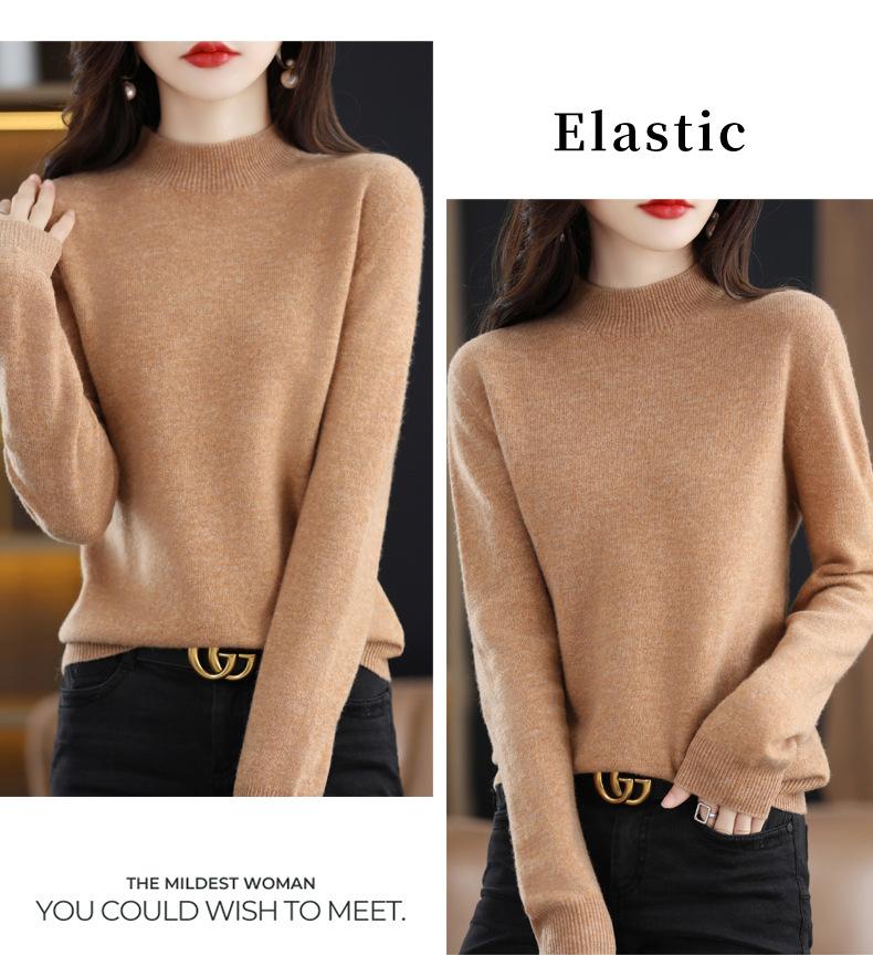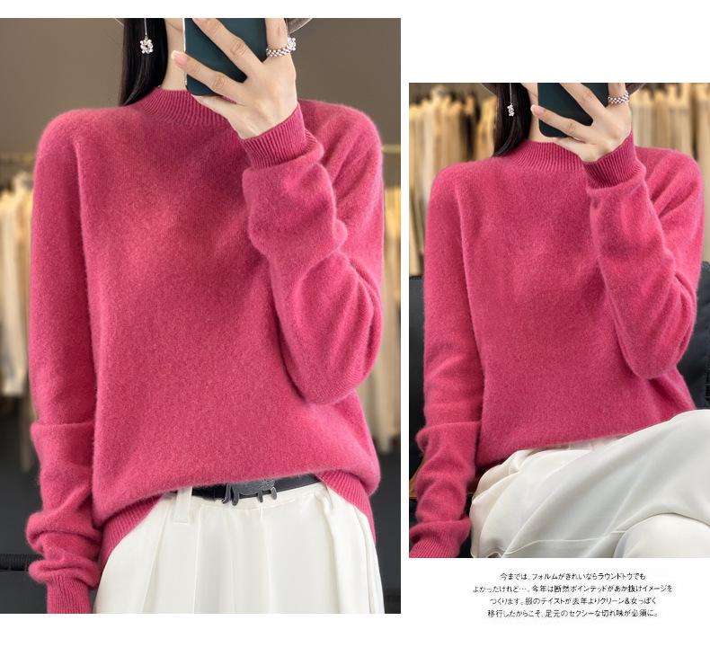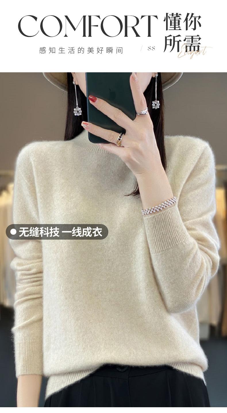 Venta al por mayor otoño e invierno nueva ropa de primera línea sin costuras semic cuello alto suéter suave ceroso suelto camisa base interior suéter
