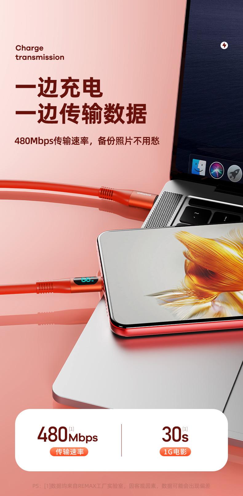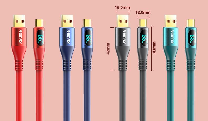 El cable de datos con pantalla digital inteligente remax con alta elasticidad y goma suave es adecuado para cable de carga para teléfono móvil de carga rápida de 66 W para Huawei Android