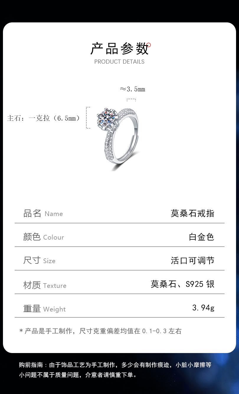 Anillo de Plata Esterlina S925 Color D Moissanita Elegante Moderno Seis Garras Ropa de Trabajo Elegante Lujo Accesible Popular Anillo de Propuesta Boda