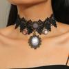 Collar de Encaje Gótico Retro Transfronterizo Europeo y Americano Diseño de Moda para Mujer Gargantilla con Colgante de Rosa Oscura