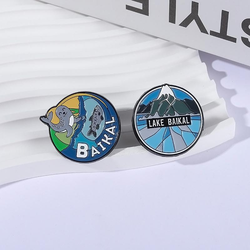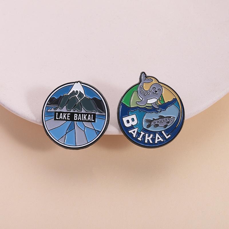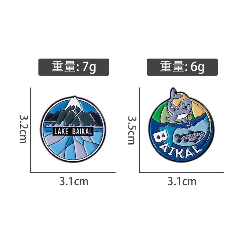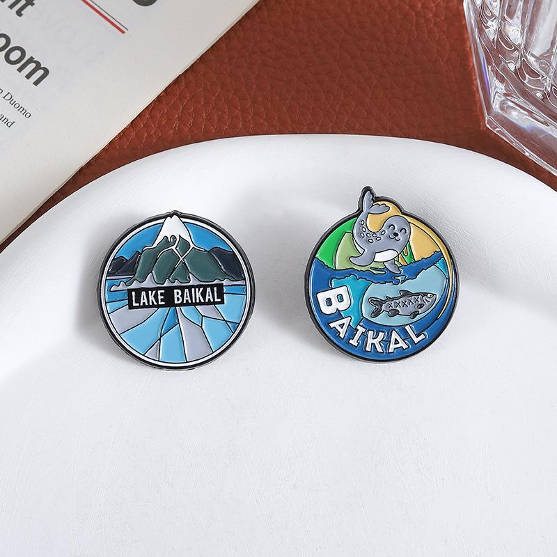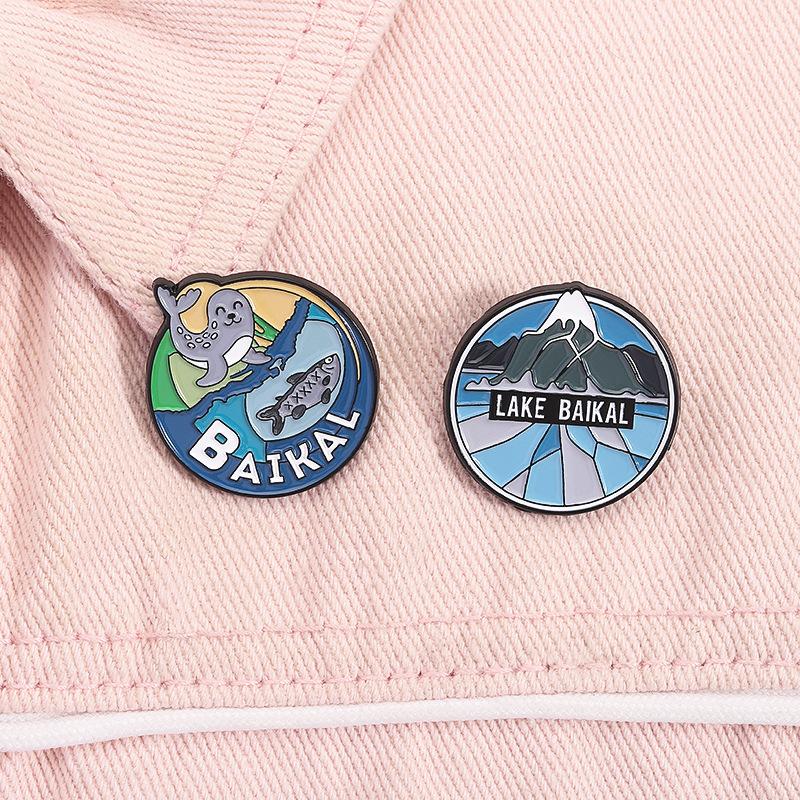 Serie Azul Paisaje de Montaña Lago Redondo Insignia Metálica de Recuerdo de Viaje Broche Accesorio Lago Baikal