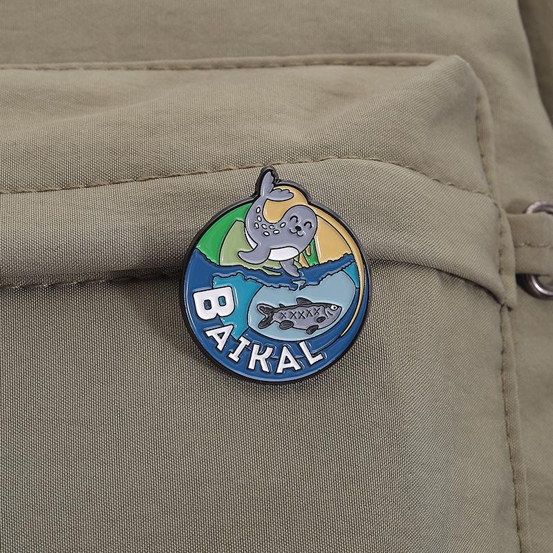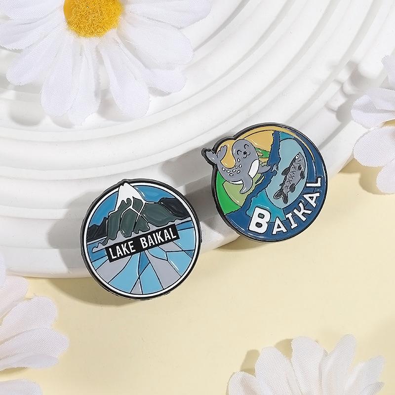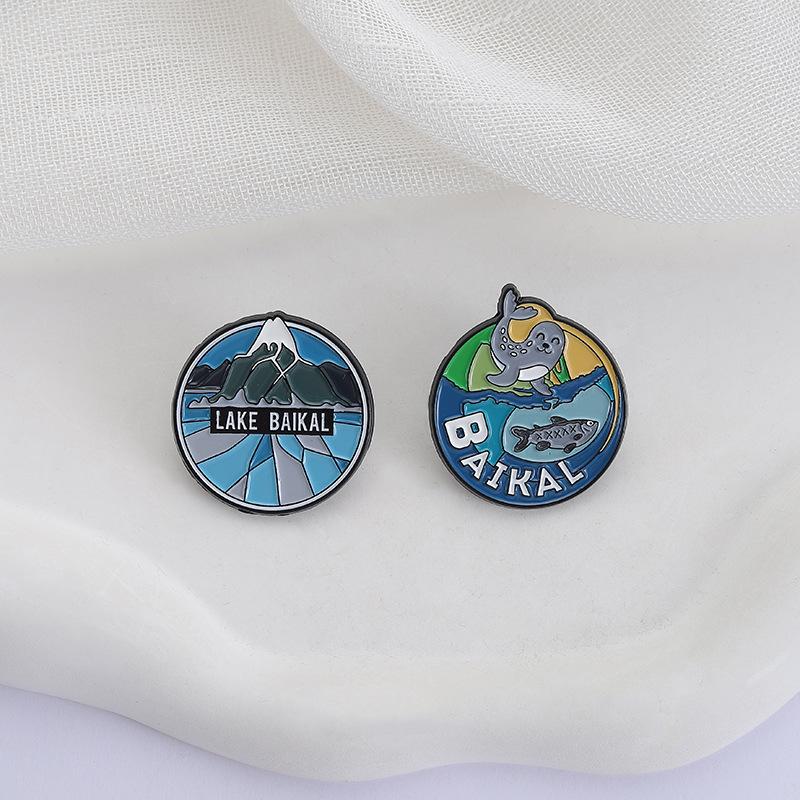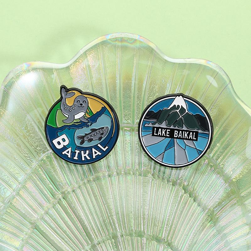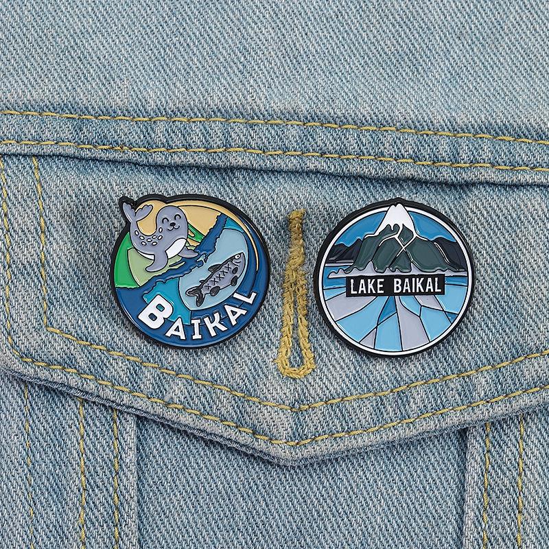 Serie Azul Paisaje de Montaña Lago Redondo Insignia Metálica de Recuerdo de Viaje Broche Accesorio Lago Baikal