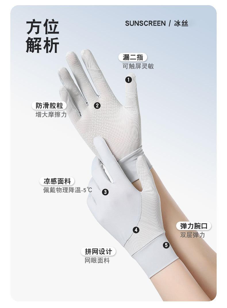 Guantes de Seda de Hielo de Verano Costuras Nuevas Transpirables Antideslizantes Protección Solar Dedo Completo Protección UV Guantes Frescos para Conducir