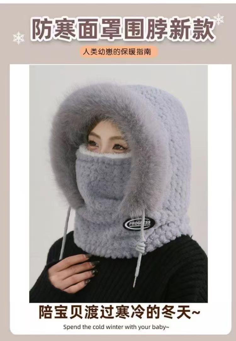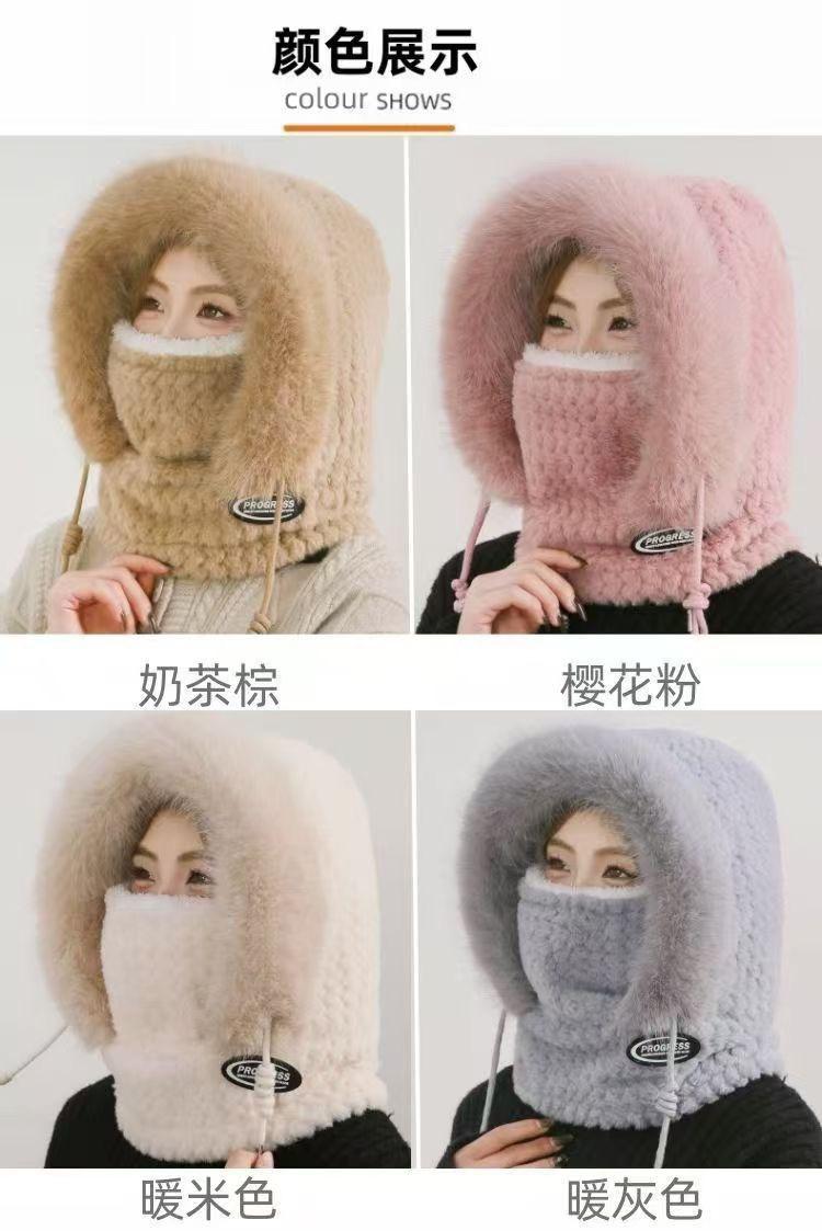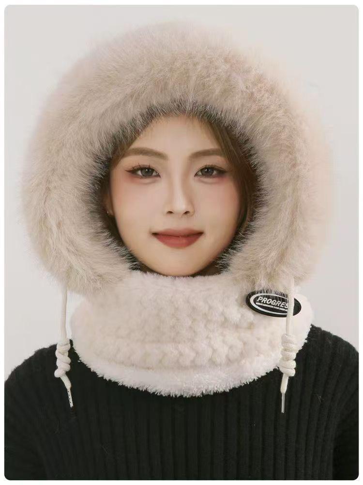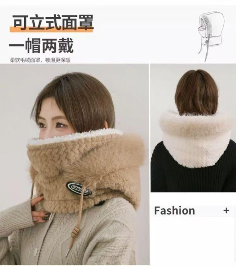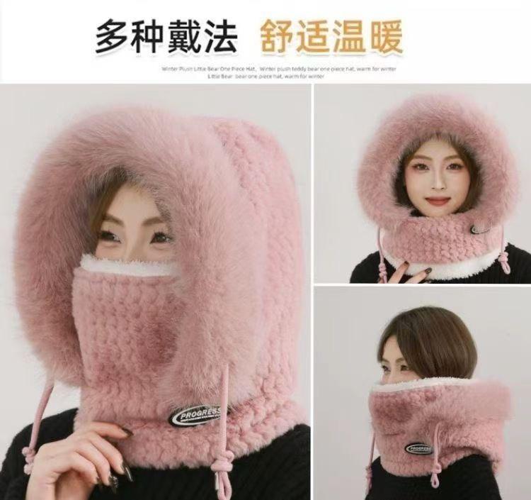 Sombrero a prueba de viento para mujer Otoño Invierno Ciclismo Cálido Protección para las orejas Envoltura para la cabeza Exterior Integrado Tipo Pulóver Sombrero Bufanda de felpa Máscara