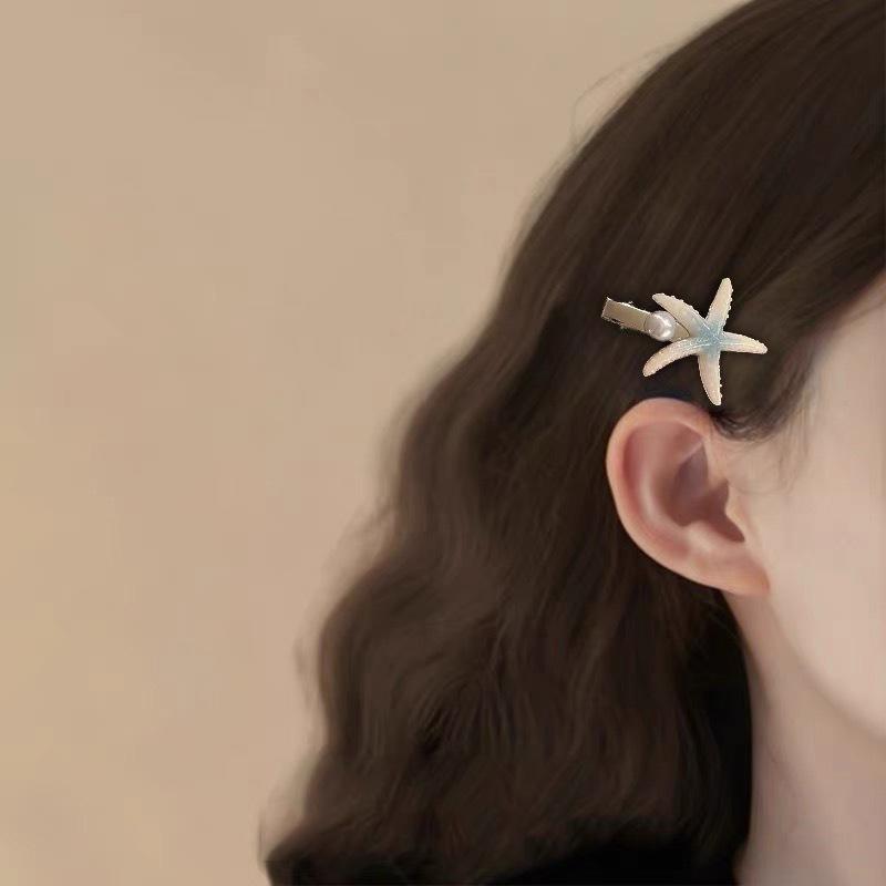 Verano Nuevo Horquilla Estrella de Mar Verde Menta Moda Versátil Pequeña Fresca Perla Concha Horquilla Flequillo Clip Lateral