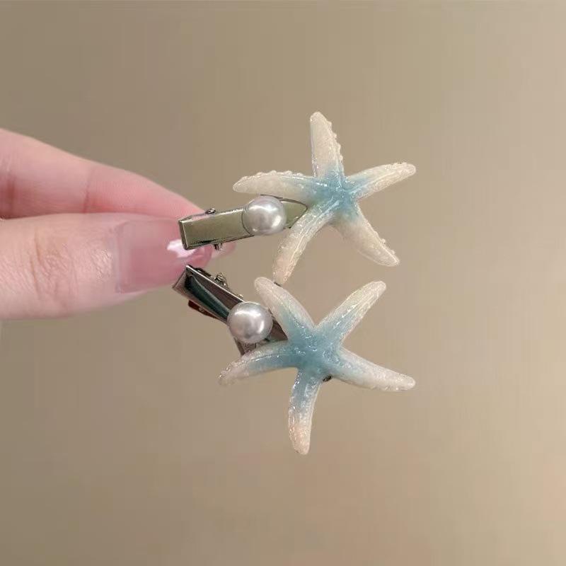 Compra Verano Nuevo Horquilla Estrella de Mar Verde Menta Moda Versátil Pequeña Fresca Perla Concha Horquilla Flequillo Clip Lateral al por mayor en Joom.pro