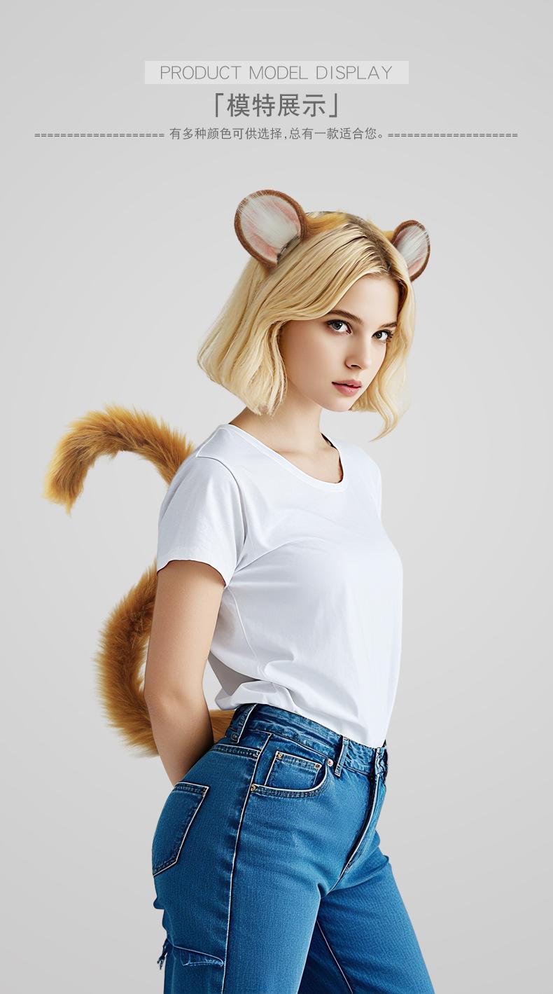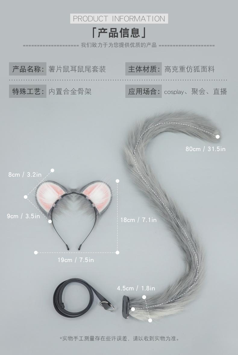 Diadema de Orejas de Bestia de Halloween Orejas de Ratón Banda para el Cabello Felpa cos Accesorios de Orejas de Ratón Suministro Transfronterizo Traje de Orejas y Cola de Hámster