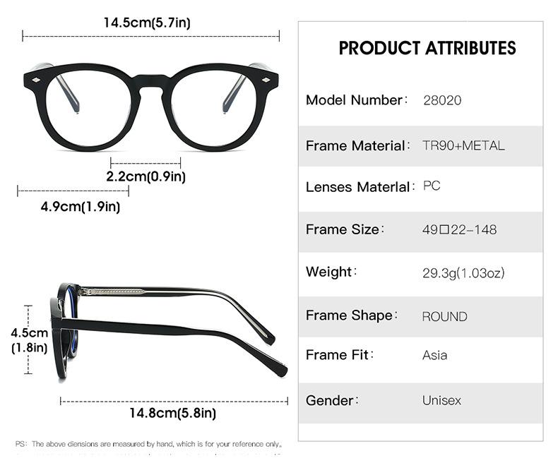 Nuevo Estilo Marco Redondo Liso Luz Anti-Azul 28020 Estilo Callejero Retro Marco de Gafas TR Super Pin-Pie