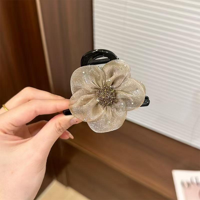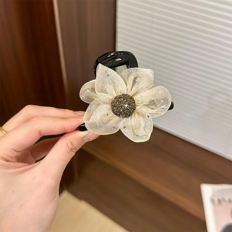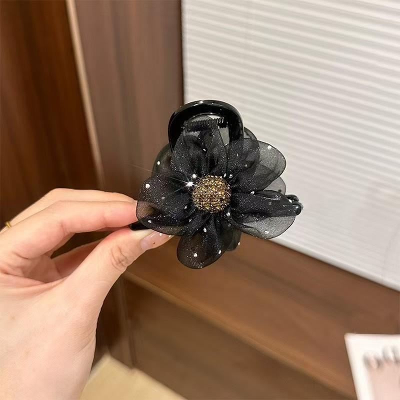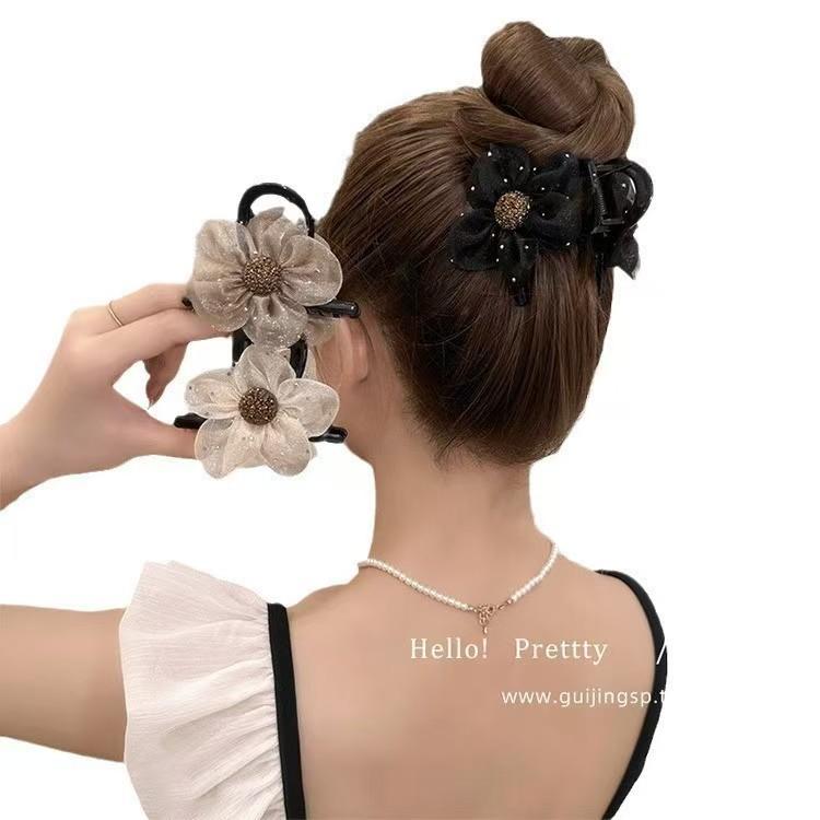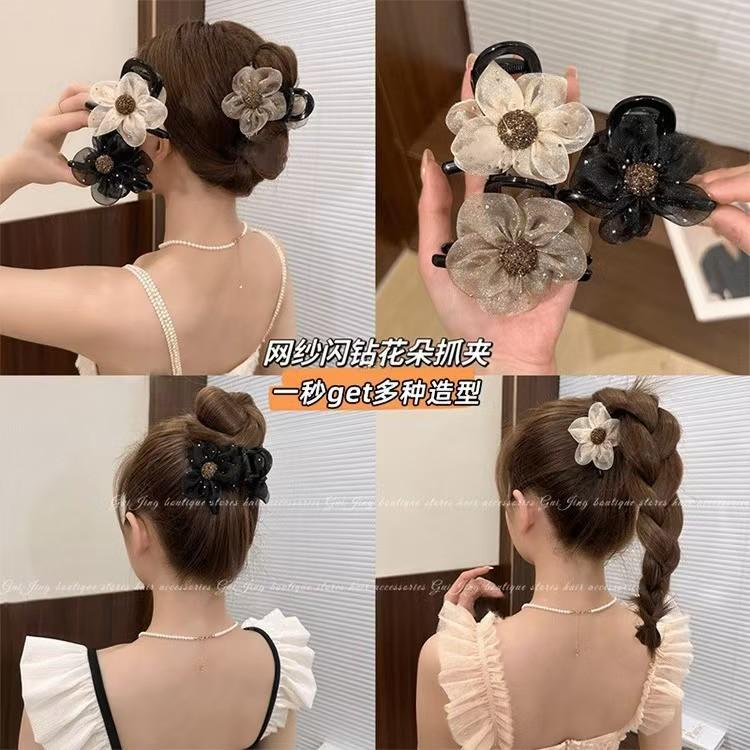 Pinza de Flor de Sol de Malla con Pedrería para Mujer, Pinza de Tiburón para el Cabello de Estilo Nuevo de Alta Gama 2024, Pinza para el Cabello Semirrecogido en la Parte Posterior de la Cabeza