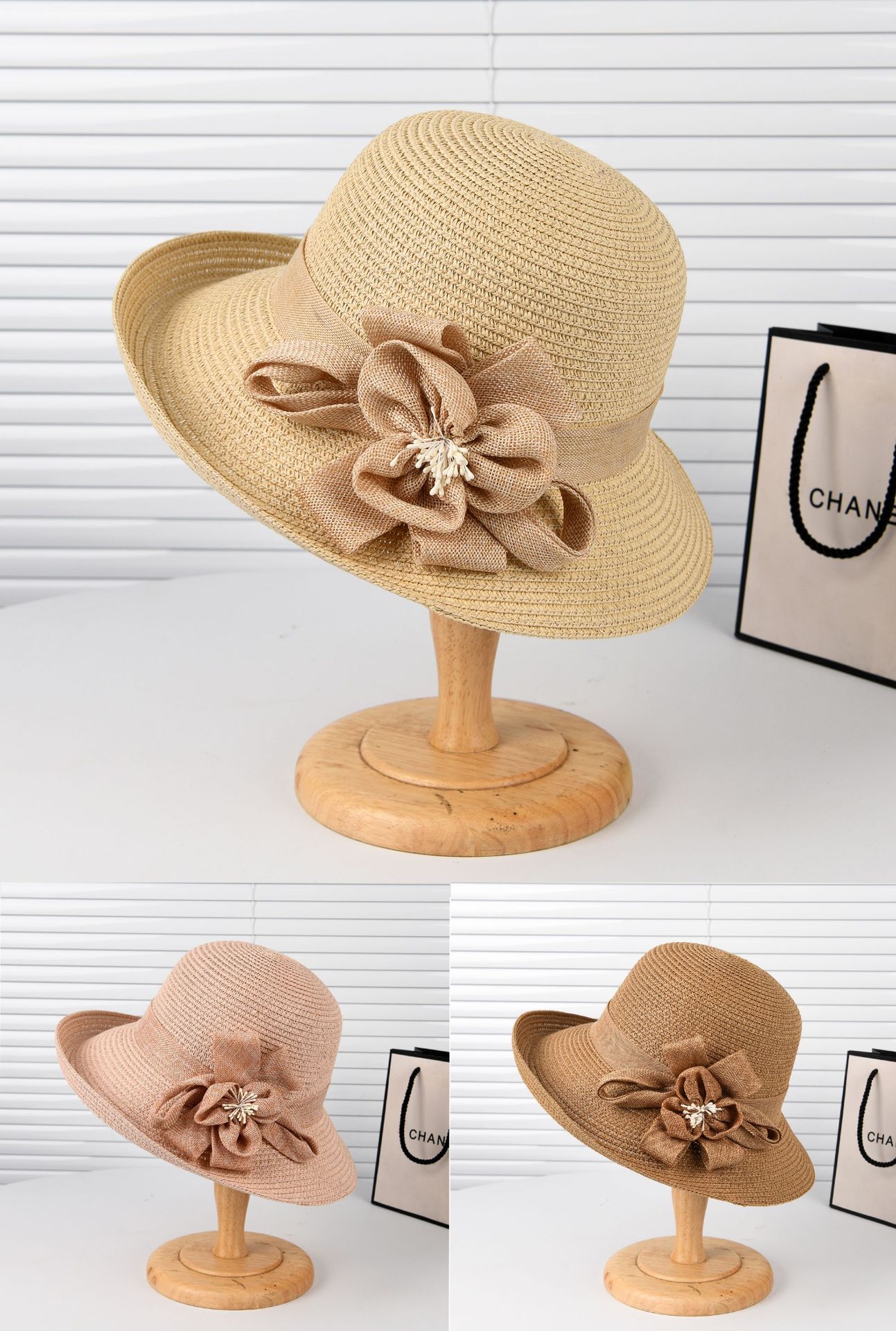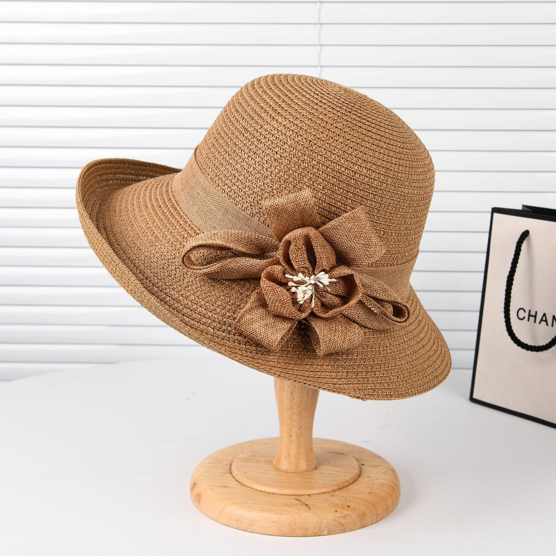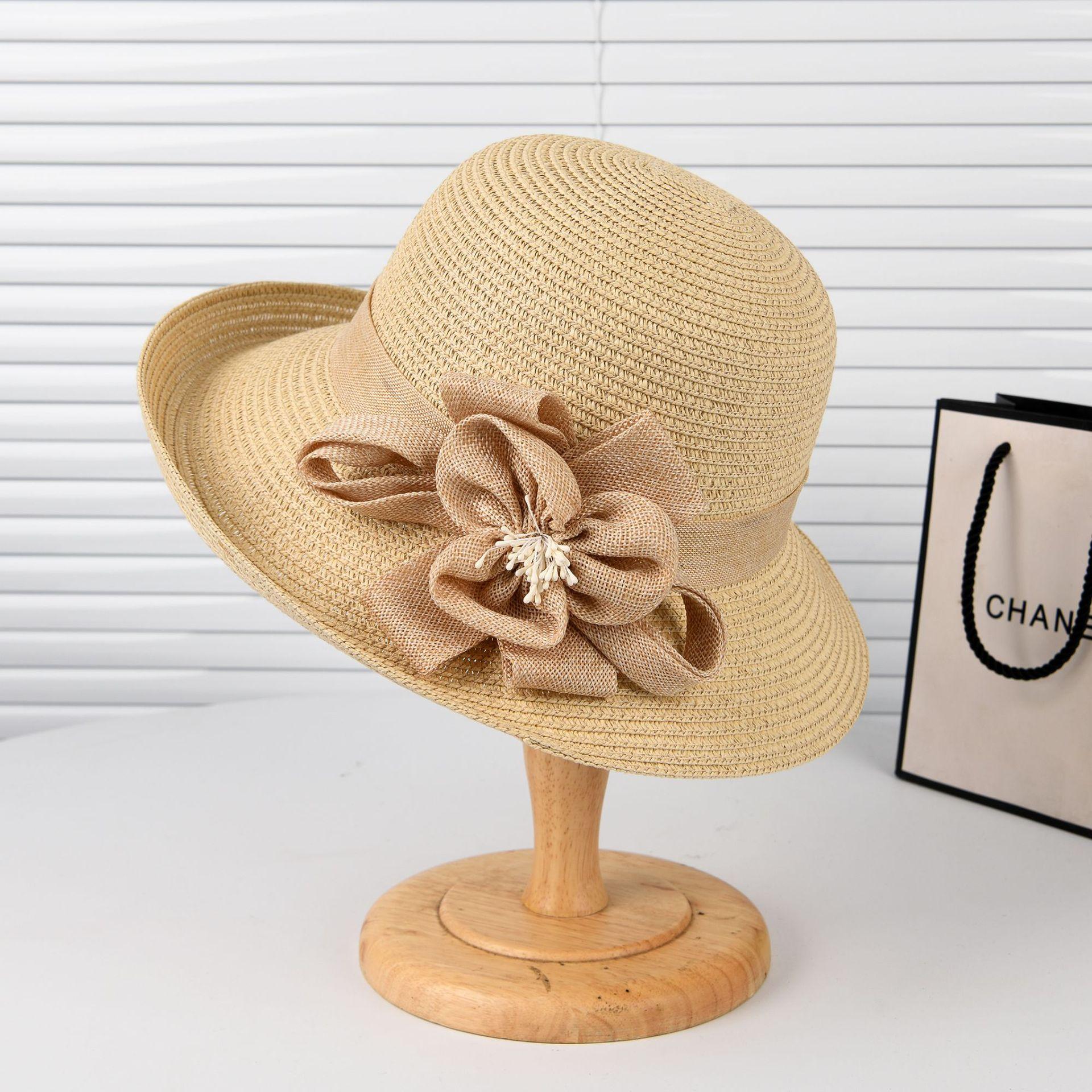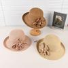 Sombrero de Paja para Mujer con Protección Solar de Verano, Sombrero de Cubo con Flor Estéreo que Afina el Rostro, Sombrero para el Sol de Vacaciones en la Playa con Ala Levantada, Sombrero de Pescador