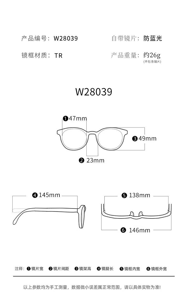 Nuevos Lentes de Montura Negra Altura Número Miopía Mujer Marco TR de Alta Gama Luz Anti-Azul 28039 Marco Pequeño Simple