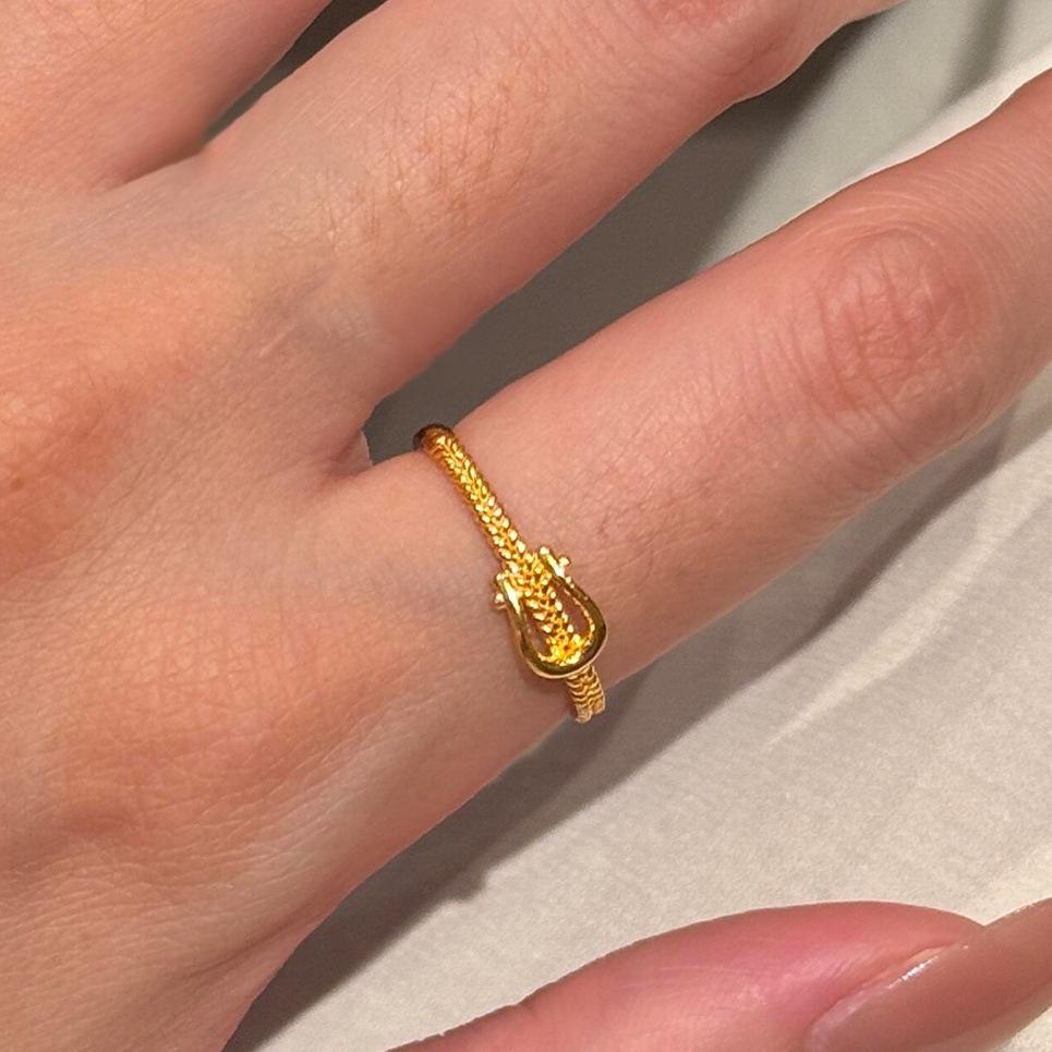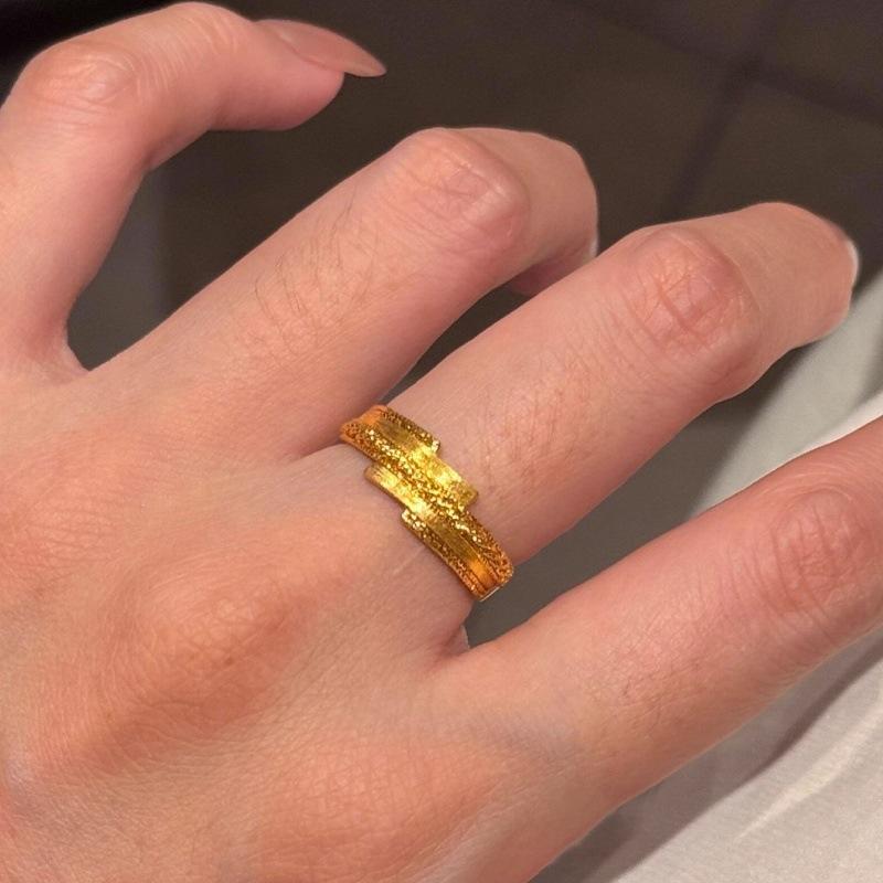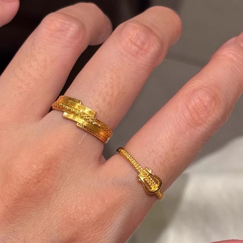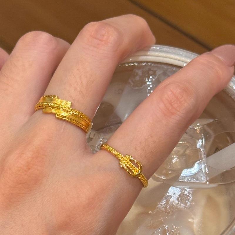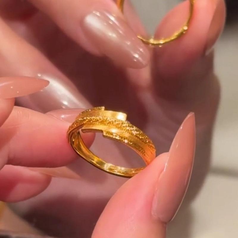 Anillo americano "Velvet Light Leaping Gold" estilo nicho retro personalidad textura hielo picado mujeres ajustable mayoreo