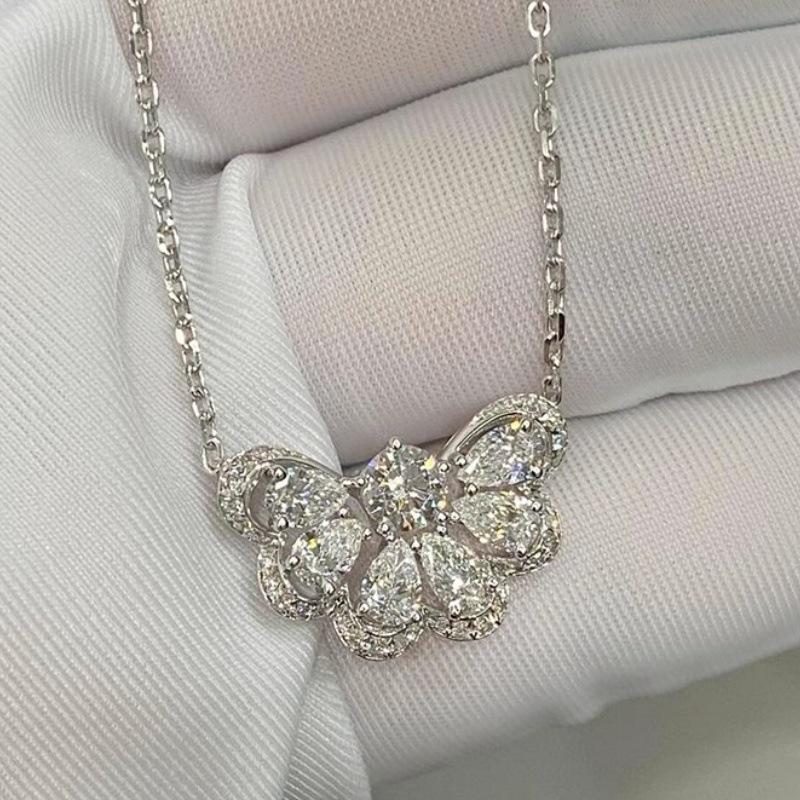 Collar Vintage Francés Resistente Deslumbrante con Diamantes Completos en Forma de Abanico con un Sentido de Lujo, Moderno, Exquisito, Cadena de Clavícula de Lujo Ligero al Por Mayor