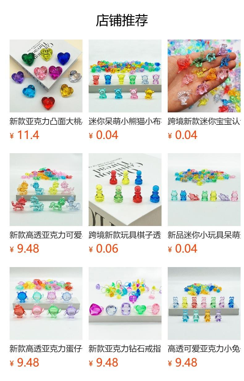 Nuestra fábrica produce todo tipo de cuentas sueltas para videojuegos infantiles, cuentas sueltas de imitación de cristal para máquinas de juegos de parques de atracciones, cuentas de dibujos animados para máquinas de juegos de atracciones infantiles, animales de plástico acrílico, plantas de plástico acrílico, frutas de plástico acrílico y otros productos. ¡No dude en consultarnos!