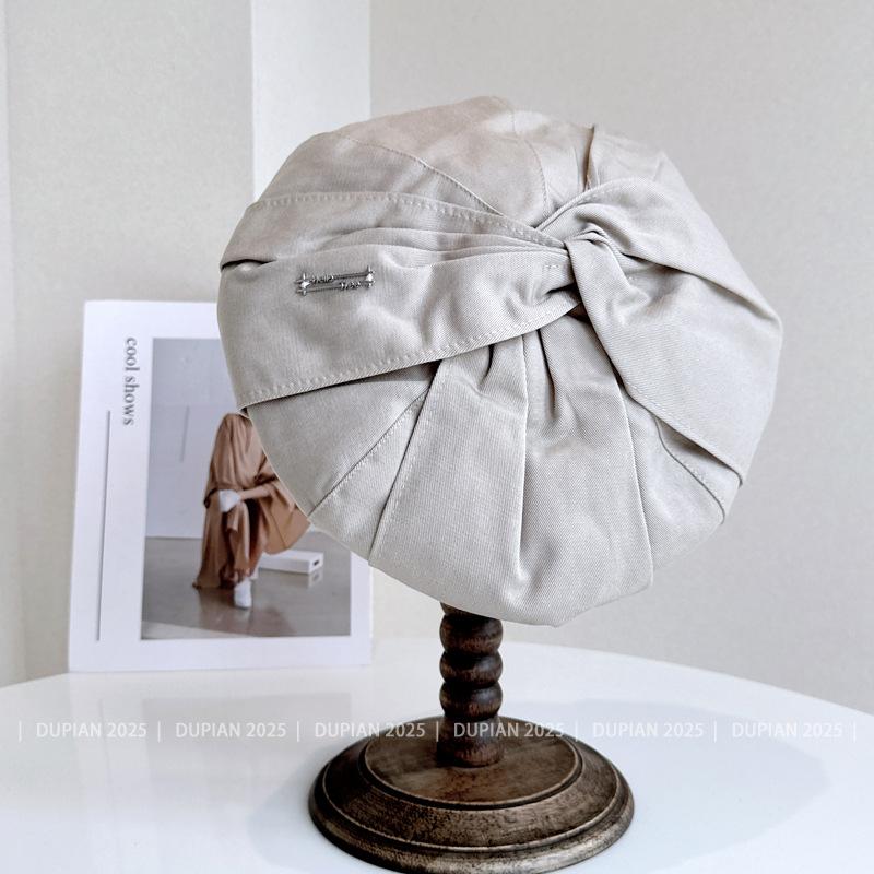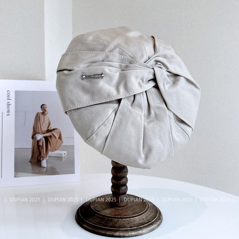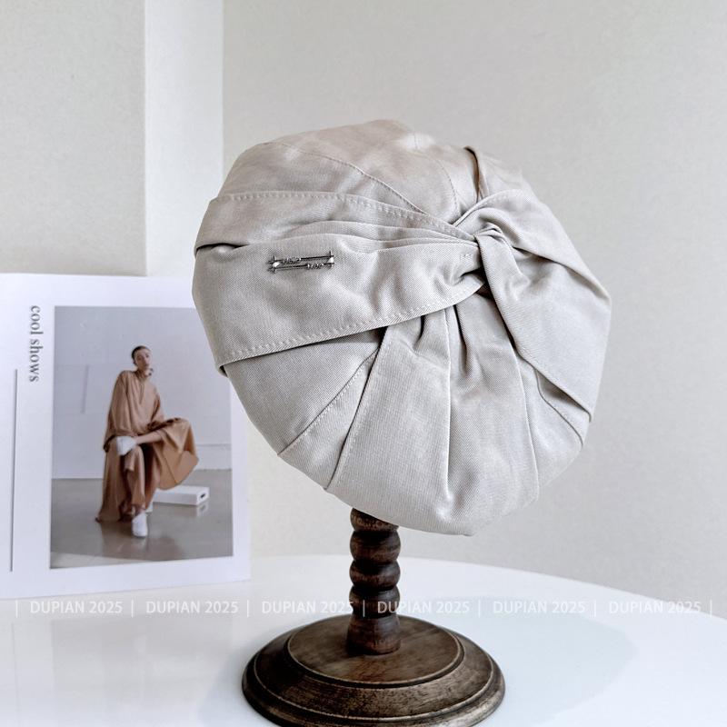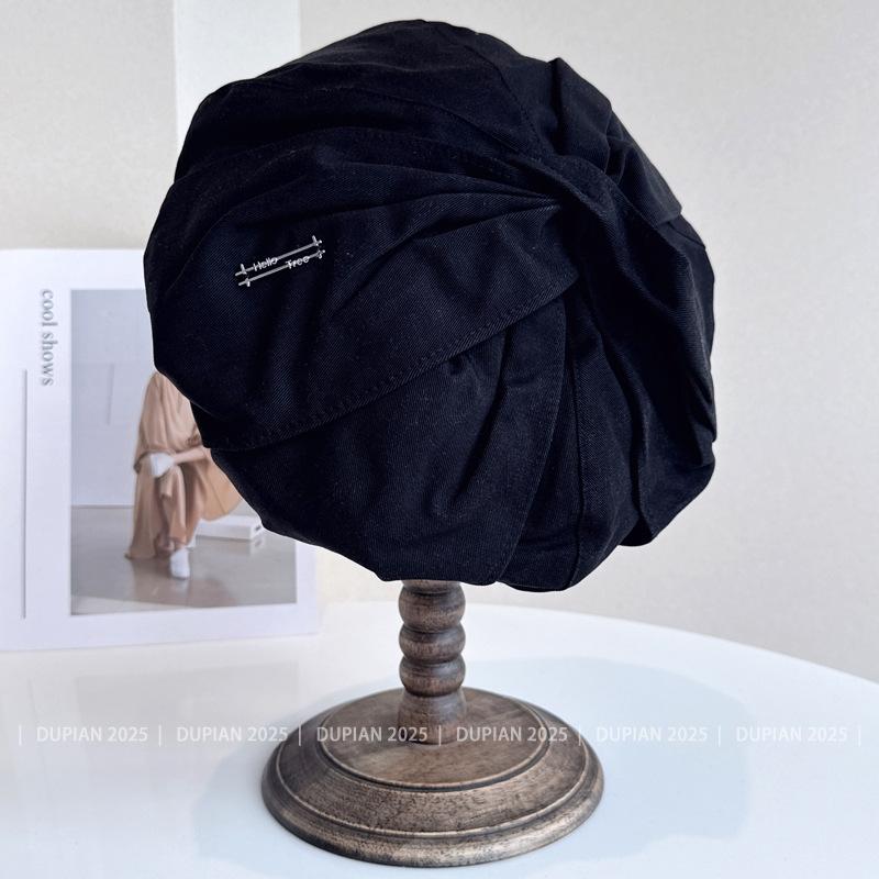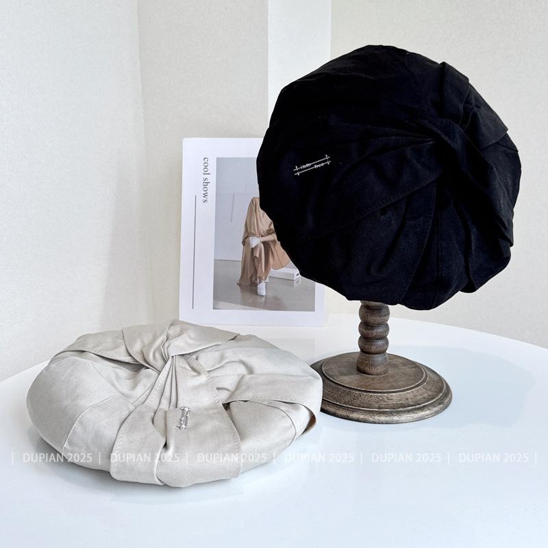 Boina japonesa CA4 estilo similar de lino de algodón para mujer otoño invierno artística plisada sombrero de pintor temperamento sombrero de azafata sombrero nube