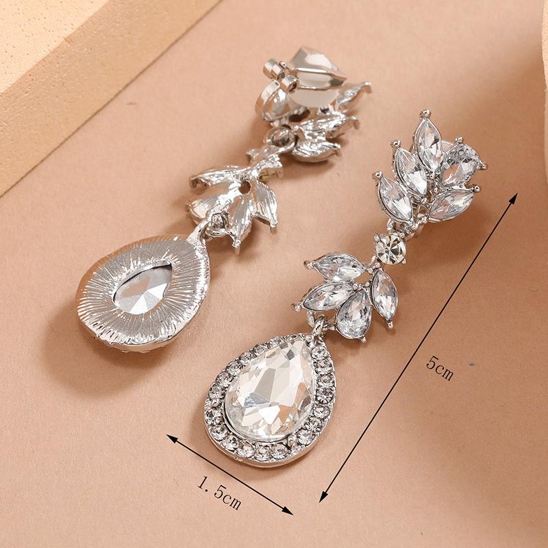 Moda Europea y Americana Exagerados Lujo Estilo Corte Clip para la Oreja Pendientes Nupciales Aleación Geométricos Largos Pendientes de Diamantes para Mujeres