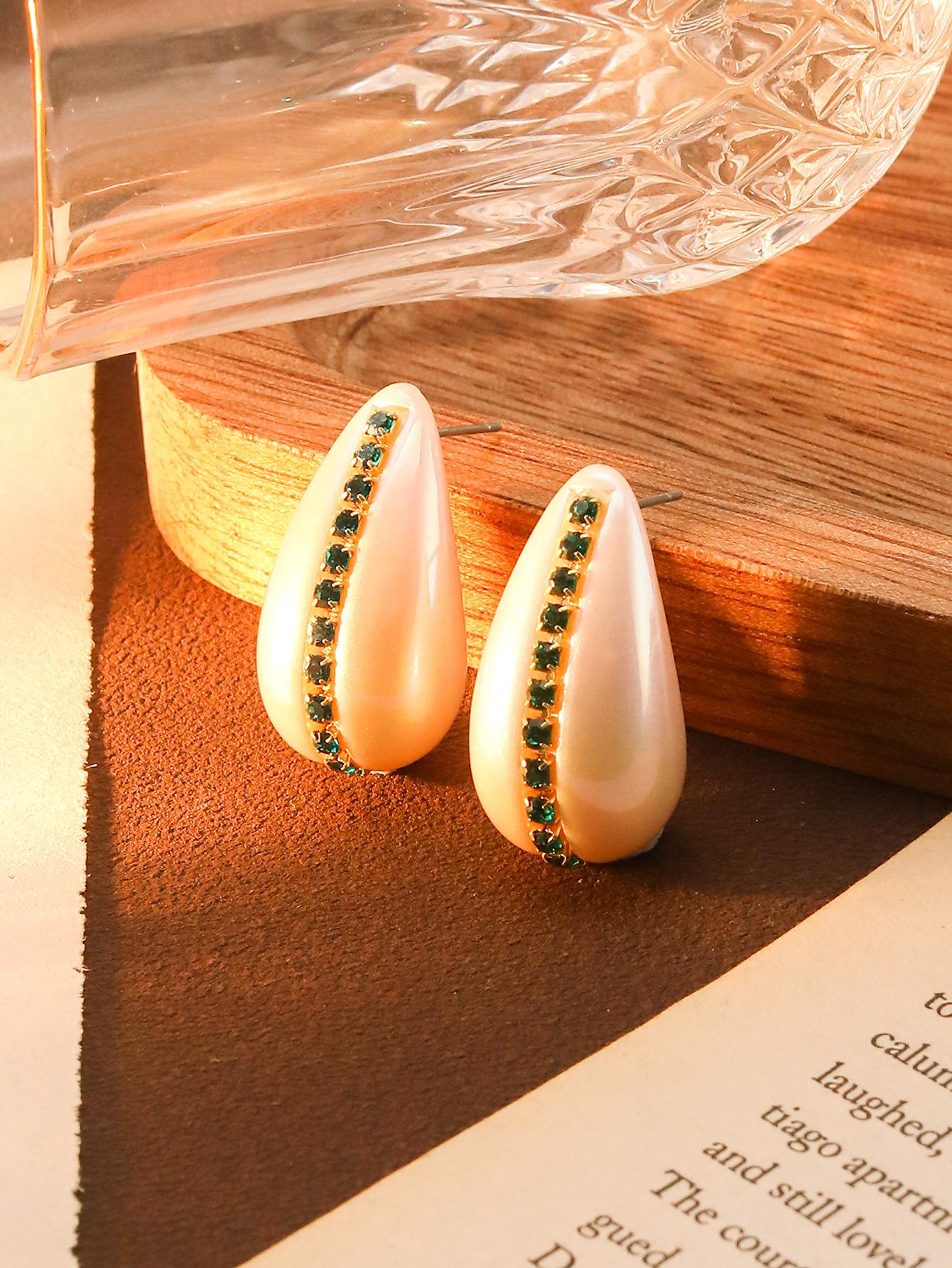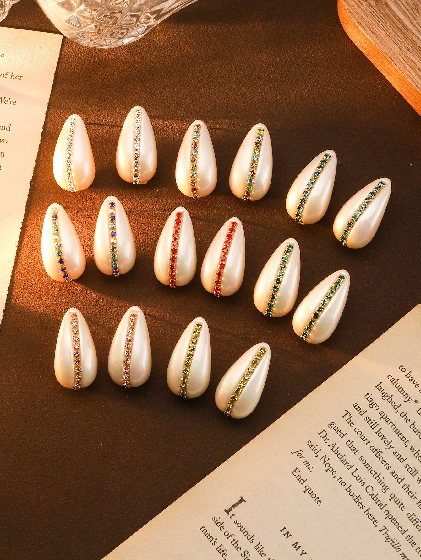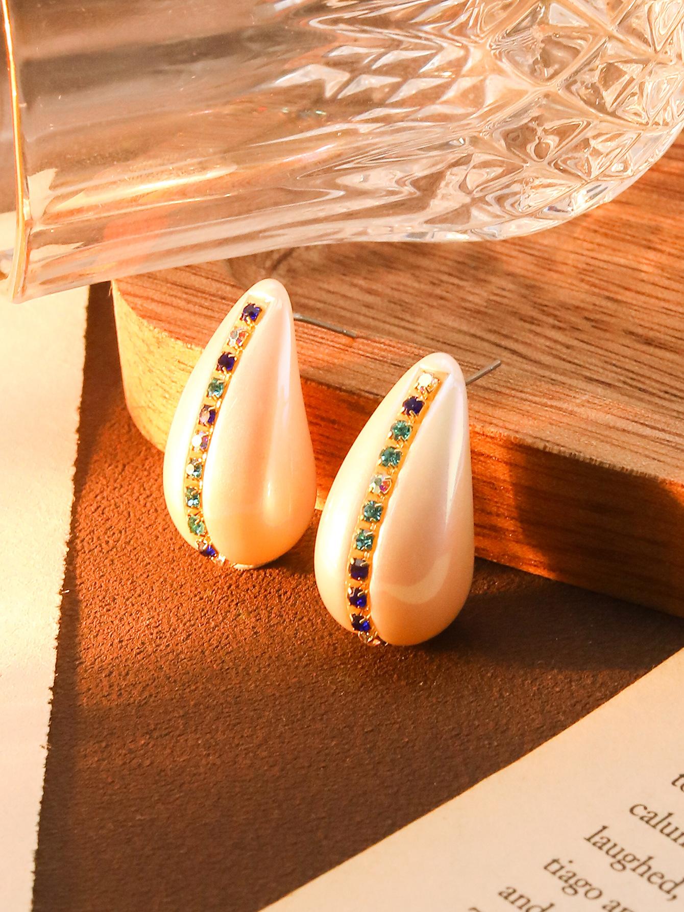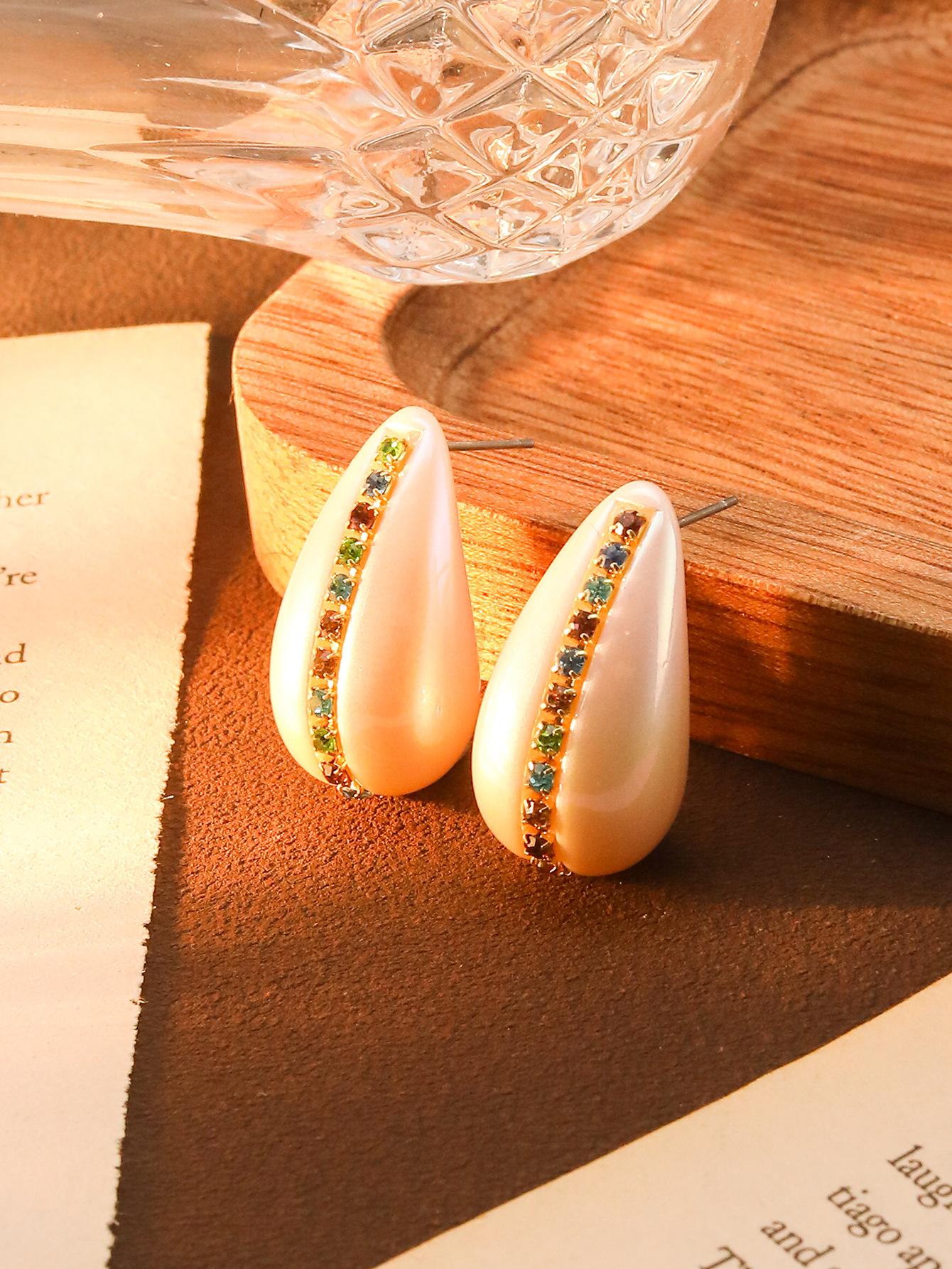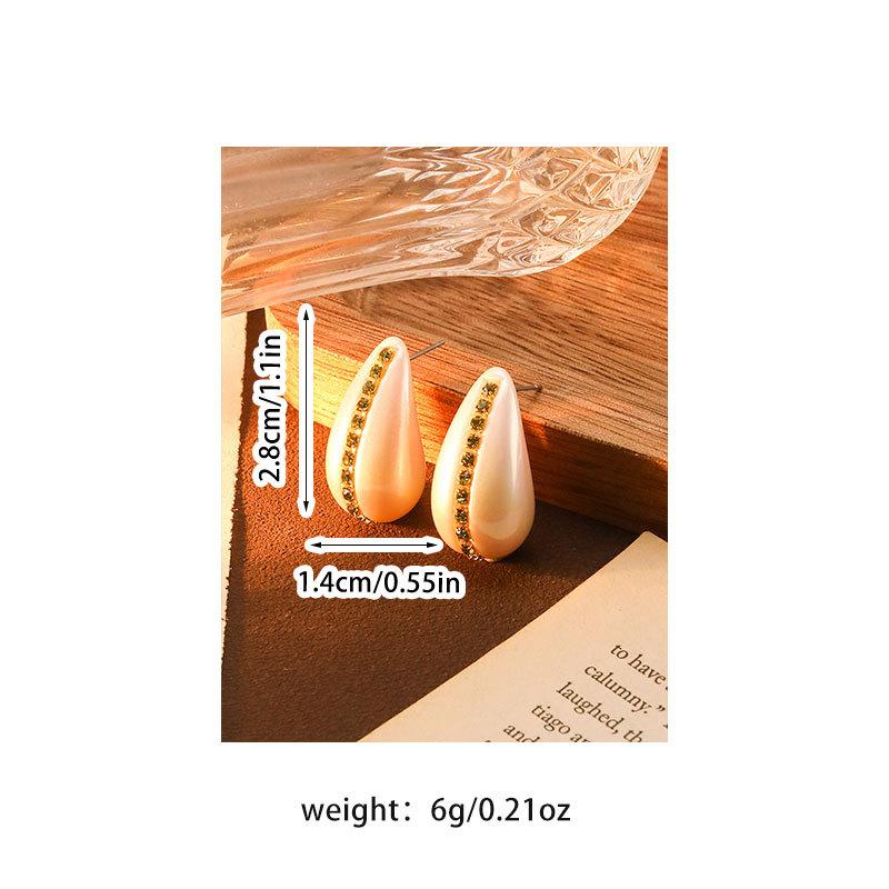 Aretes Colgantes de Diamante Lágrima de Perla AB de Color Transfronterizo Europeo y Americano Aretes de Tuerca Simples Versátiles con Temperamento Moda para el Trabajo Pins para las Orejas Venta al Mayoreo MujeresSuministro al por mayor de joyas