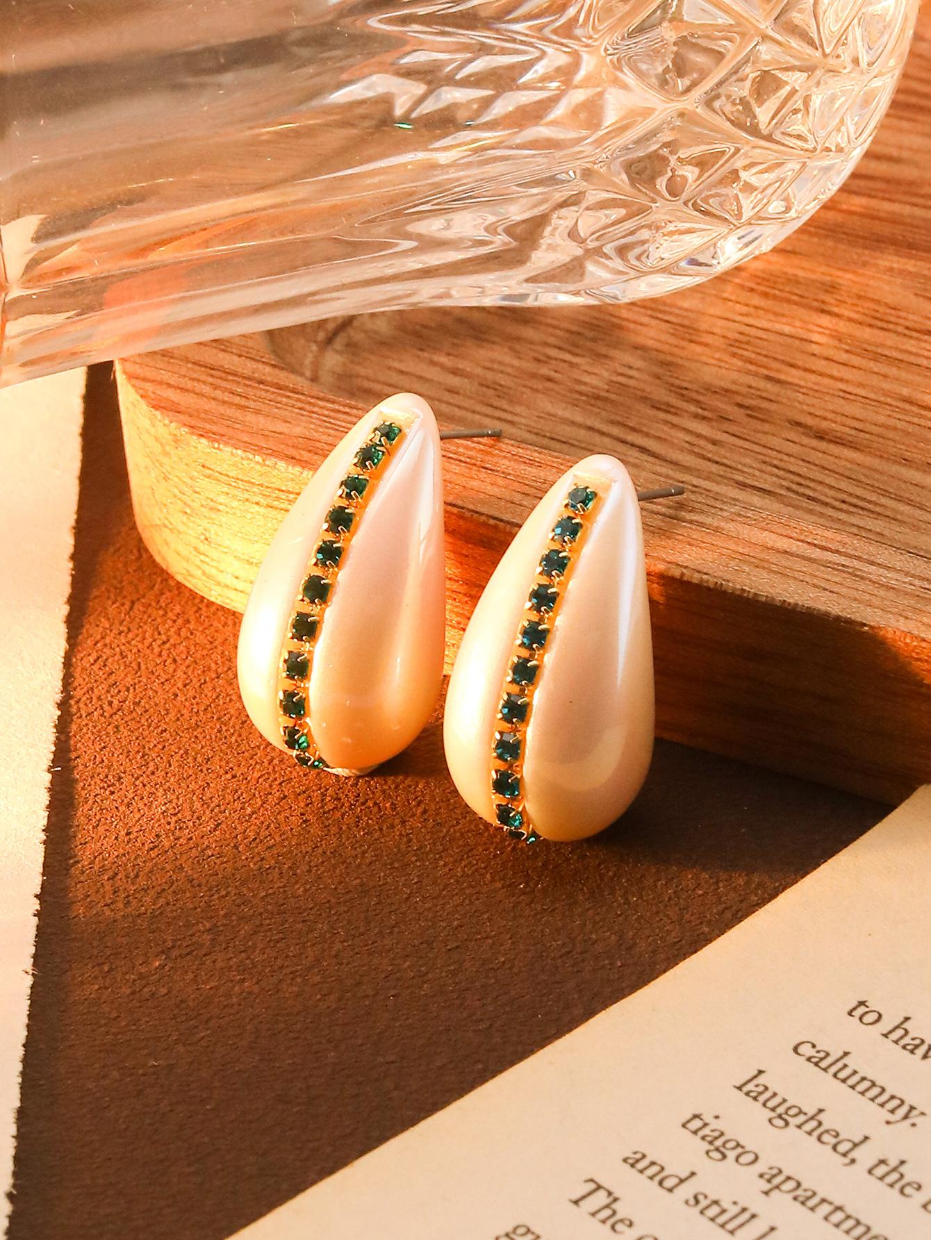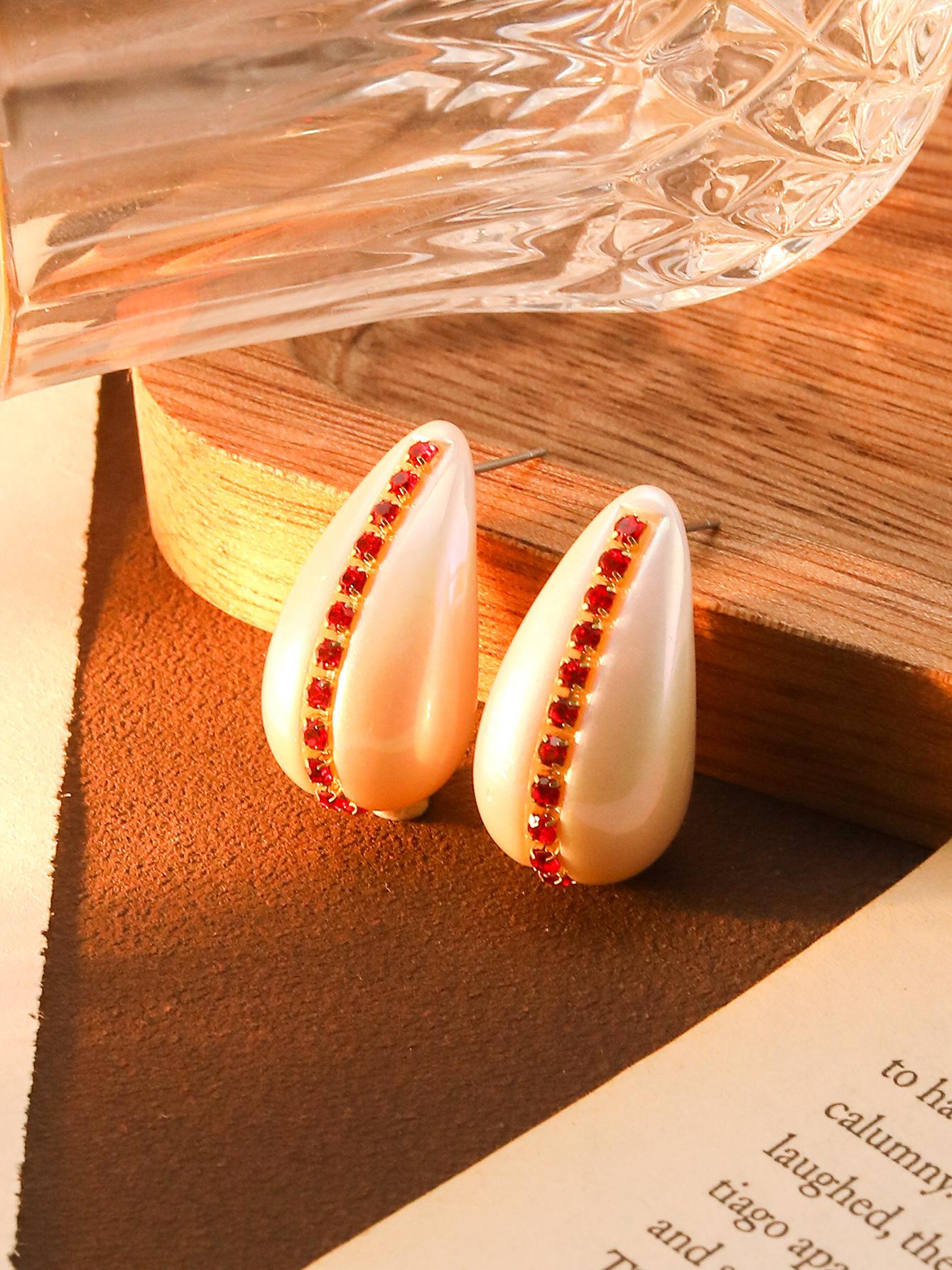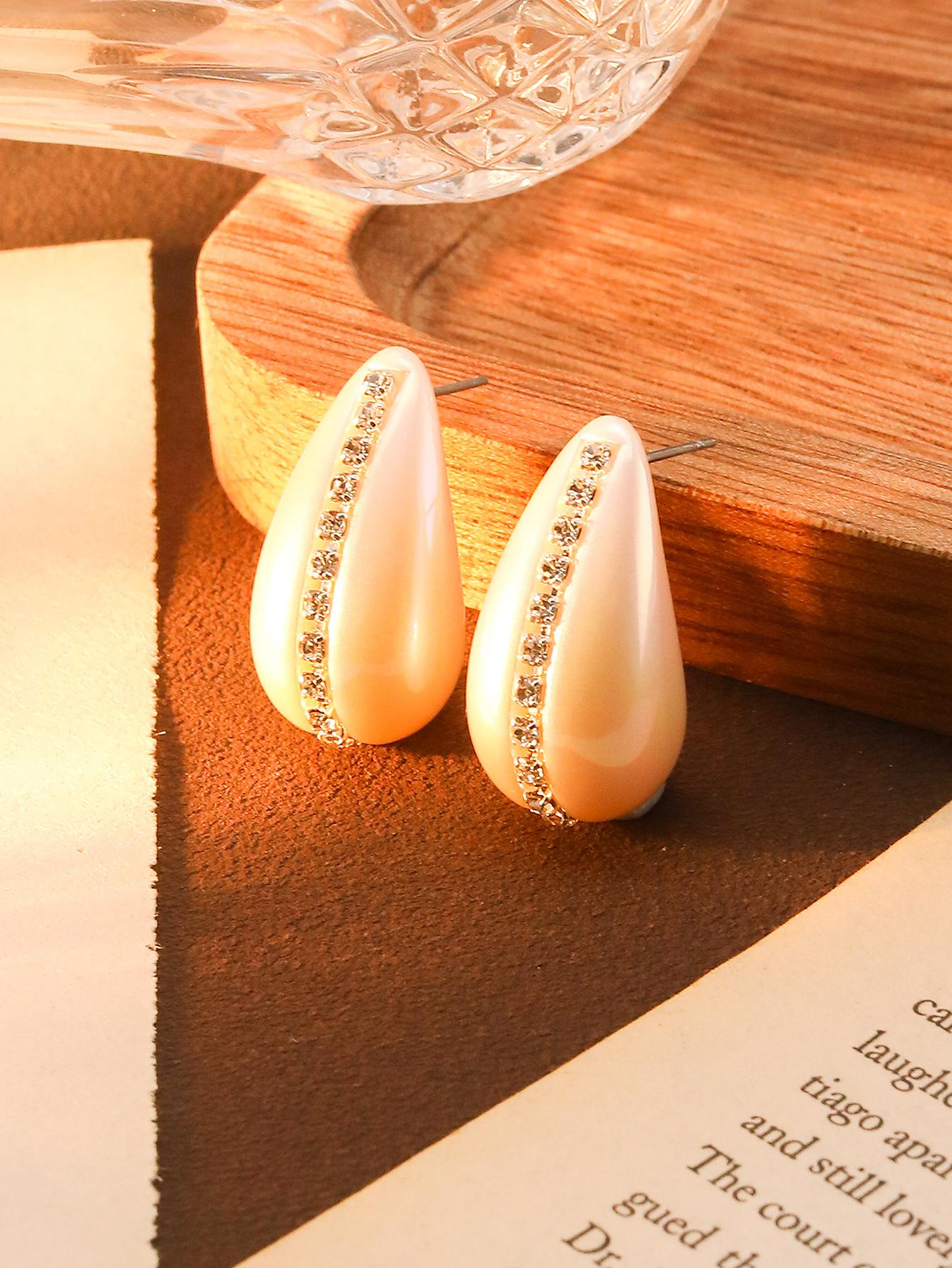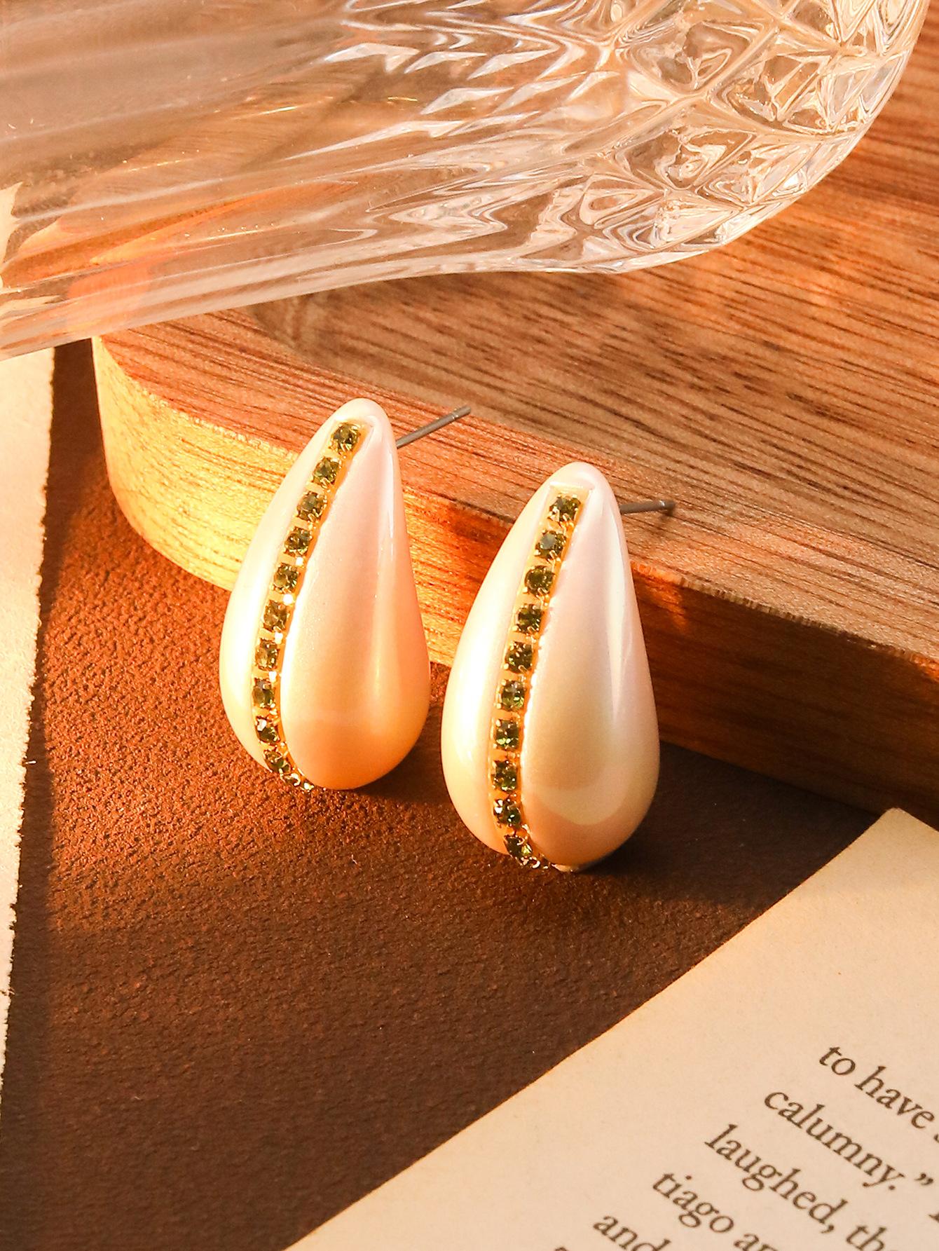 Aretes Colgantes de Diamante Lágrima de Perla AB de Color Transfronterizo Europeo y Americano Aretes de Tuerca Simples Versátiles con Temperamento Moda para el Trabajo Pins para las Orejas Venta al Mayoreo MujeresSuministro al por mayor de joyas