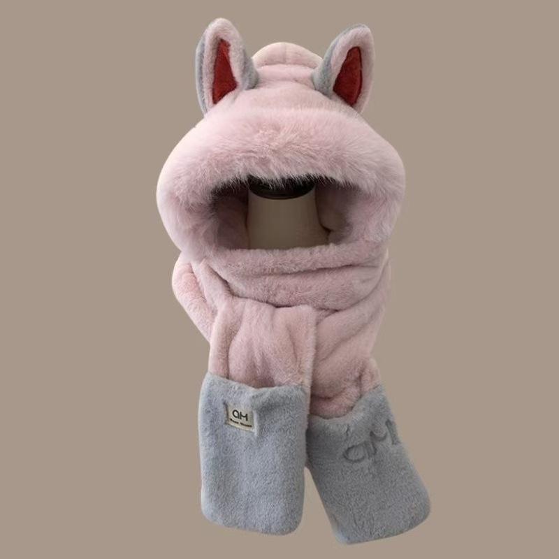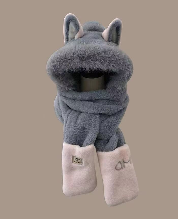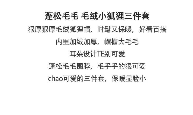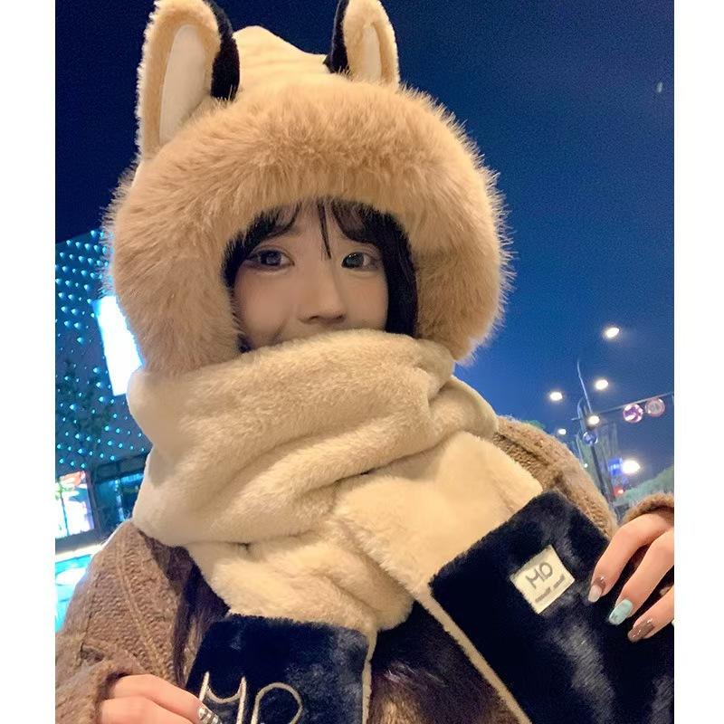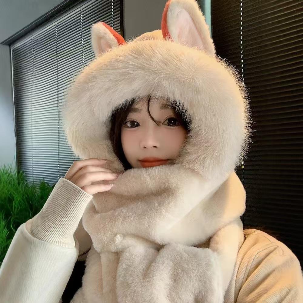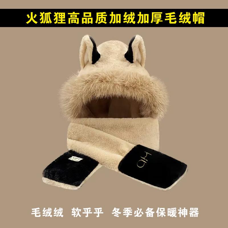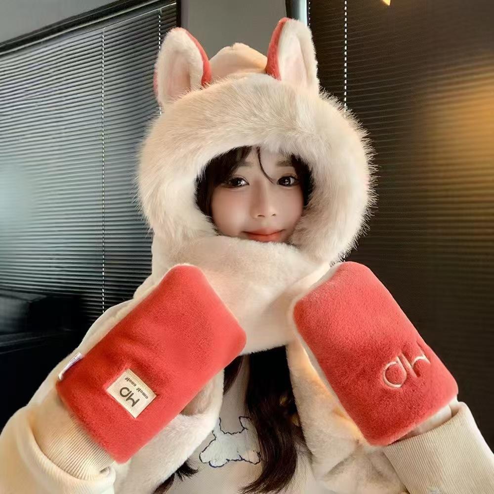 Explosiones día de invierno zorro de fuego sombrero bufanda guantes de una pieza de tres piezas forrado de vellón engrosado combinable cálido protección para las orejas