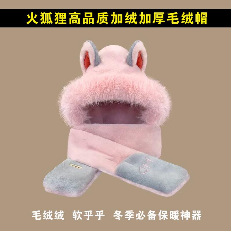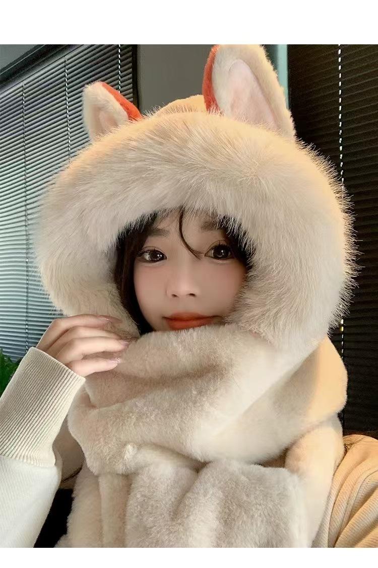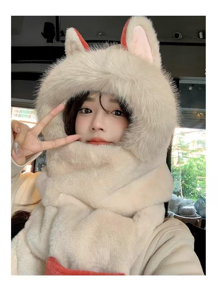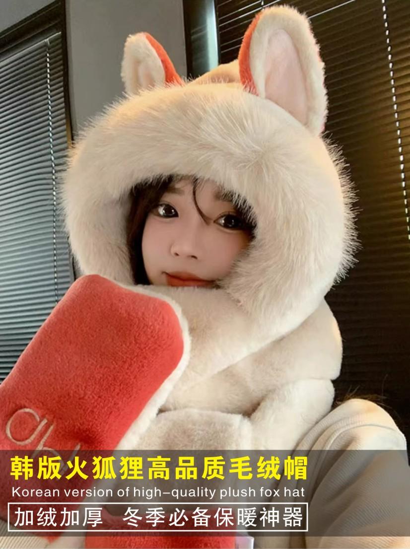 High quality fire fox hat fleece-linedthickened hat scarf gloves all-in-one three-piece suit