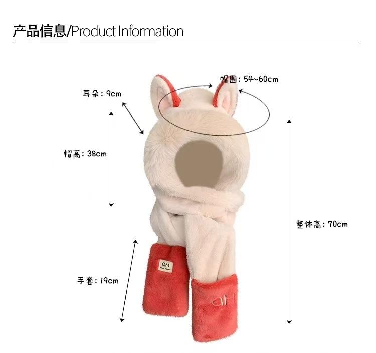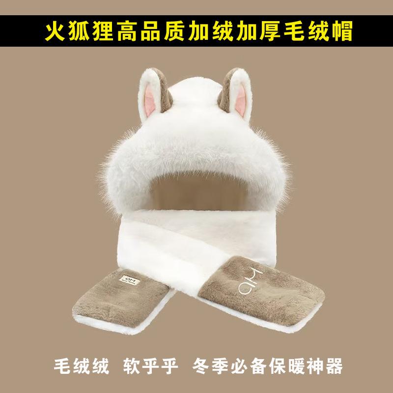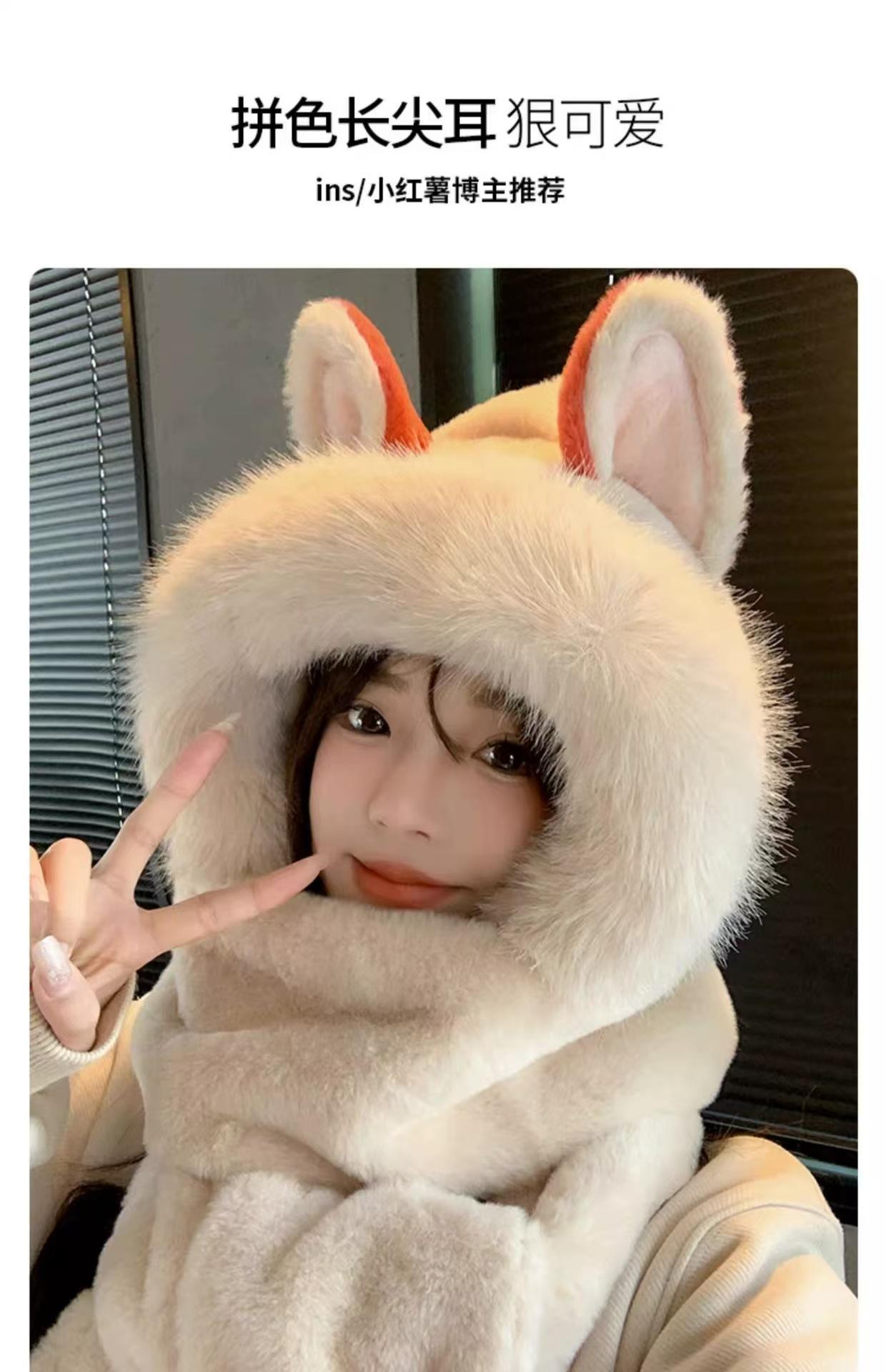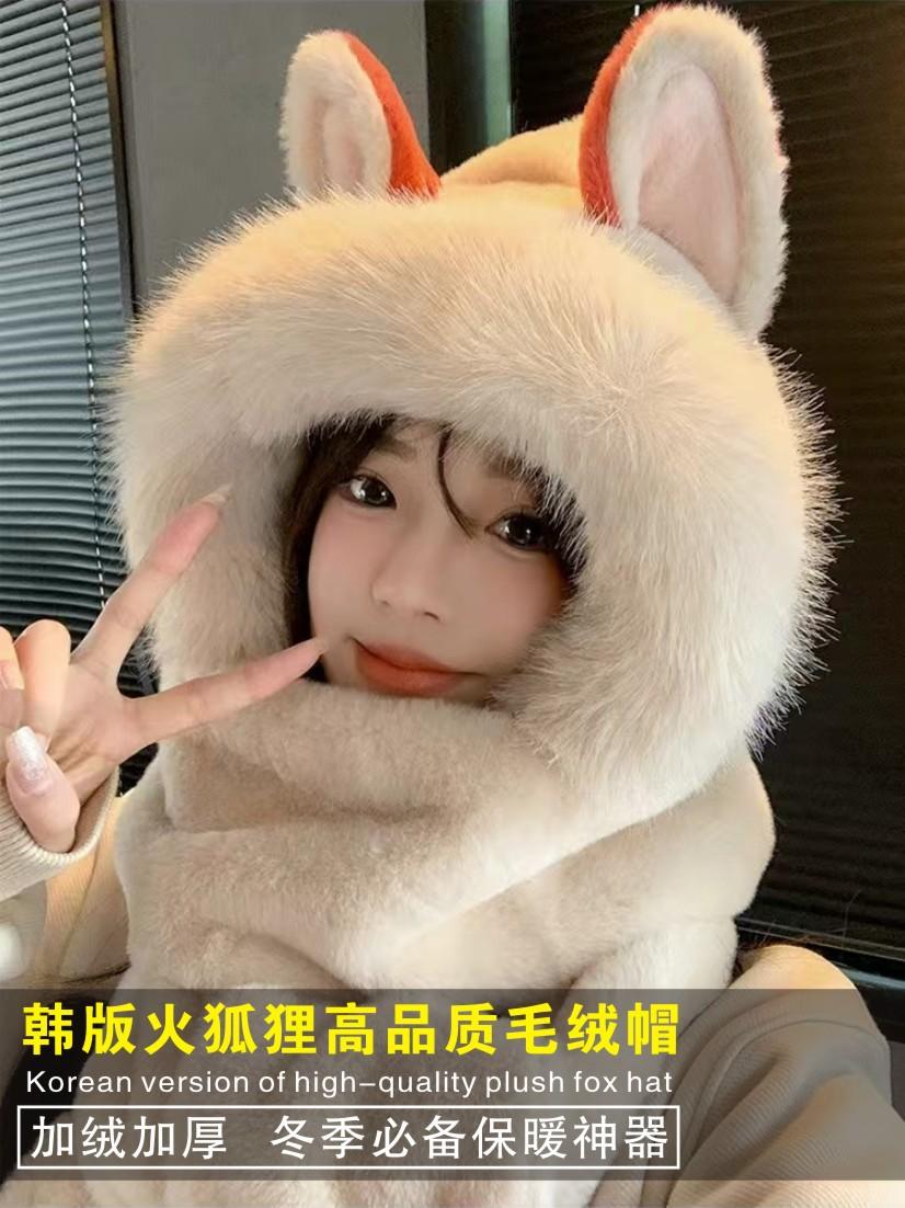 High quality fire fox hat fleece-linedthickened hat scarf gloves all-in-one three-piece suit