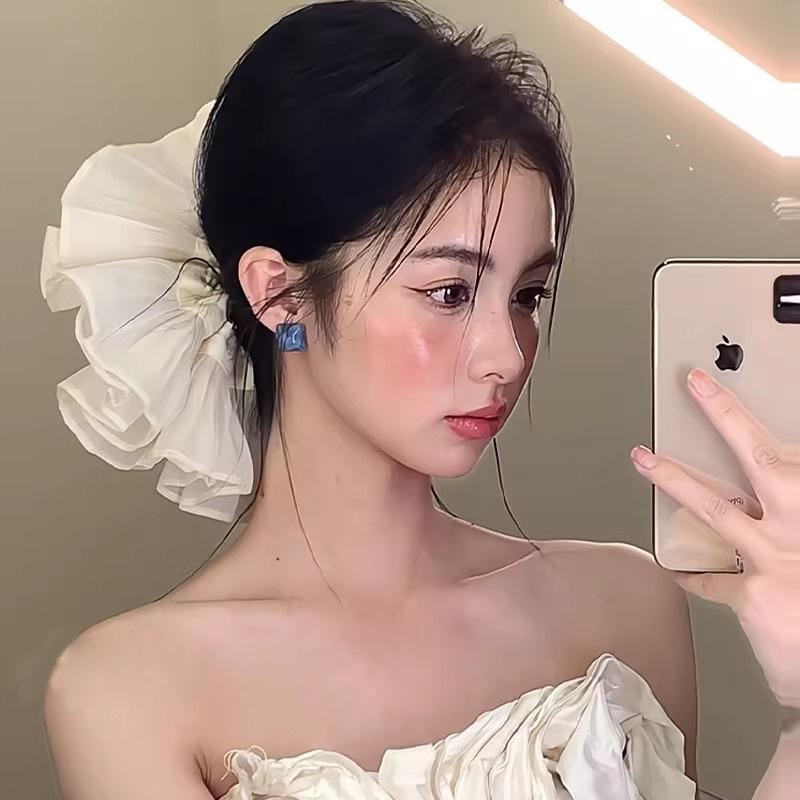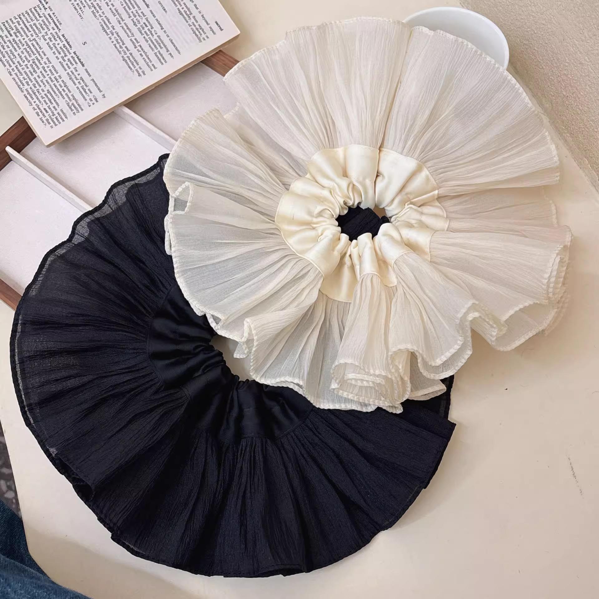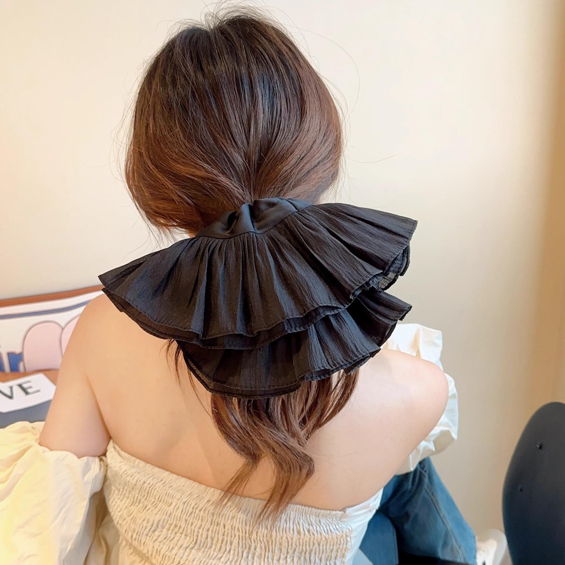 Anillo para el cabello de intestino grueso francés de alta gama plisado de doble capa de gran tamaño para mujer, elegante, de moda, cuerda para el cabello, lazo para el cabello, tocado