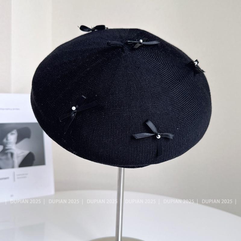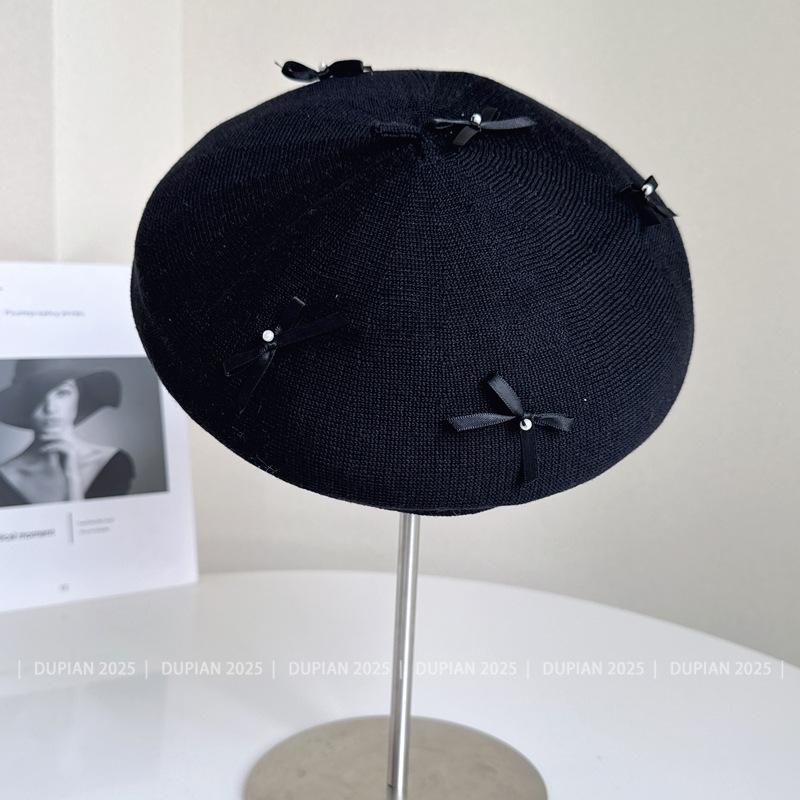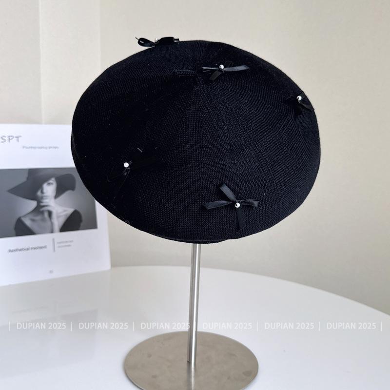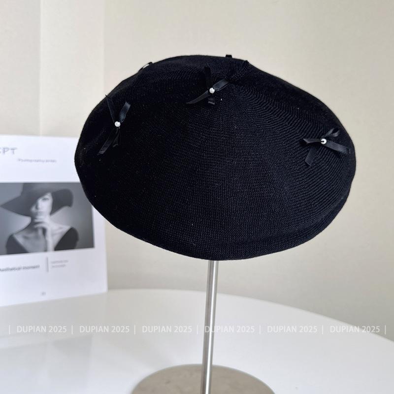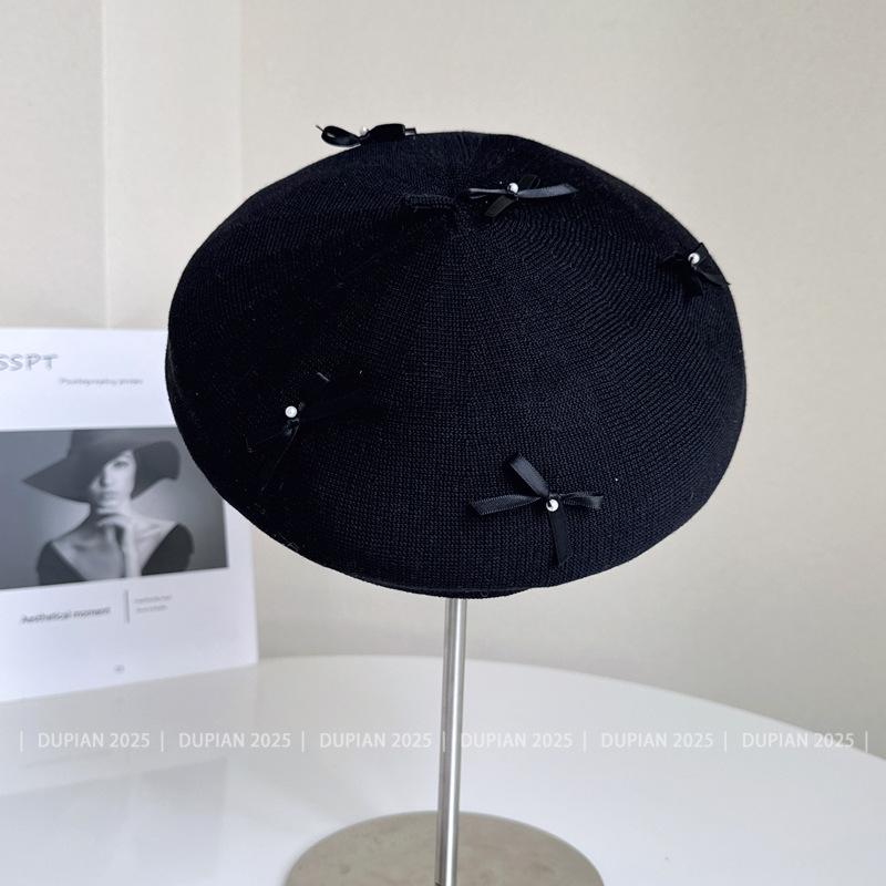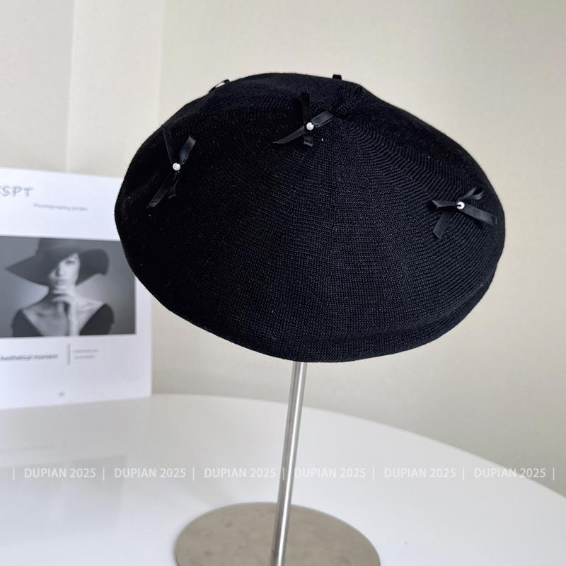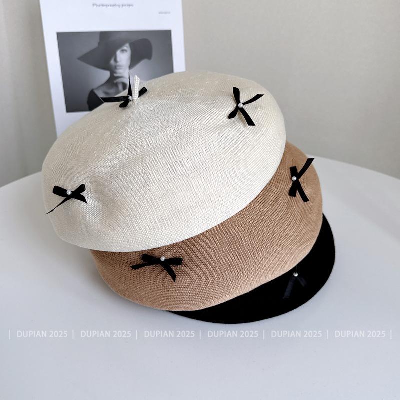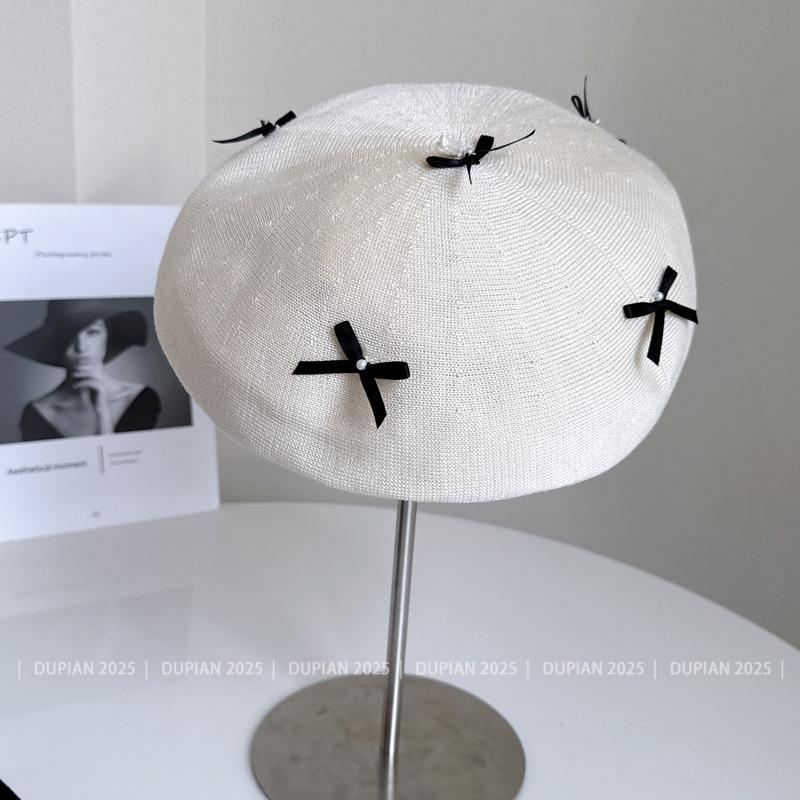 Elegante Boina de Moda con Lazo Hecho a Mano para Mujer, Sombrero de Pintor de Verano de Seda de Morera Tejido Transpirable, Boina de Moda
