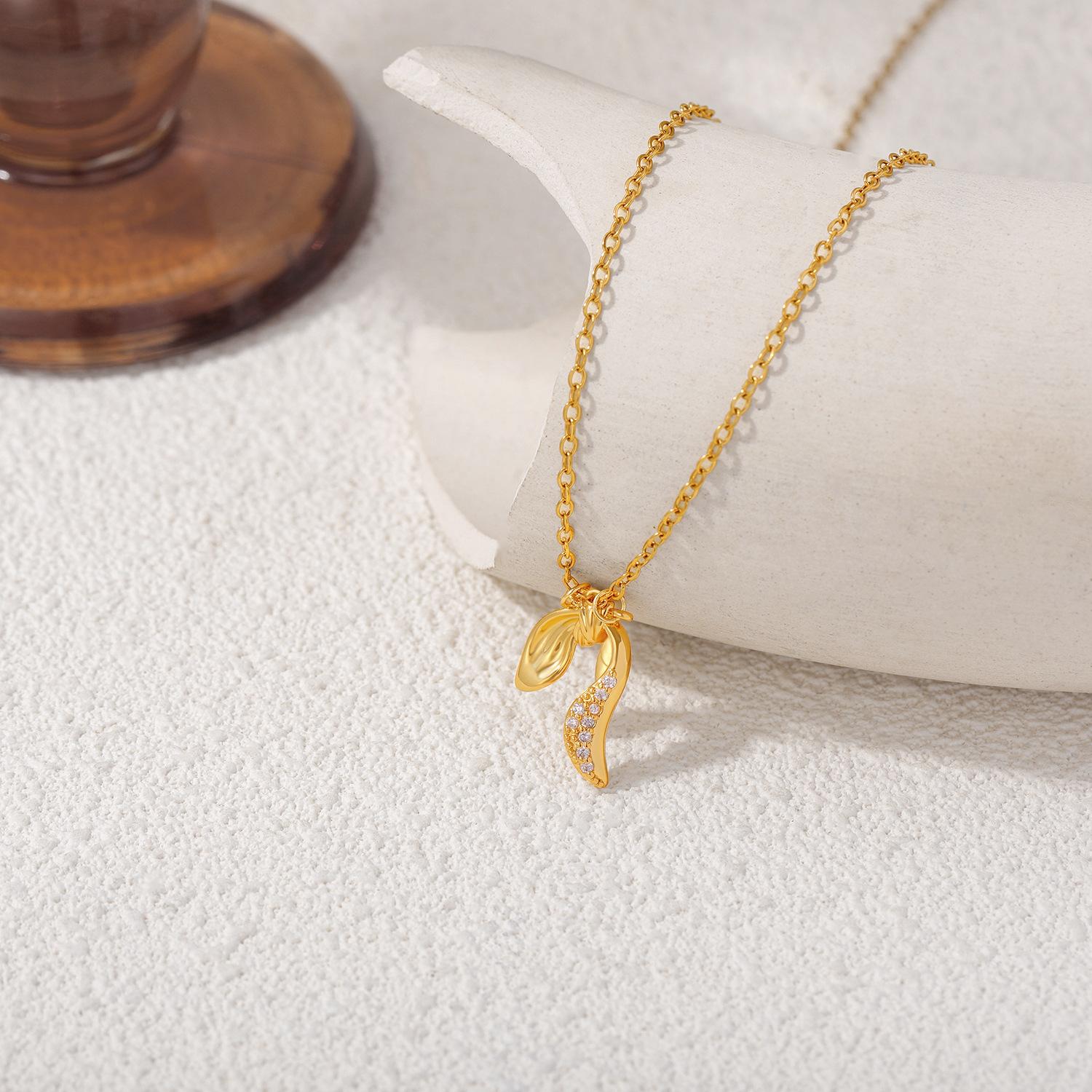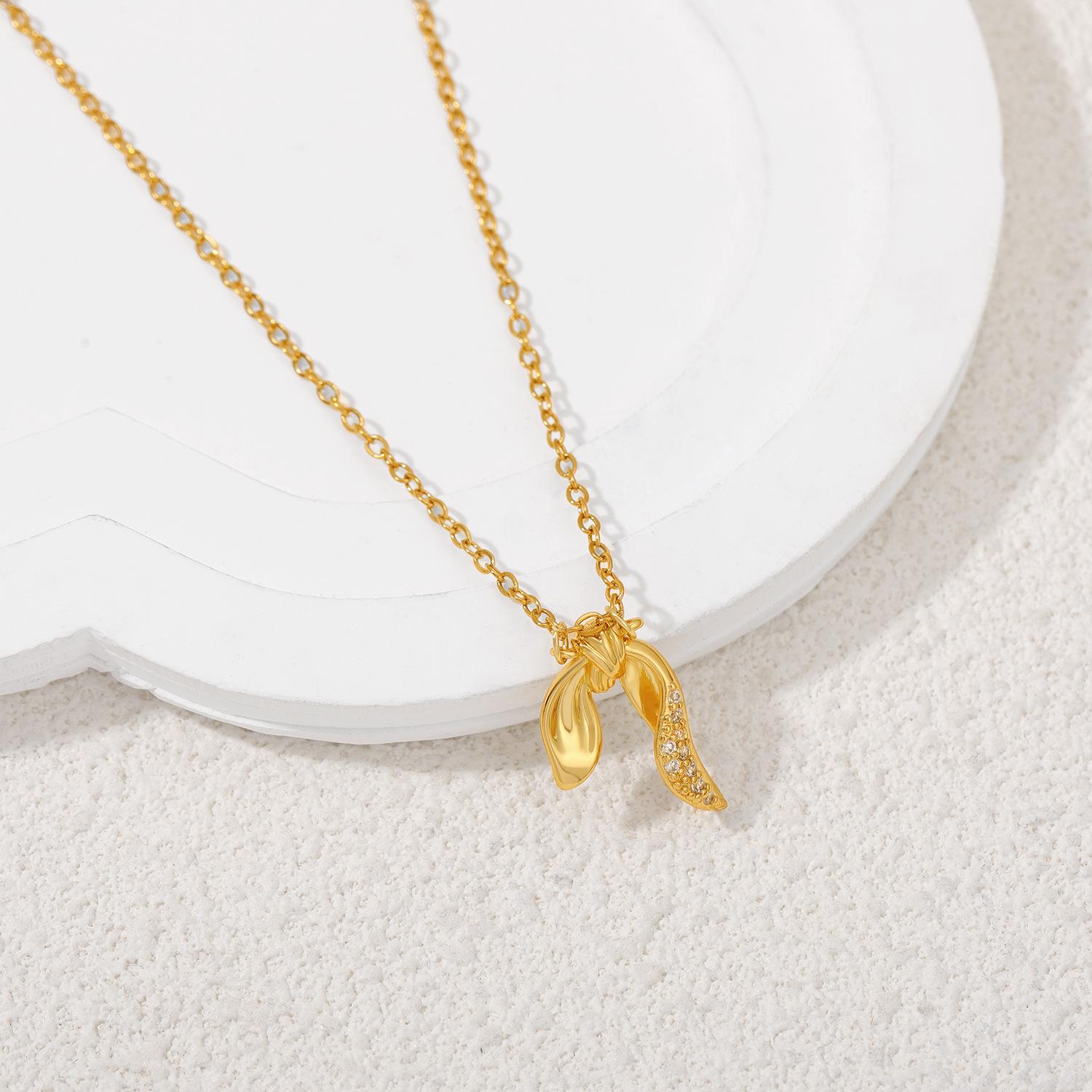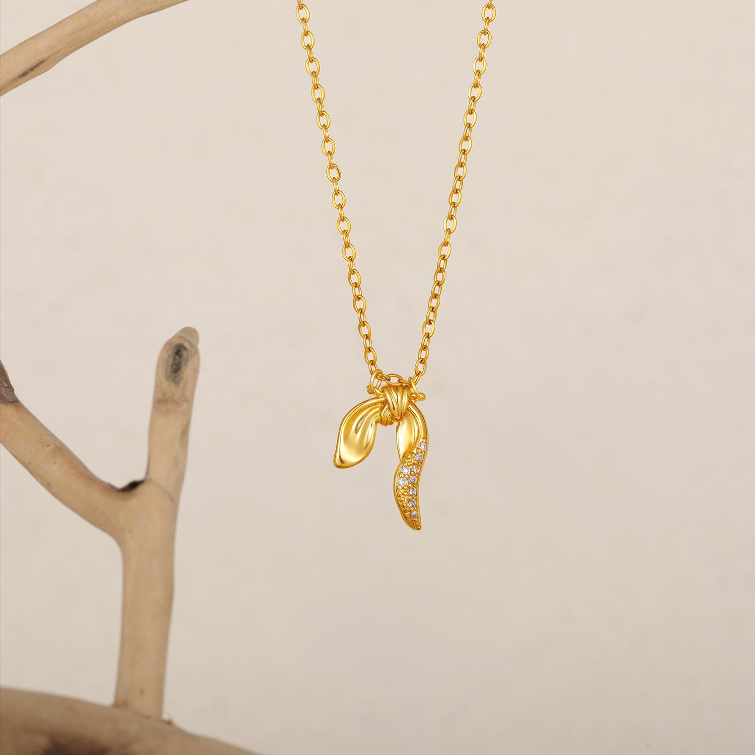 Collar de Lazo de Oro de 18K Transfronterizo Europeo y Americano Elegante Simple Cadena Clavicular Cadena de Acero Inoxidable Colgante de Zircón