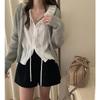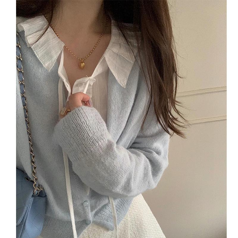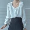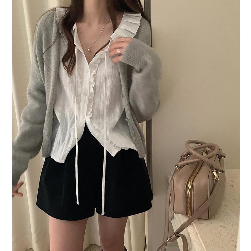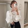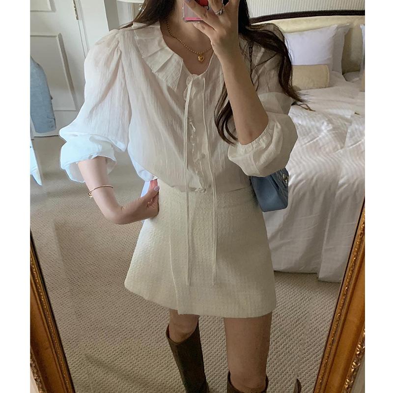 En stock temperamento chic coreano 2025 nuevo estilo principios de otoño camisa de diseño con volantes y lazo jacquard para mujer