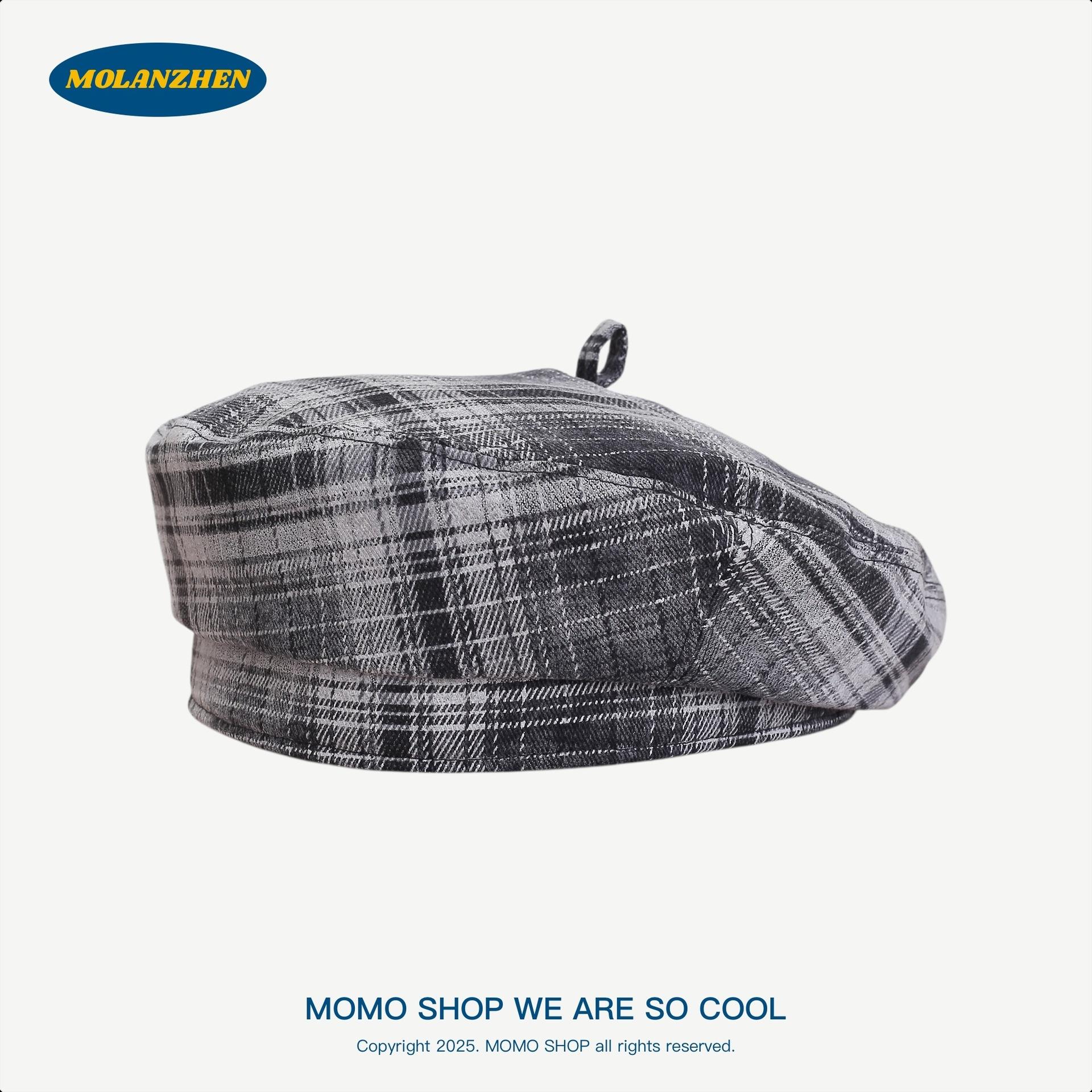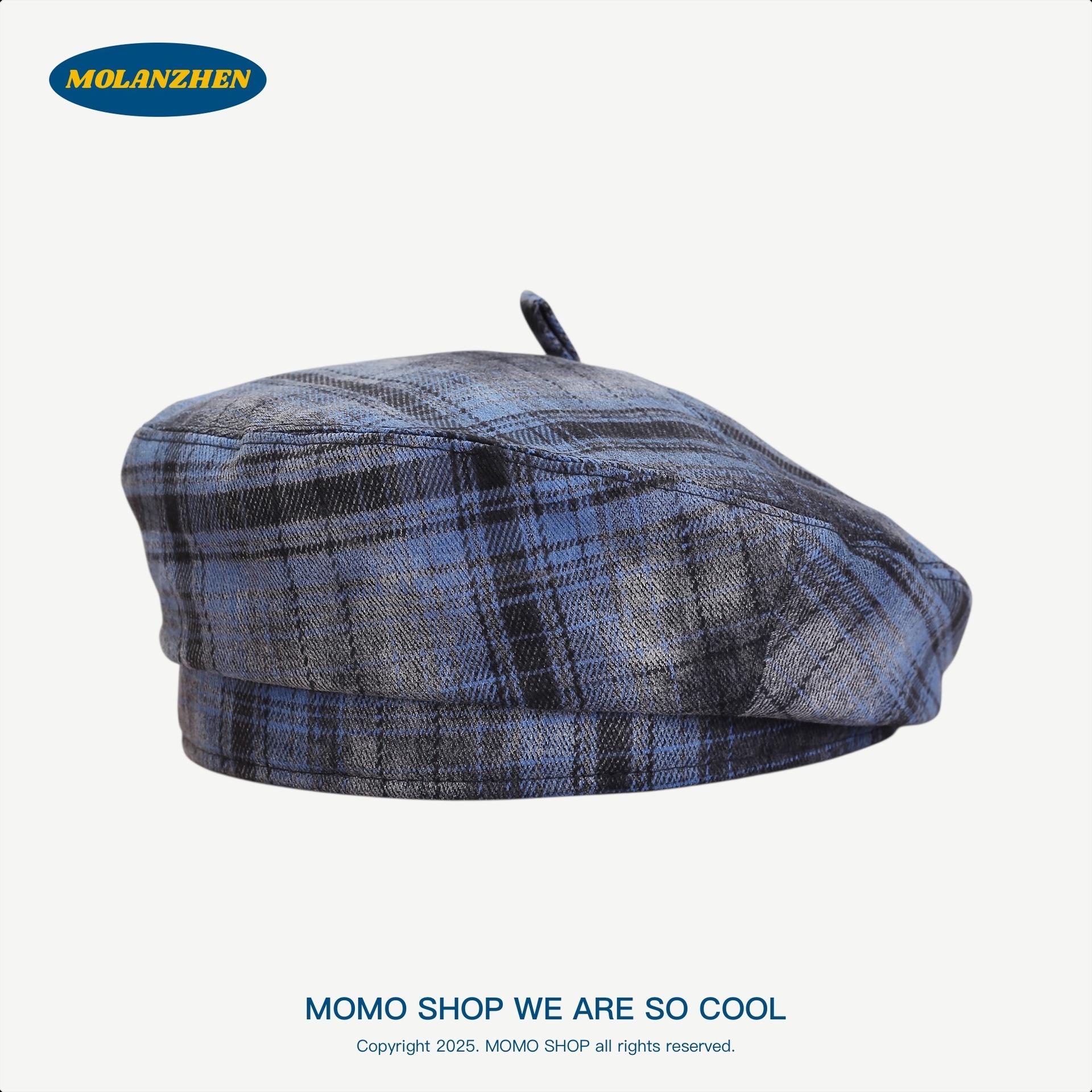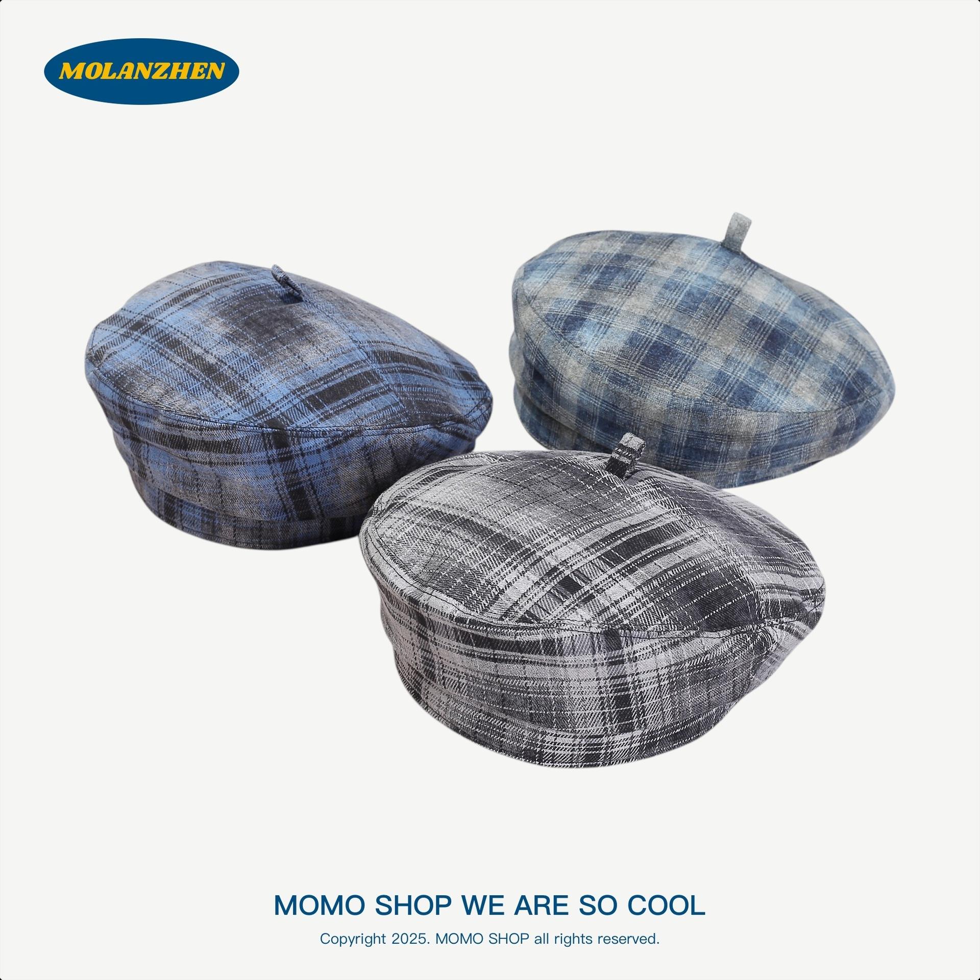 Boina Británica Retro de Cuadros para Mujer Sombrero de Repartidor Japonés Sombrero de Pintor Versátil a la Moda Temperamento Literario Sombrero Octogonal