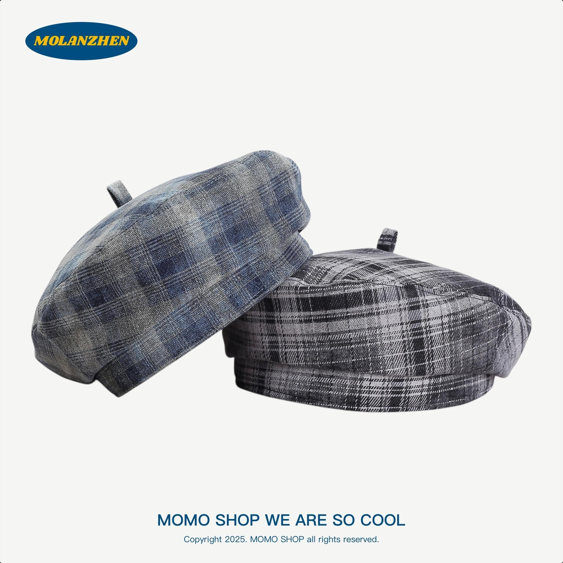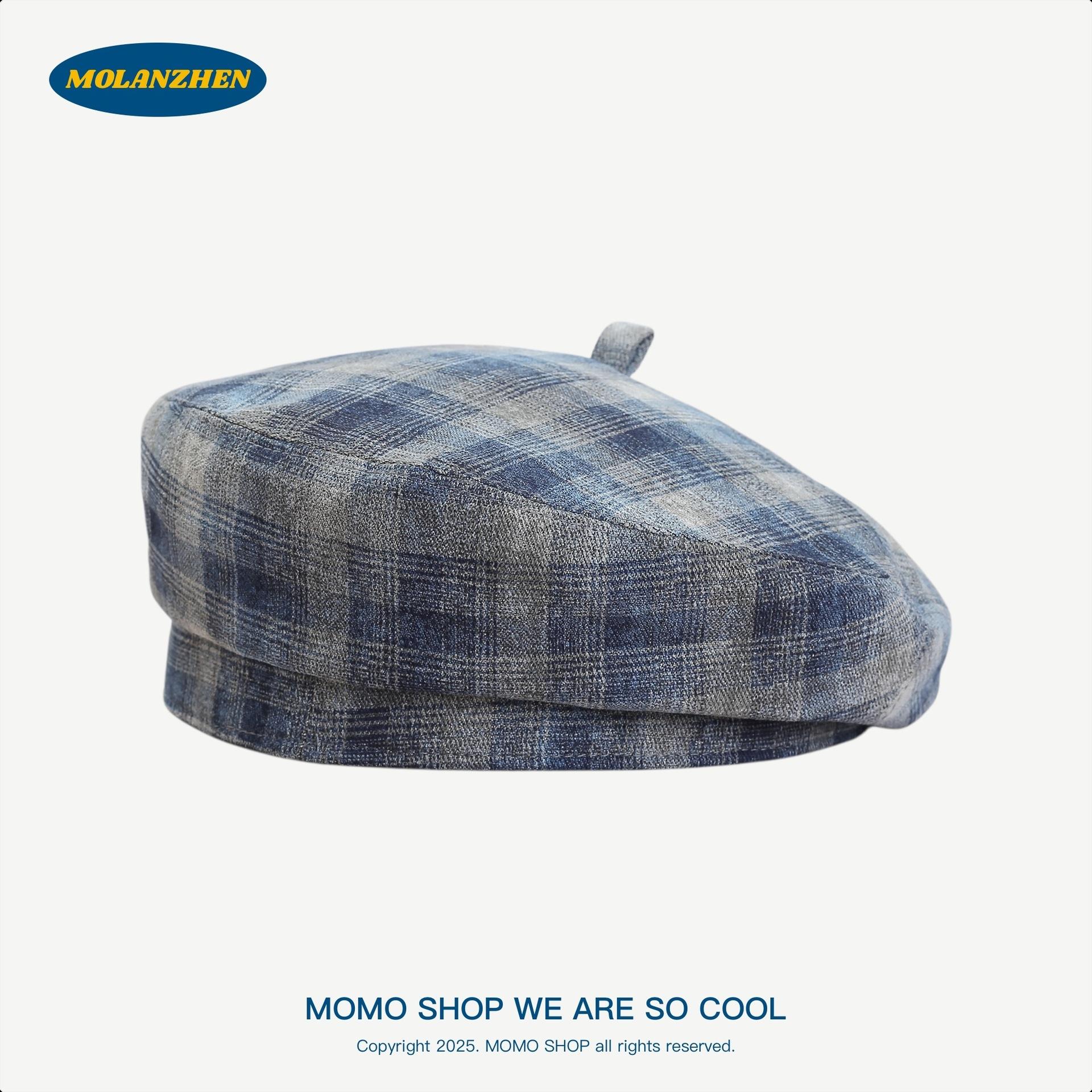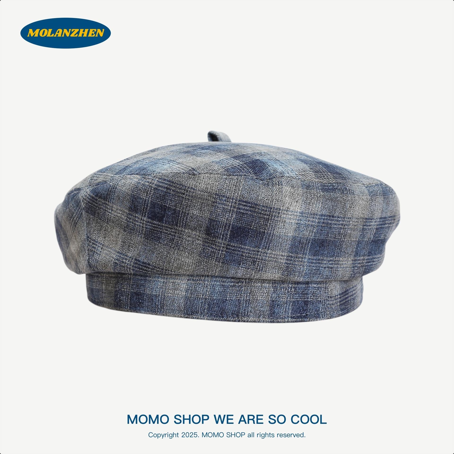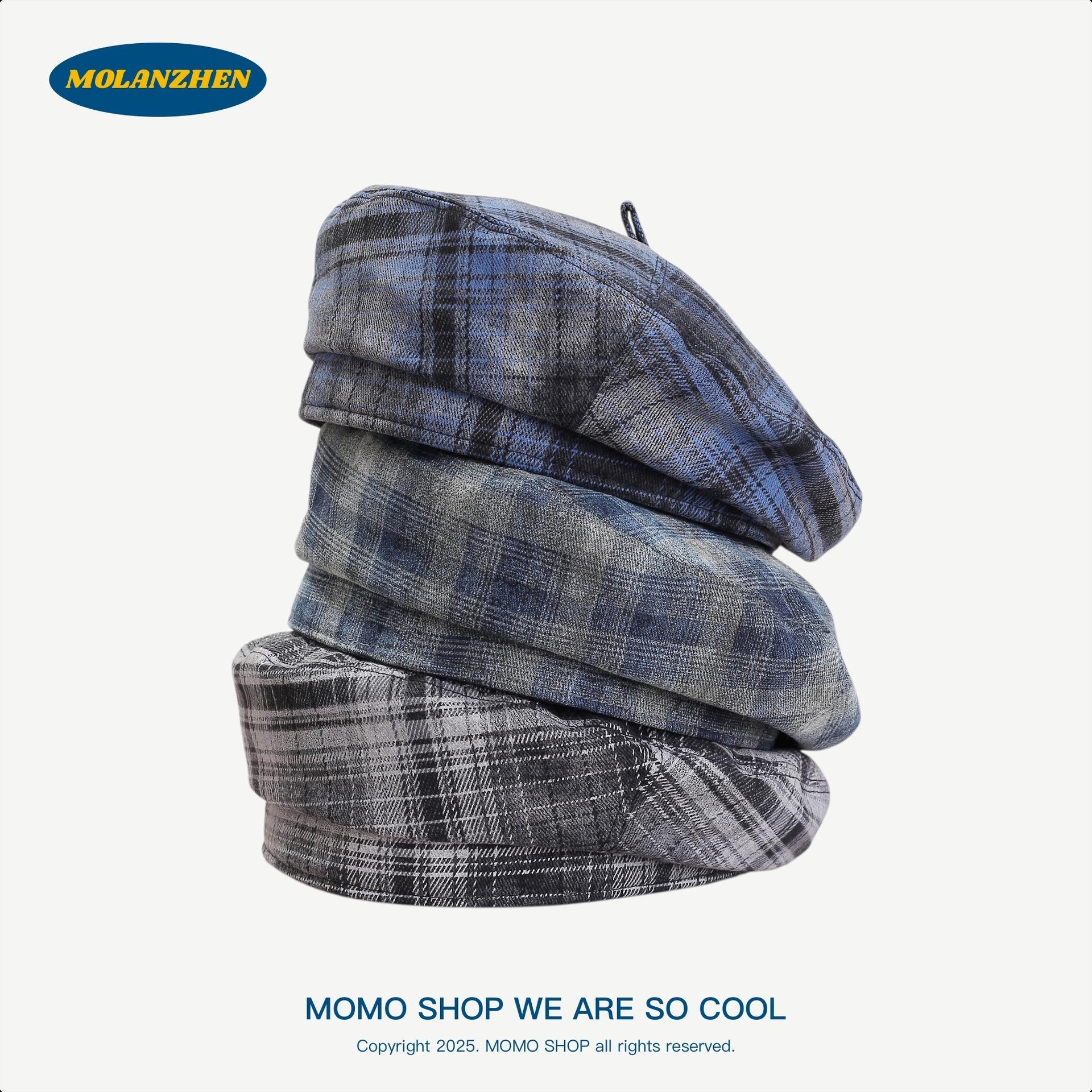Boina Británica Retro de Cuadros para Mujer Sombrero de Repartidor Japonés Sombrero de Pintor Versátil a la Moda Temperamento Literario Sombrero Octogonal