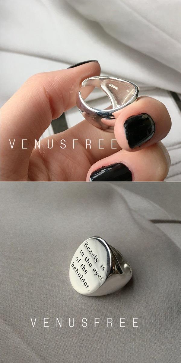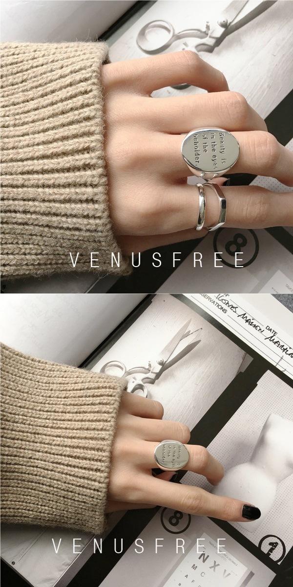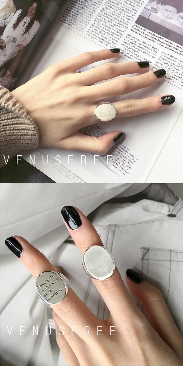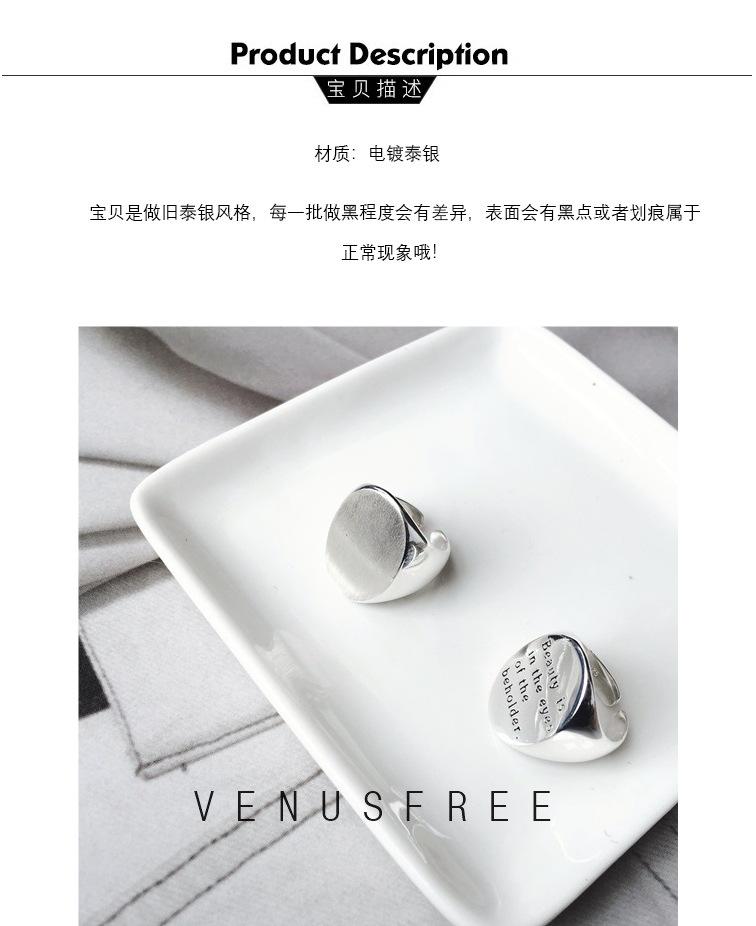 Anillo de Banda Ancha de Moda Retro Chapado en Plata S925 de Corea para Mujer, Simple Redondo con Letras, Personalidad Pulida, Abierto para el Dedo Índice