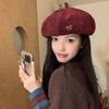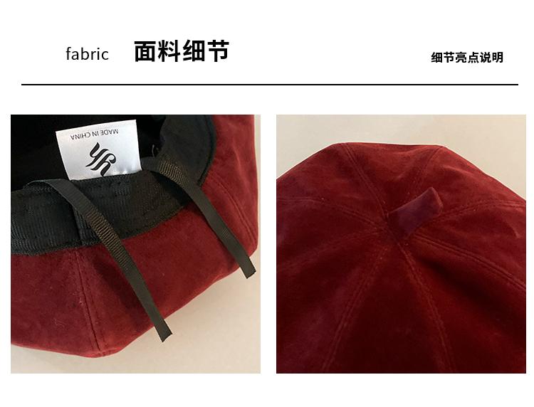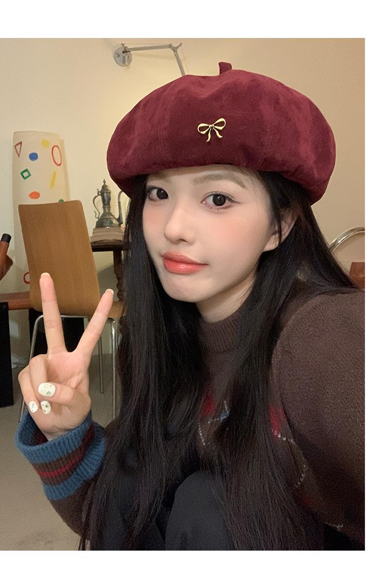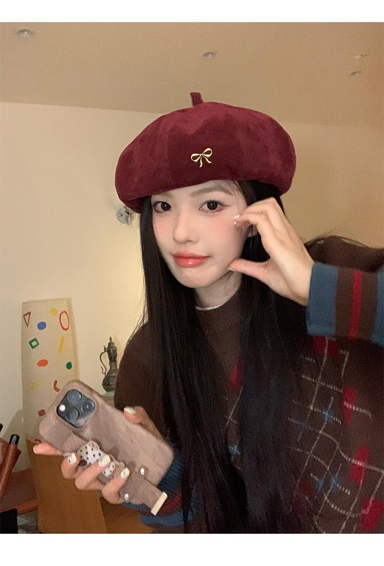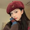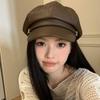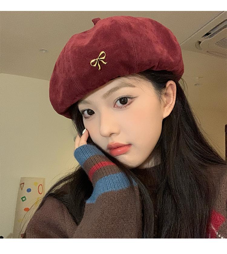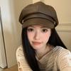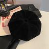 Boina Roja Vintage con Lazo para Mujer 2024 Otoño e Invierno Sombrero Cabeza Grande Cara Pequeña Combinable Gorra Octogonal de Moda