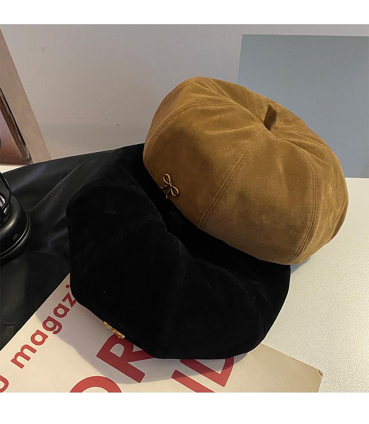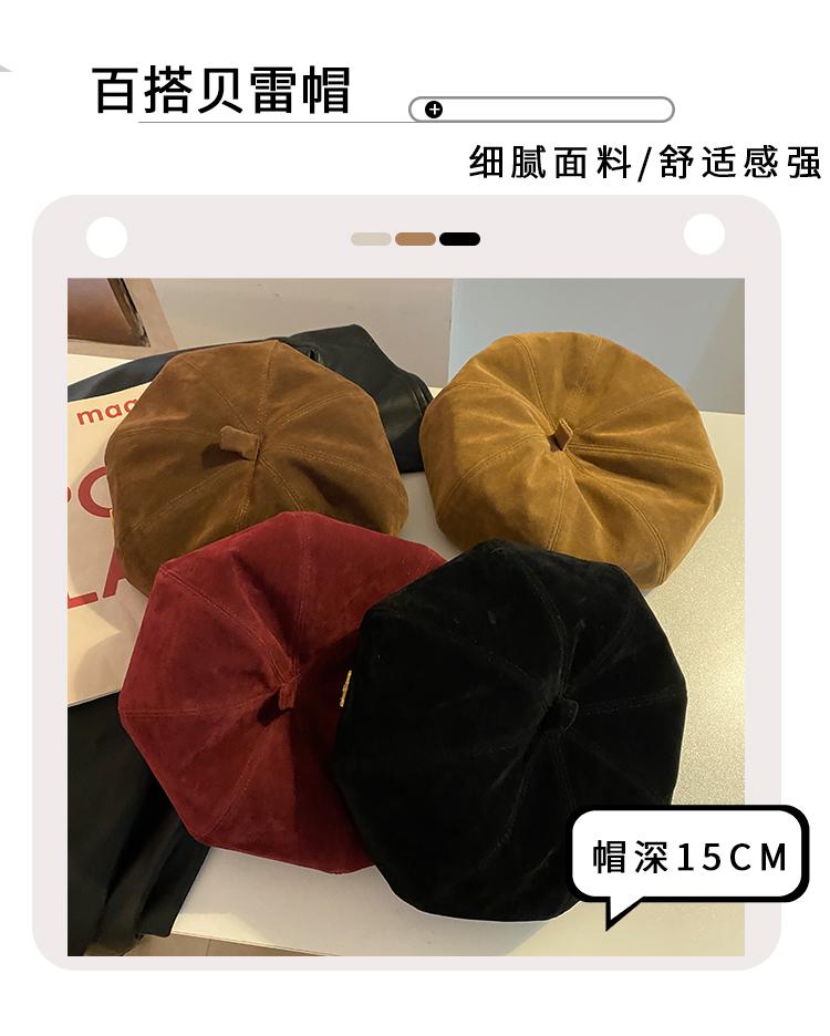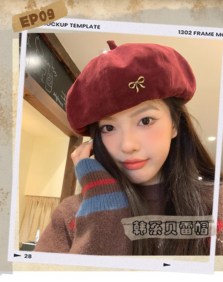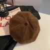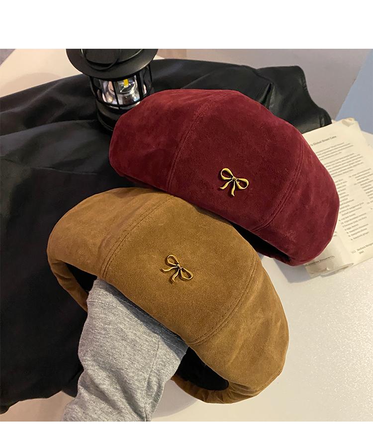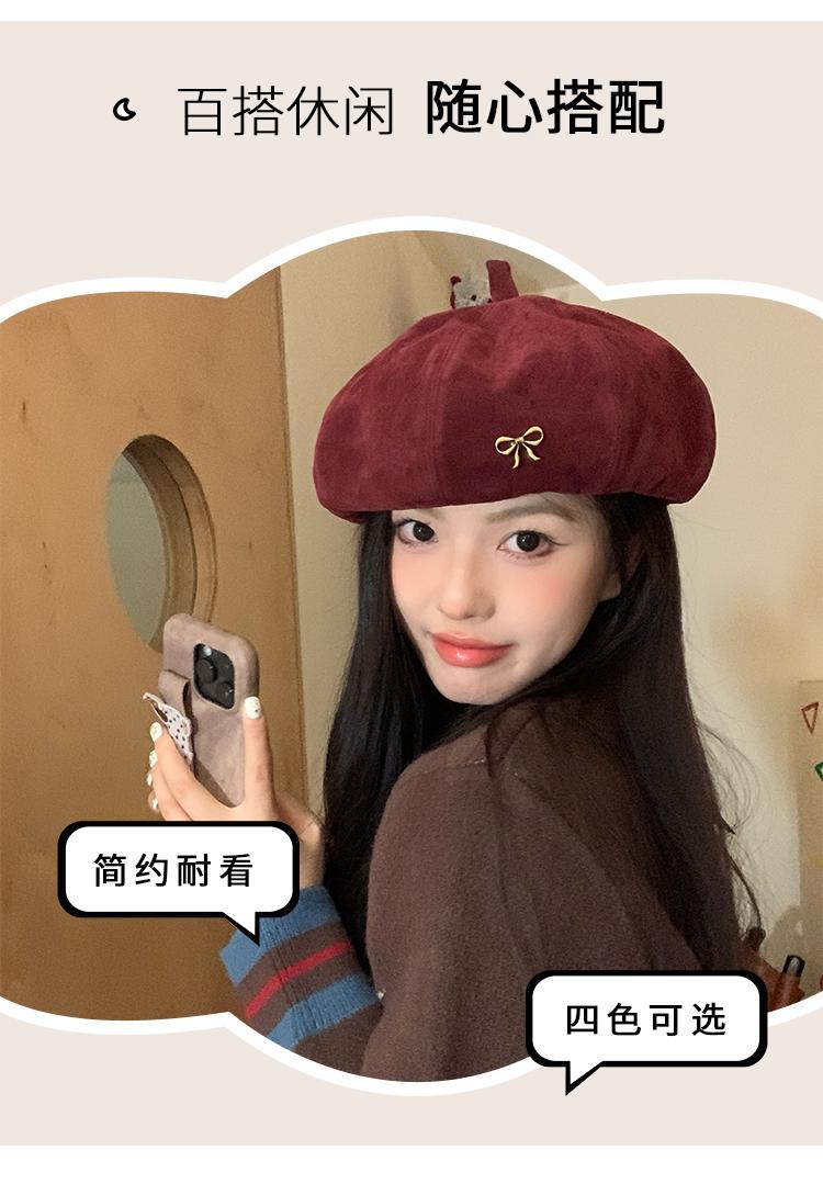 Boina Roja Vintage con Lazo para Mujer 2024 Otoño e Invierno Sombrero Cabeza Grande Cara Pequeña Combinable Gorra Octogonal de Moda