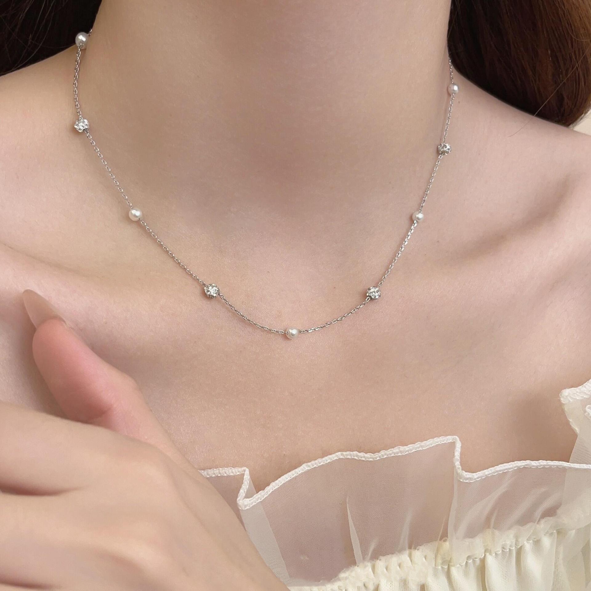 Collar de Estrella GYMPI para Mujer Espaciador Perla Diamante Flash Elegante Nicho Nivel Alto Cadena Clavícula Cadena en Y Collar Celebridad de Internet